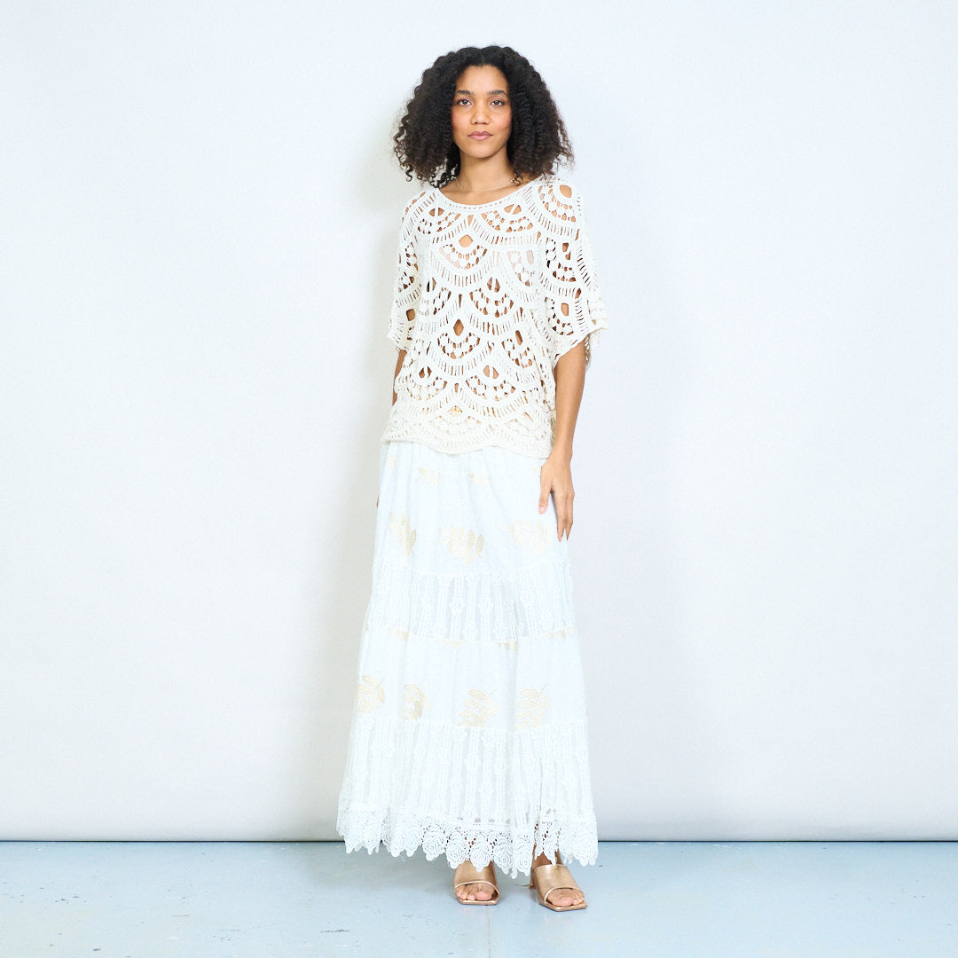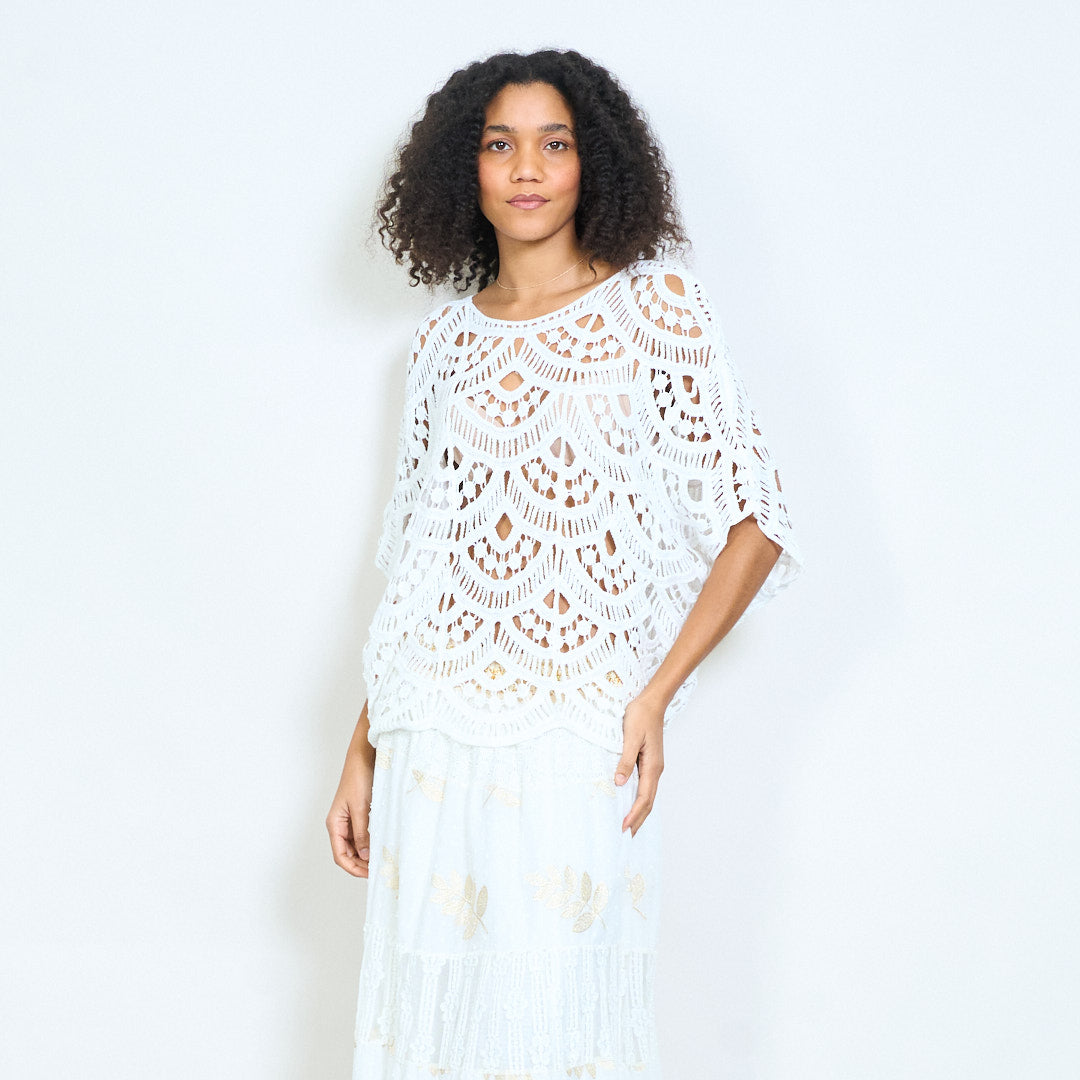 Openwork cróise scalloped oversized mórdhíola barr cniotáilte