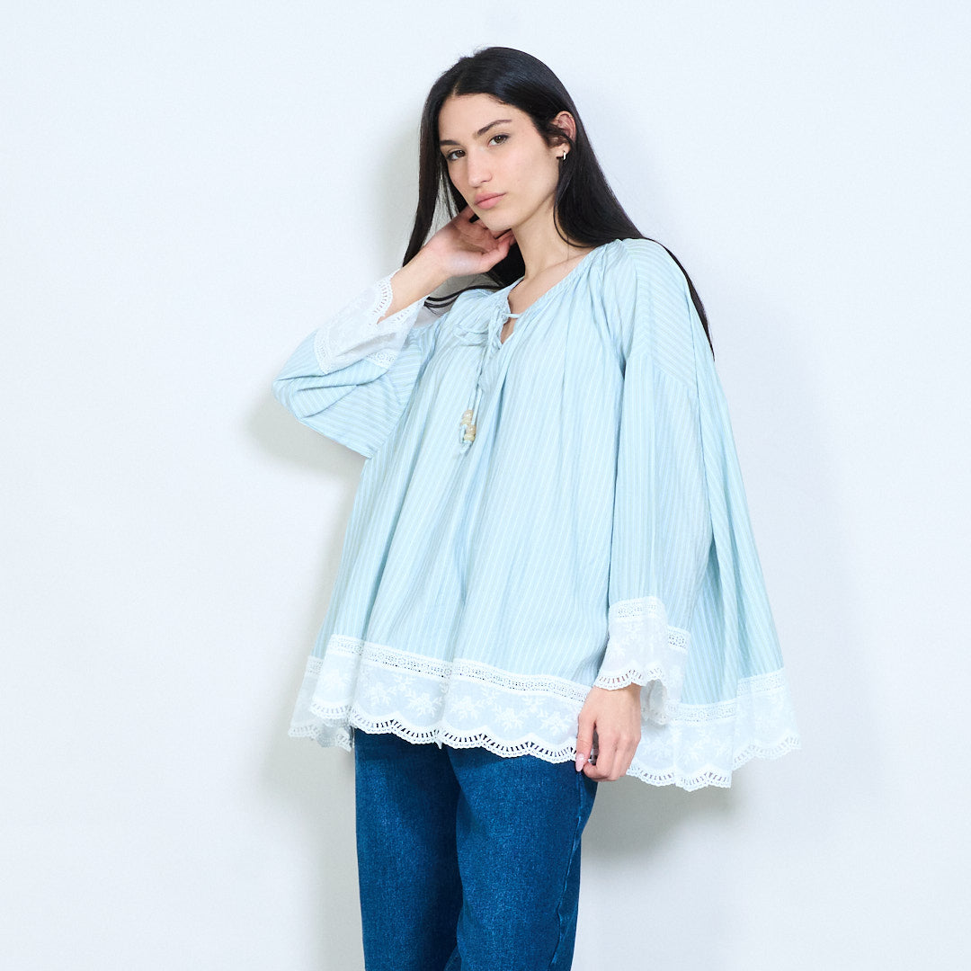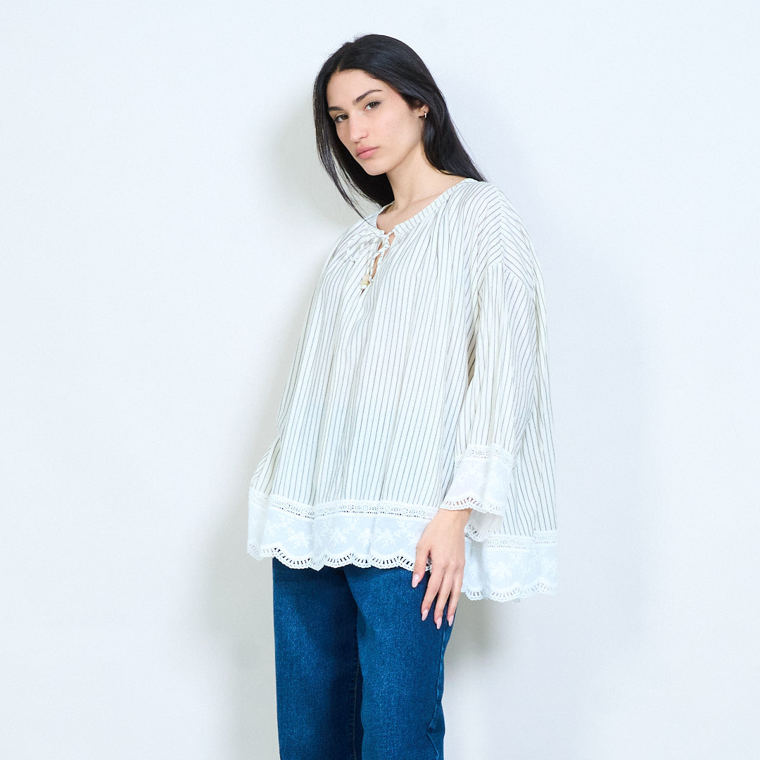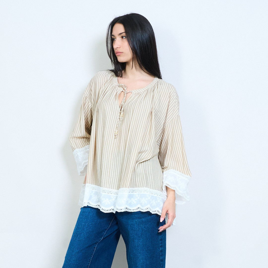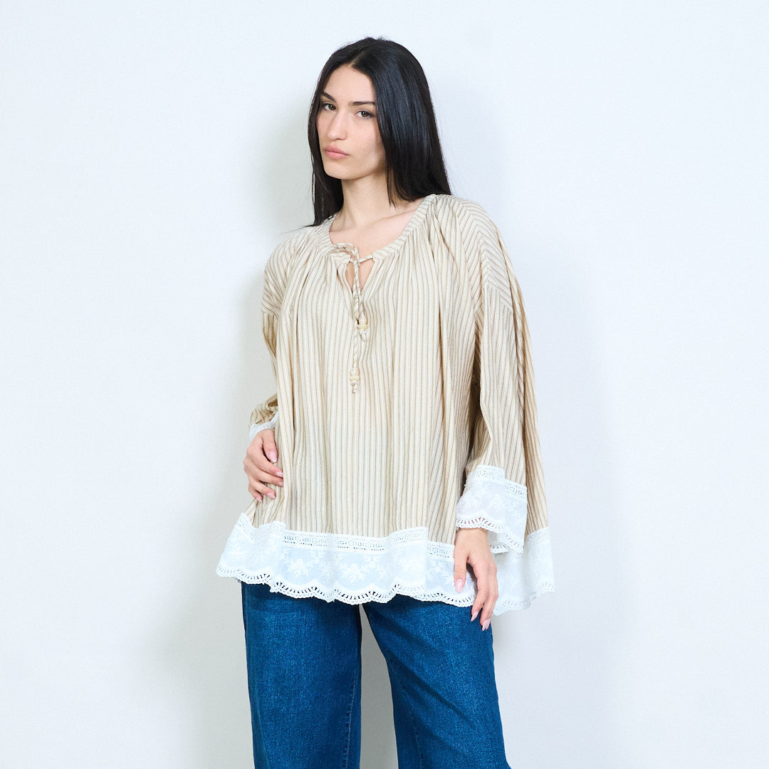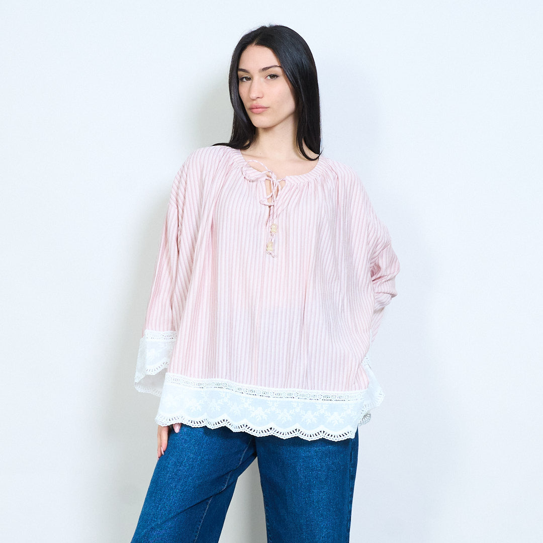 Pinstripe lása Baile Átha Troim comhionannas vótaí muineál blús oiriúnach scaoilte mórdhíola