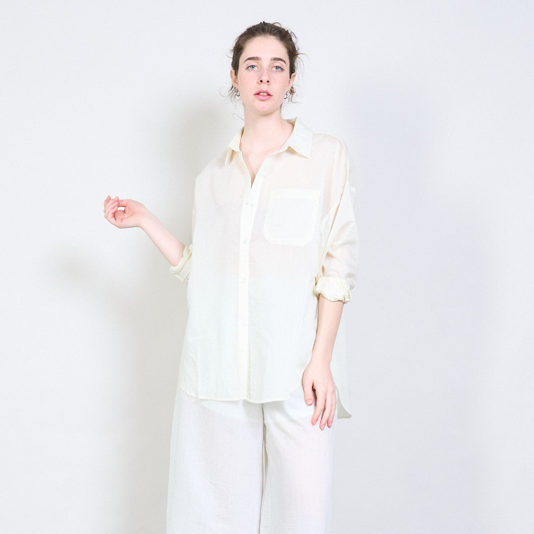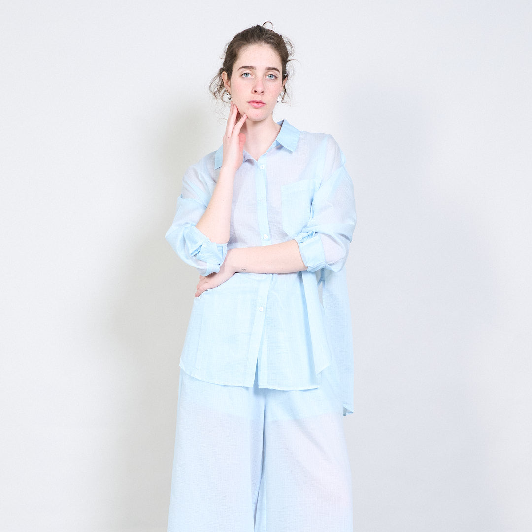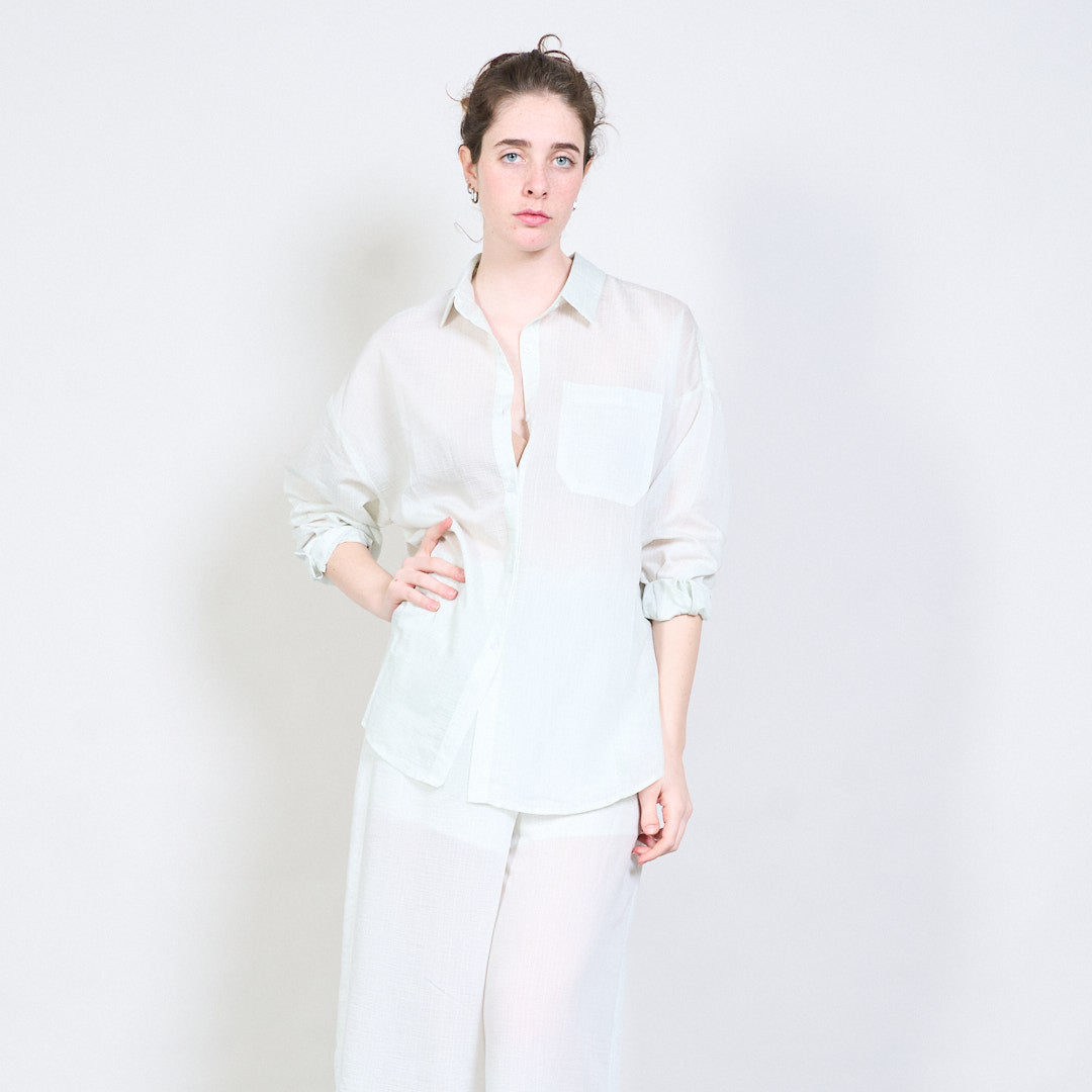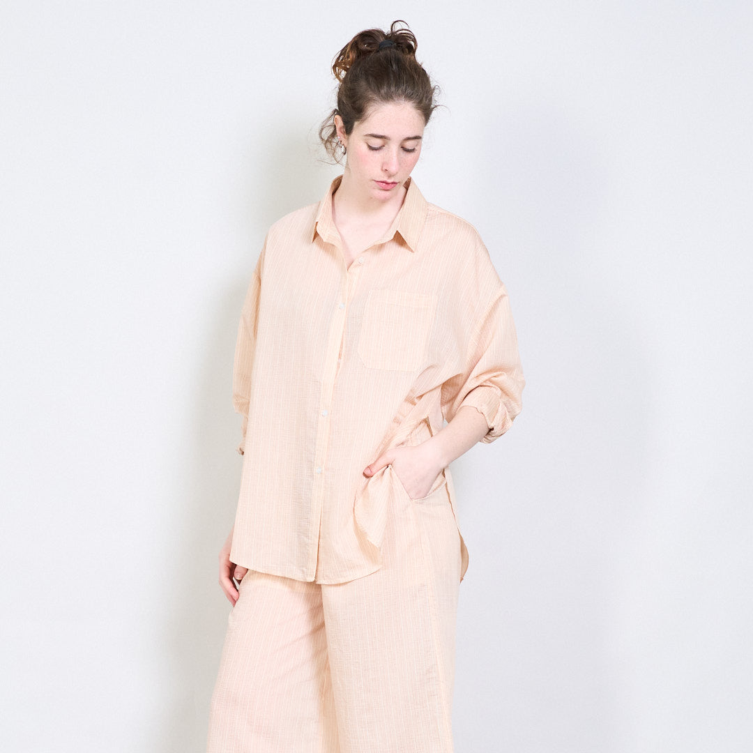 Léine cnaipe-suas stríocach éadrom mórdhíola