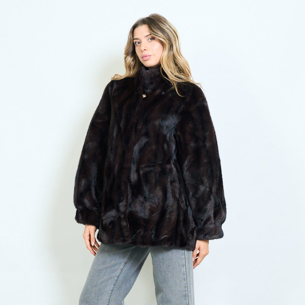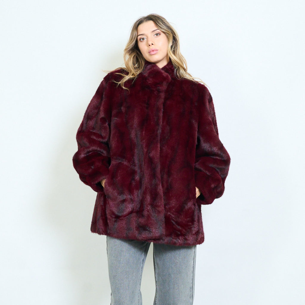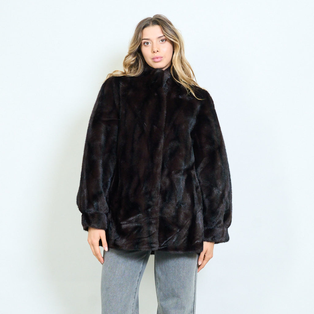 Cóta fionnaidh faux plush le bailchríoch saibhir uigeach mórdhíola