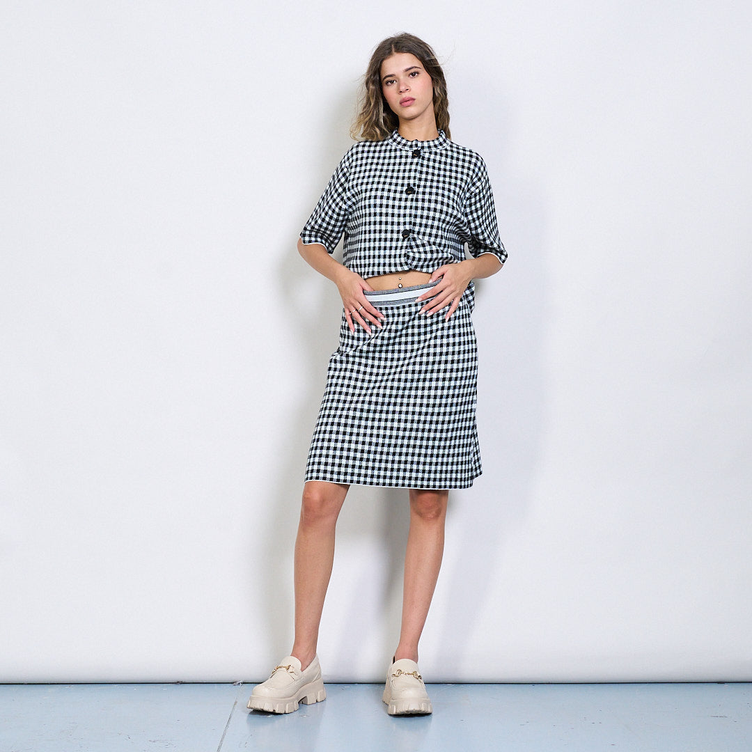 Sciorta Mini Gingham Cniotáil le BAIST BAILTENT BAIST
