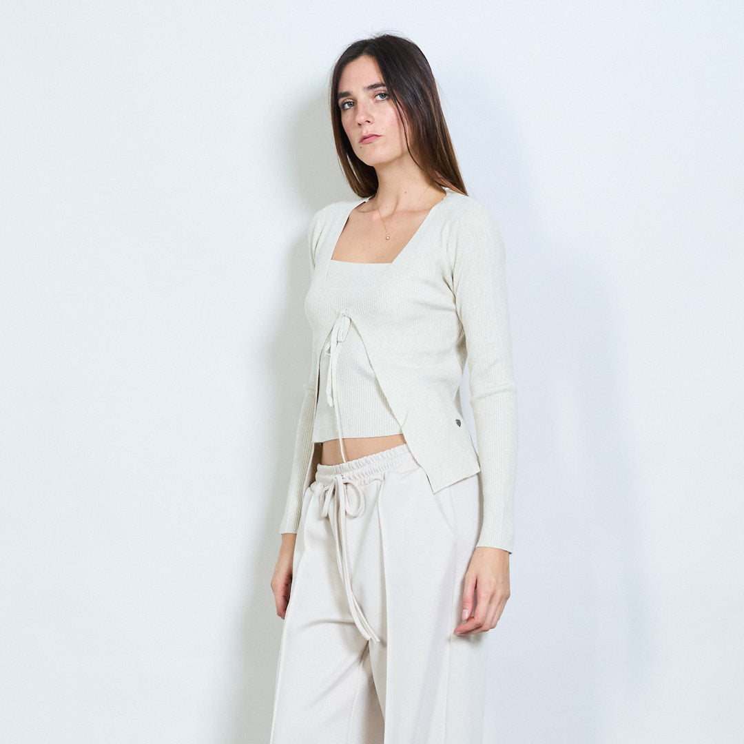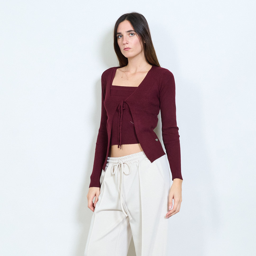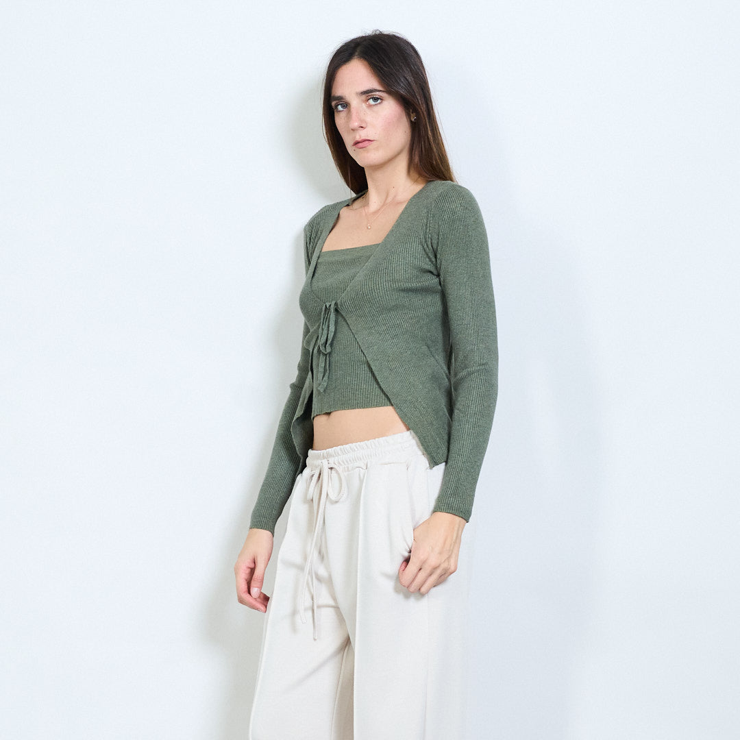 - Tacar dhá phíosa comhordaithe lena n-áirítear barr barr agus cardigan tosaigh comhionannas vótaí