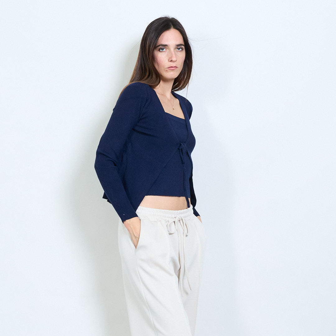Barr barr cniotáilte dhá phíosa ribín agus tacar cardigan comhionannas vótaí mórdhíola