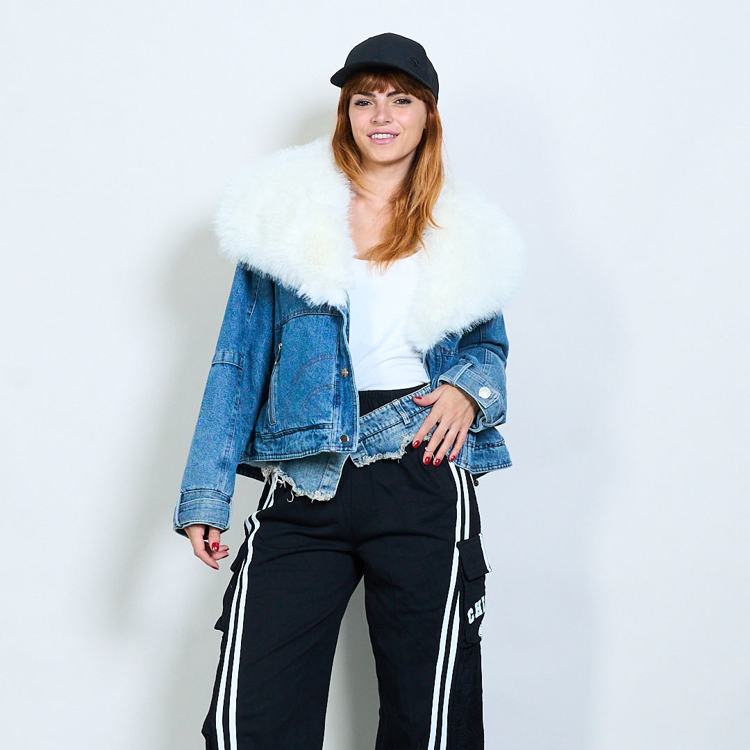 • Meaitseáil mionsonraí fionnaidh faux ag cufaí agus hem
