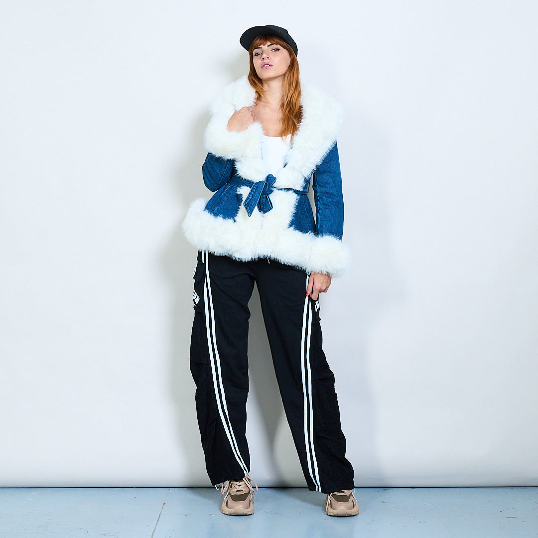 Fionnadh faux Baile Átha Troim Belted Denim Jacket Mórdhíola