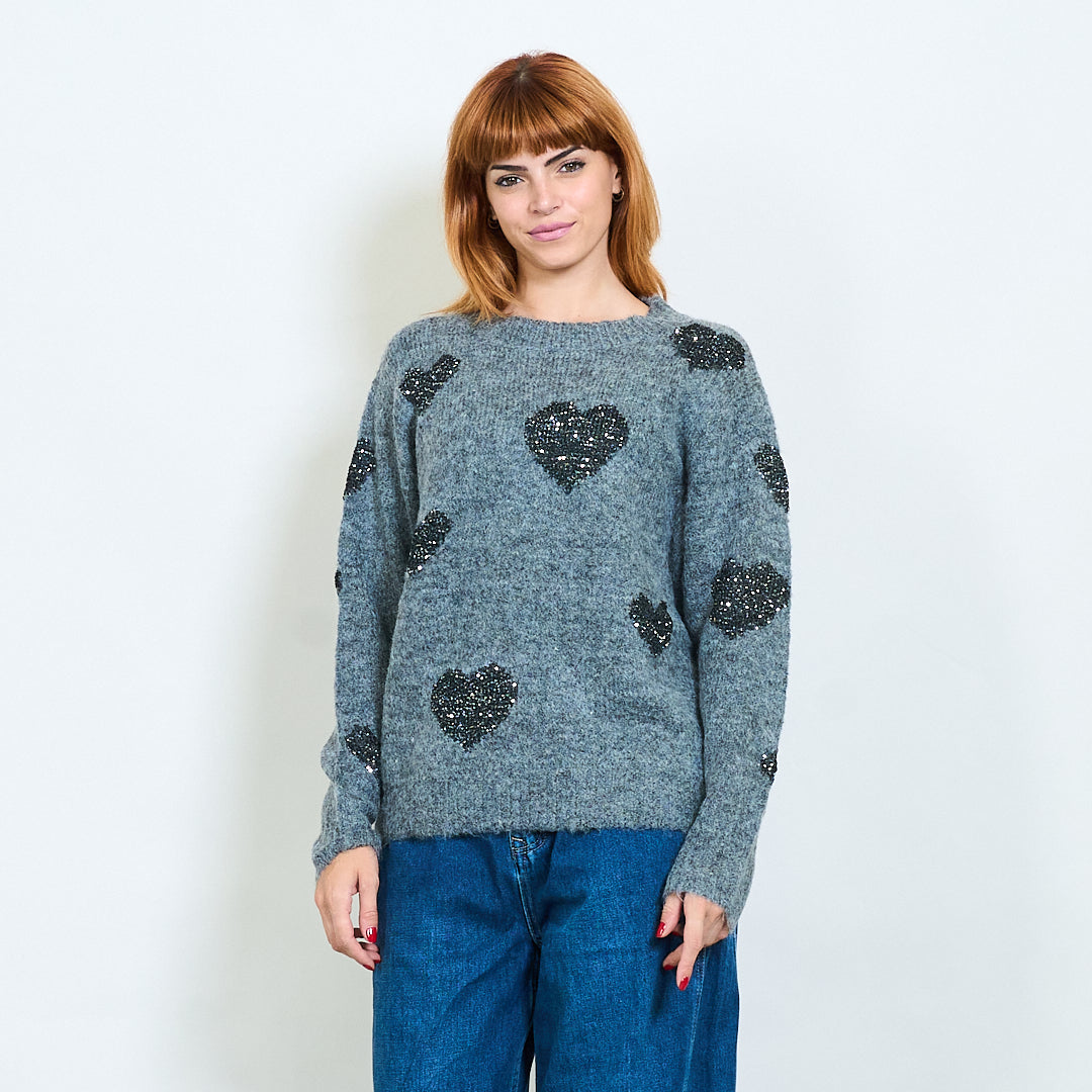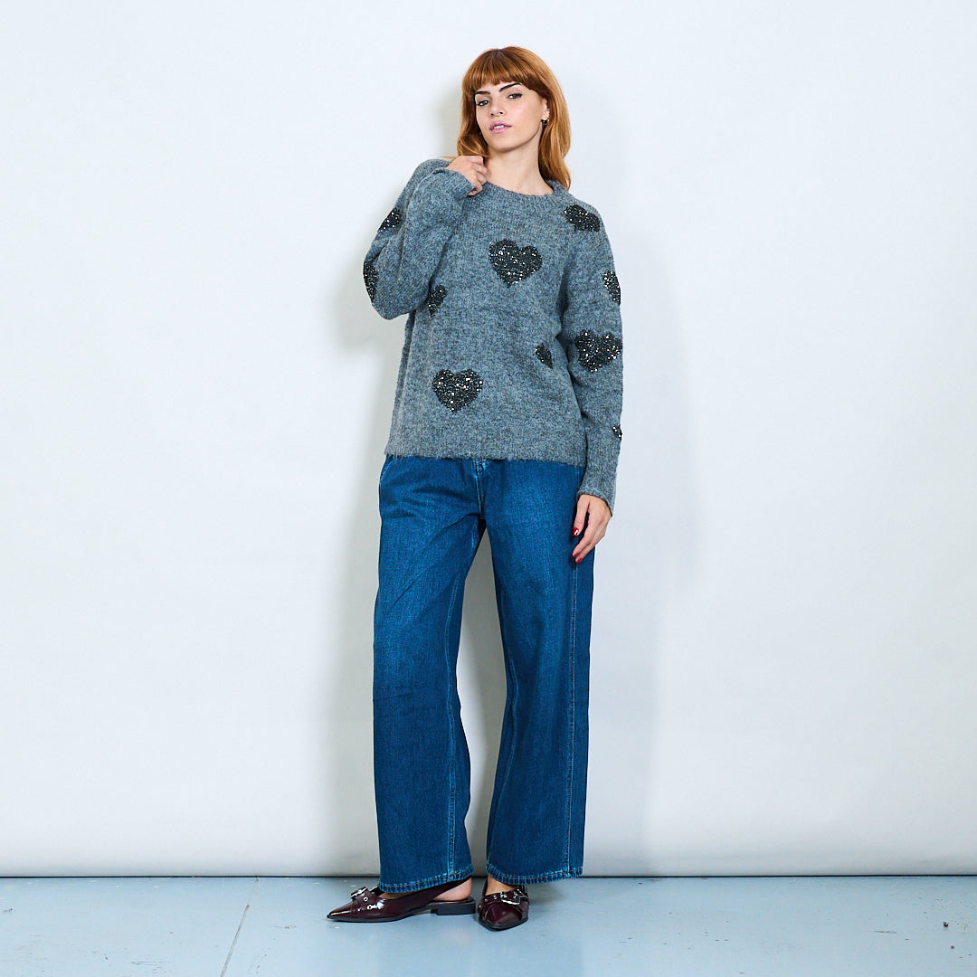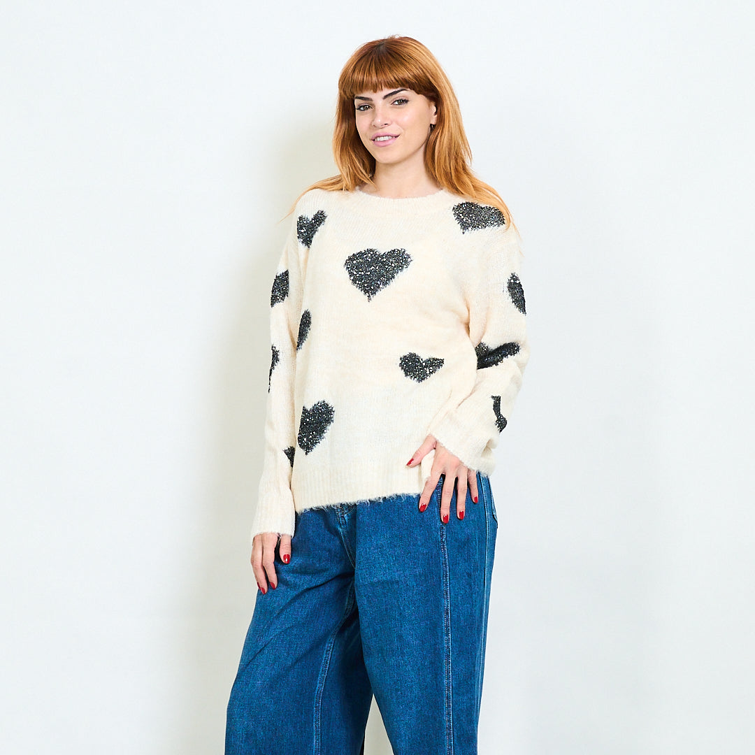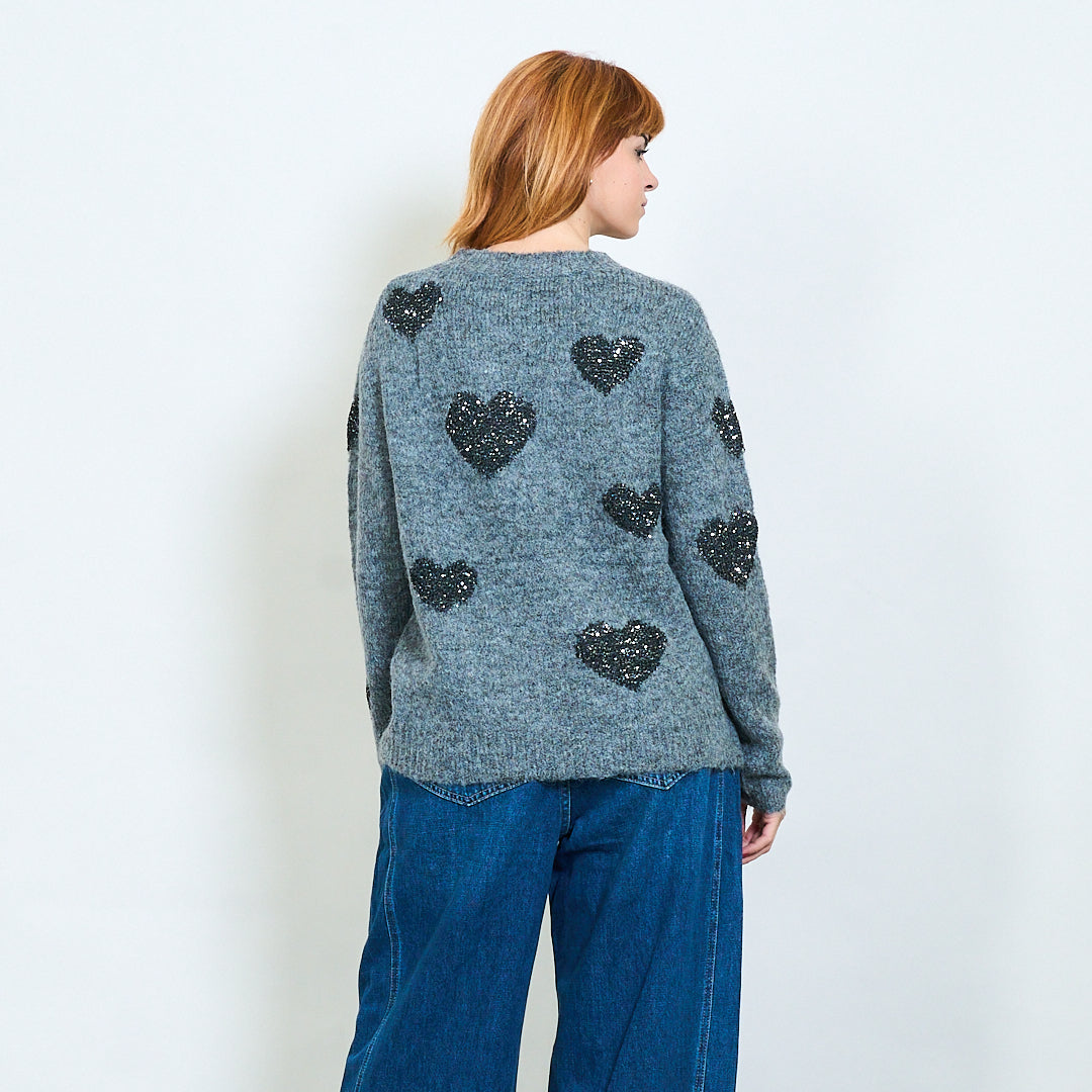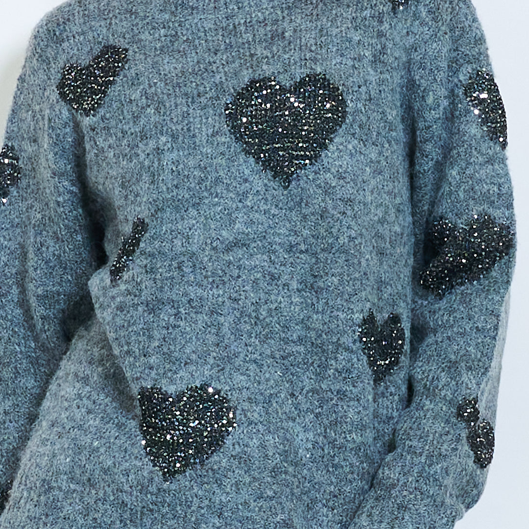 Patrún Sparkly Heart Geansaí Cniotáilte Cniotáilte