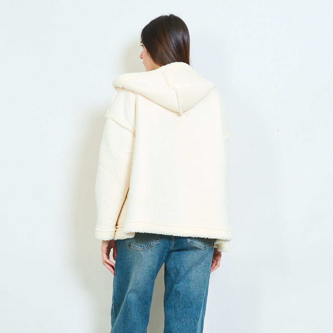 - Cochall cluthar líneáilte le lomadh faux le haghaidh teas agus stíl