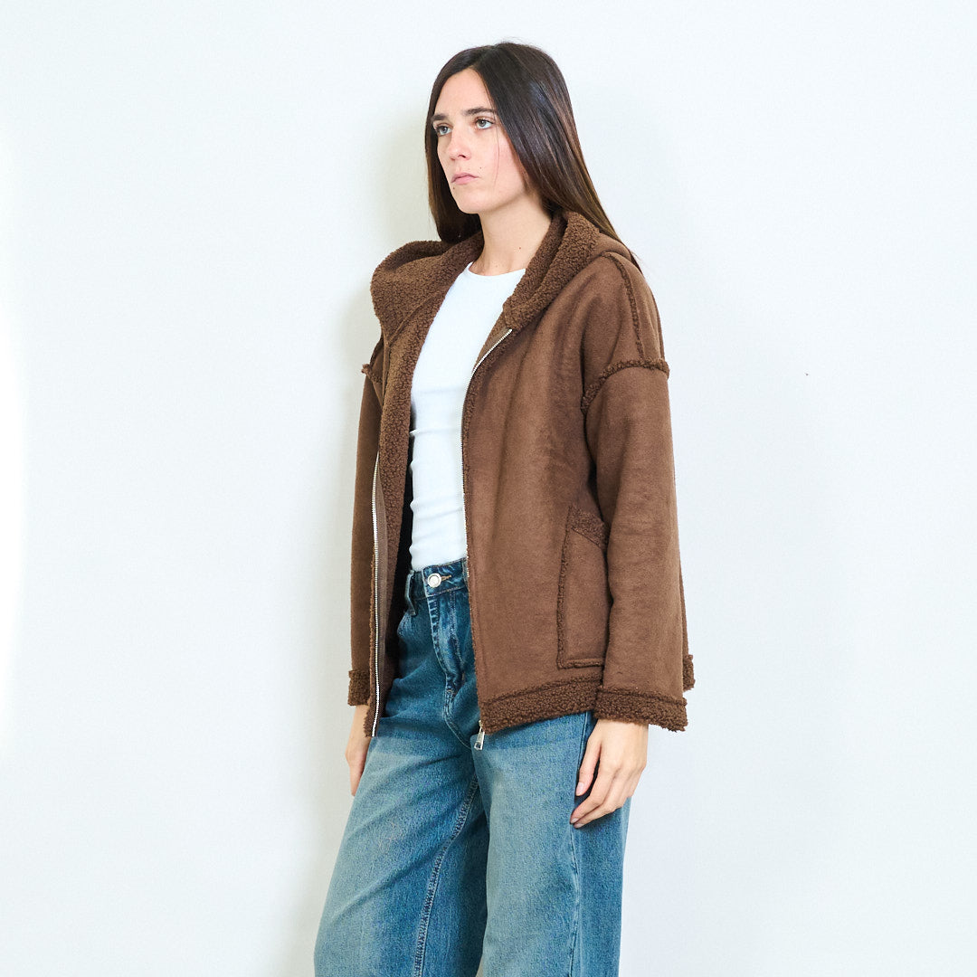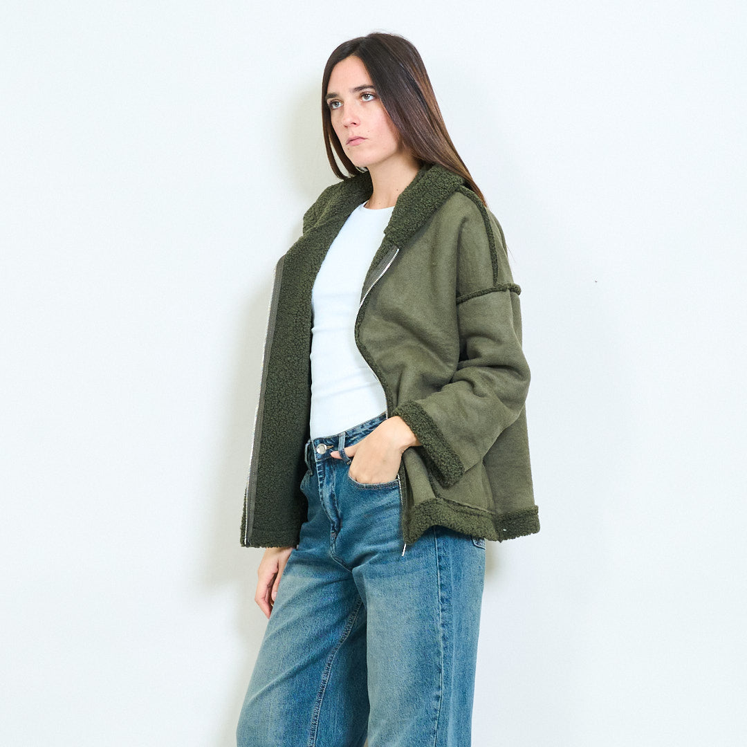 Seaicéad cochall zip tosaigh le faux lomling trim mórdhíola