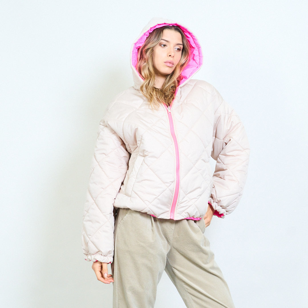 Seaicéad puffer cochaill cuilteáilte le líneáil codarsnachta mórdhíola