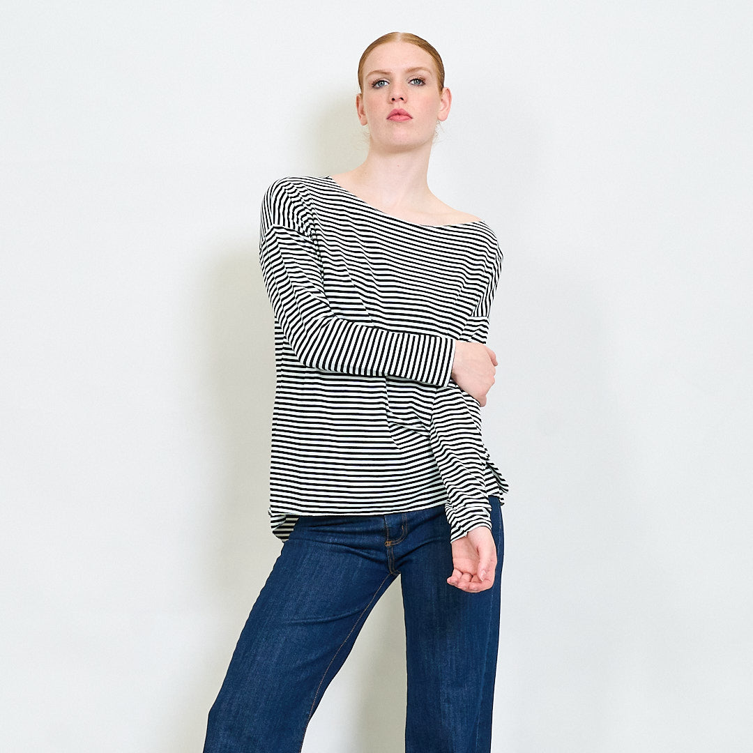 - Cuireann neckline bád scáthchruth galánta agus nua -aimseartha ar fáil
