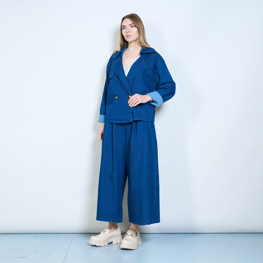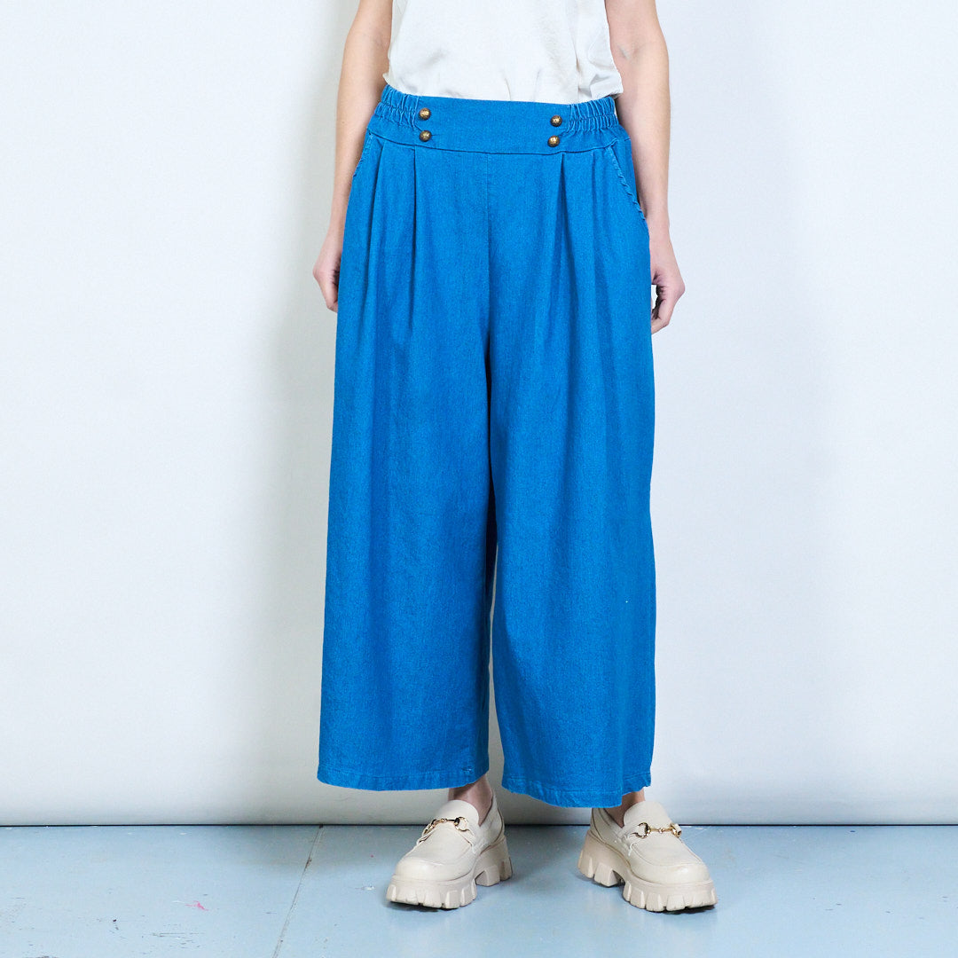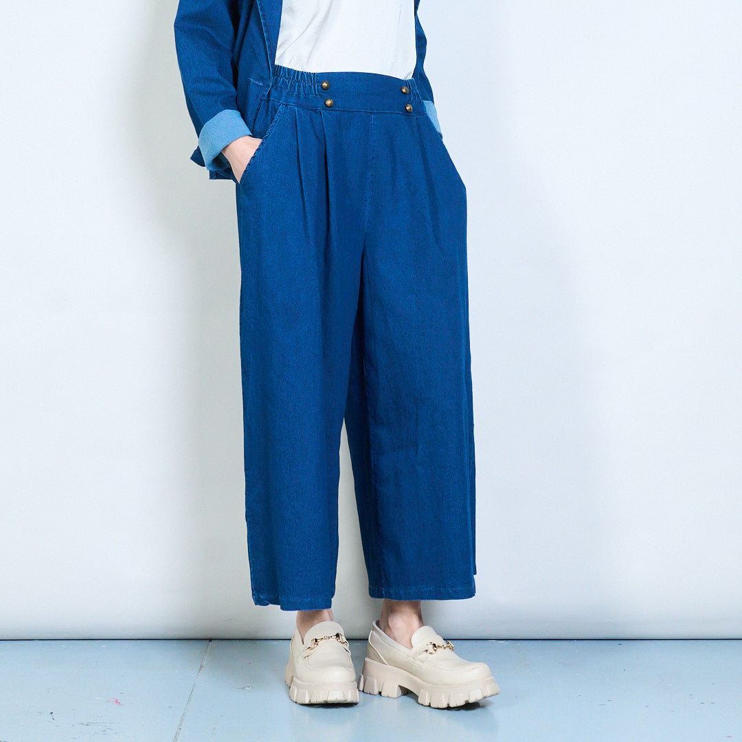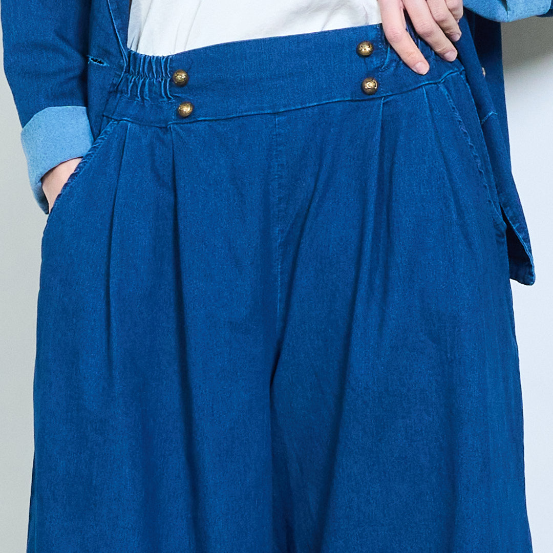 Bríste cathrach waist leaisteacha pleated-oiriúnach le mionsonraí cnaipe maisiúil mórdhíola