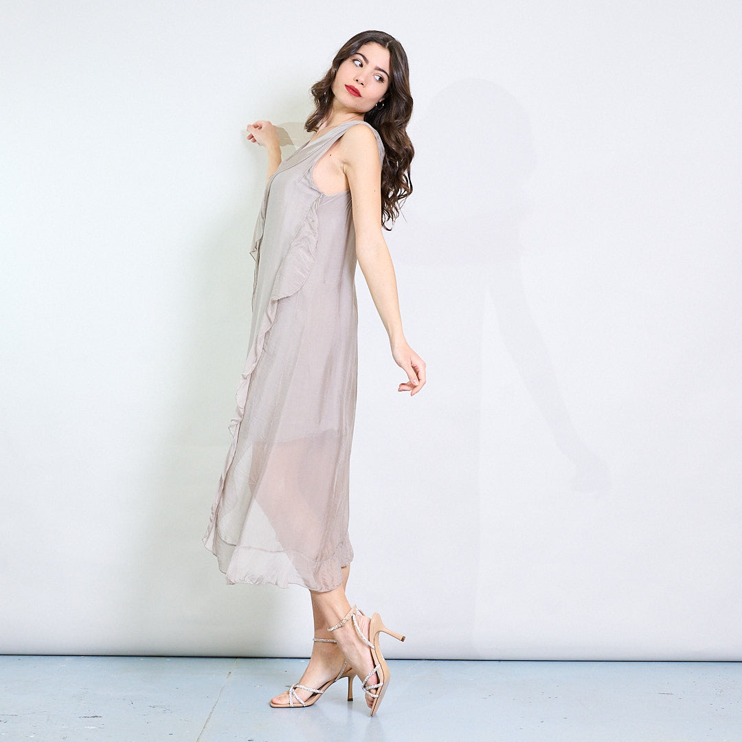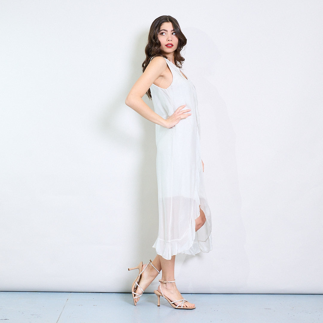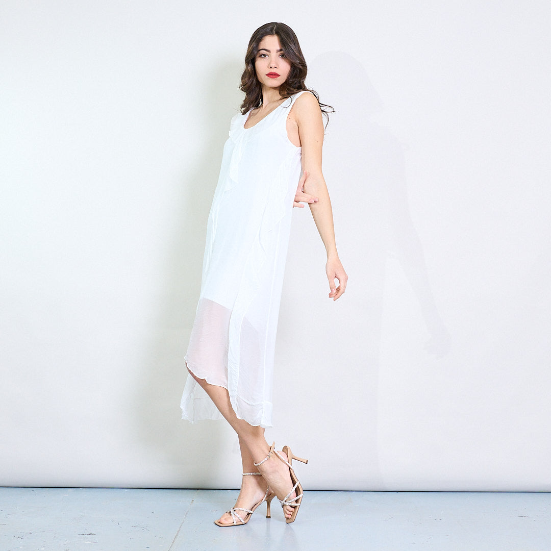 - Gúna flowy sleeveless le fabraic bog, sreabhach