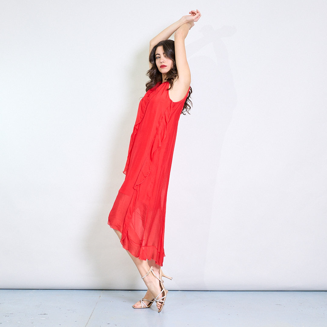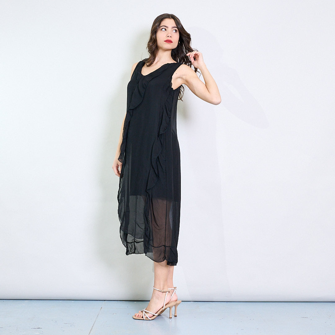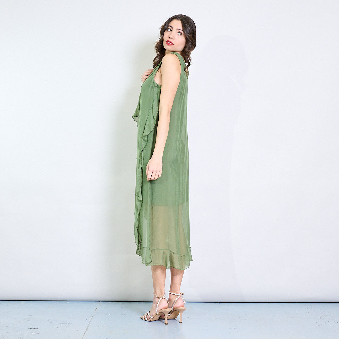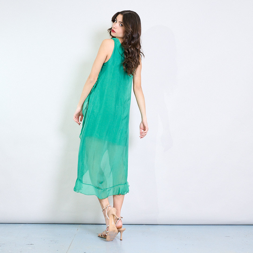 - Gúna flowy sleeveless le fabraic bog, sreabhach