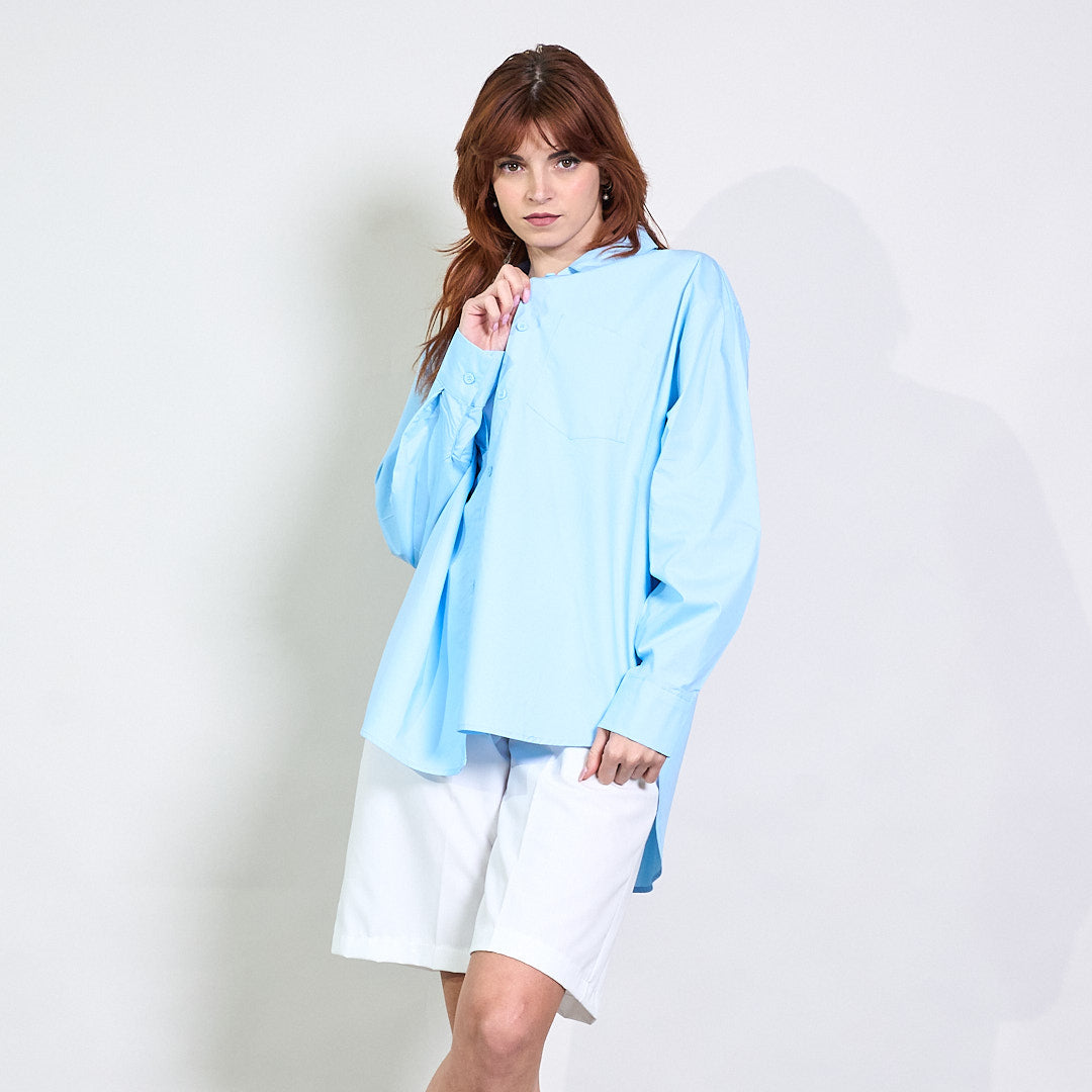 - Collar léine clasaiceach le tosaigh i bhfolach ar an gcnaipe