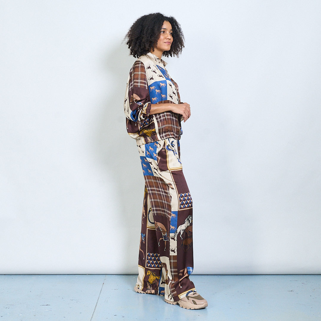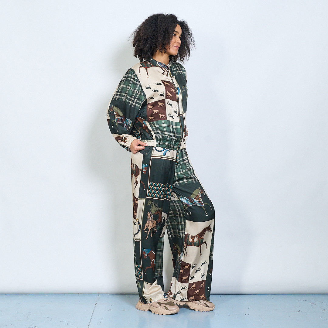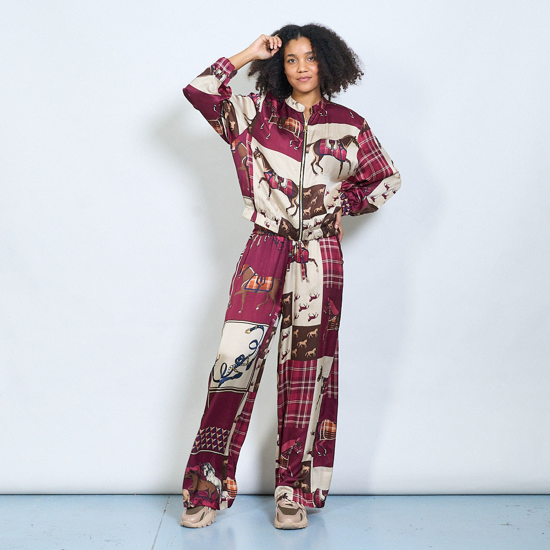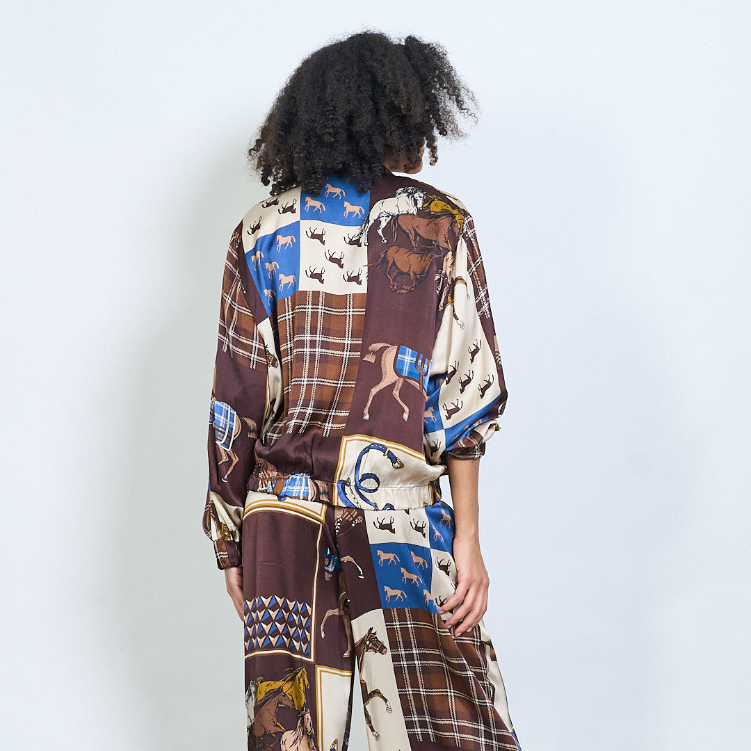 Priontáil Eachaíochta Patchwork Priontáil Jacket Zip-Up Satin