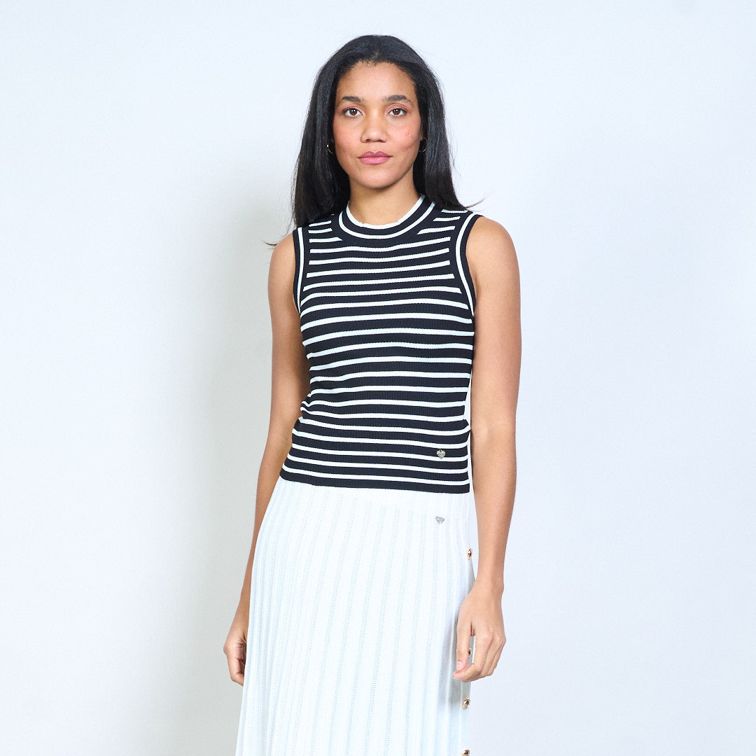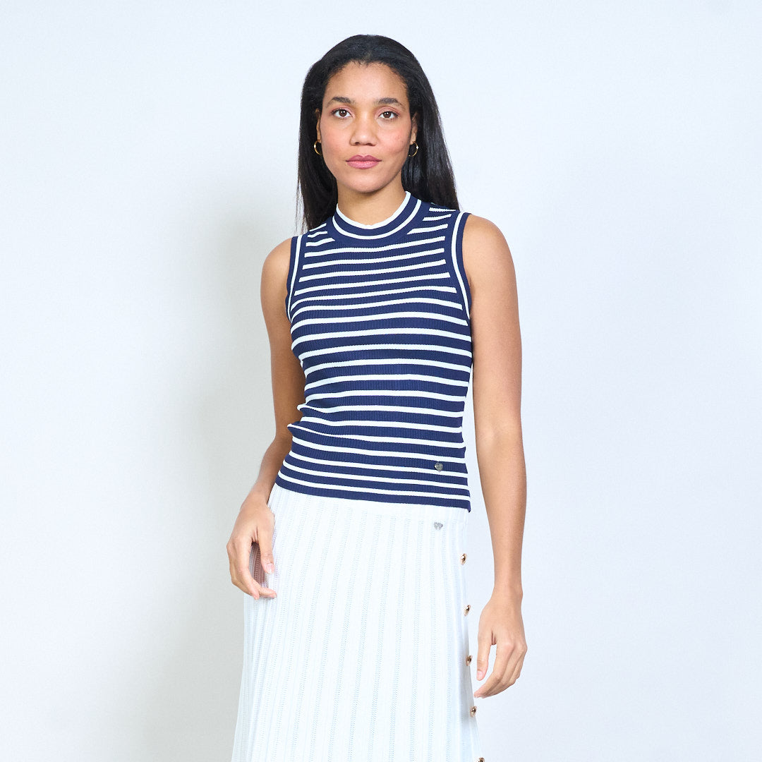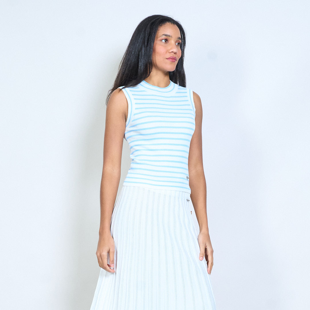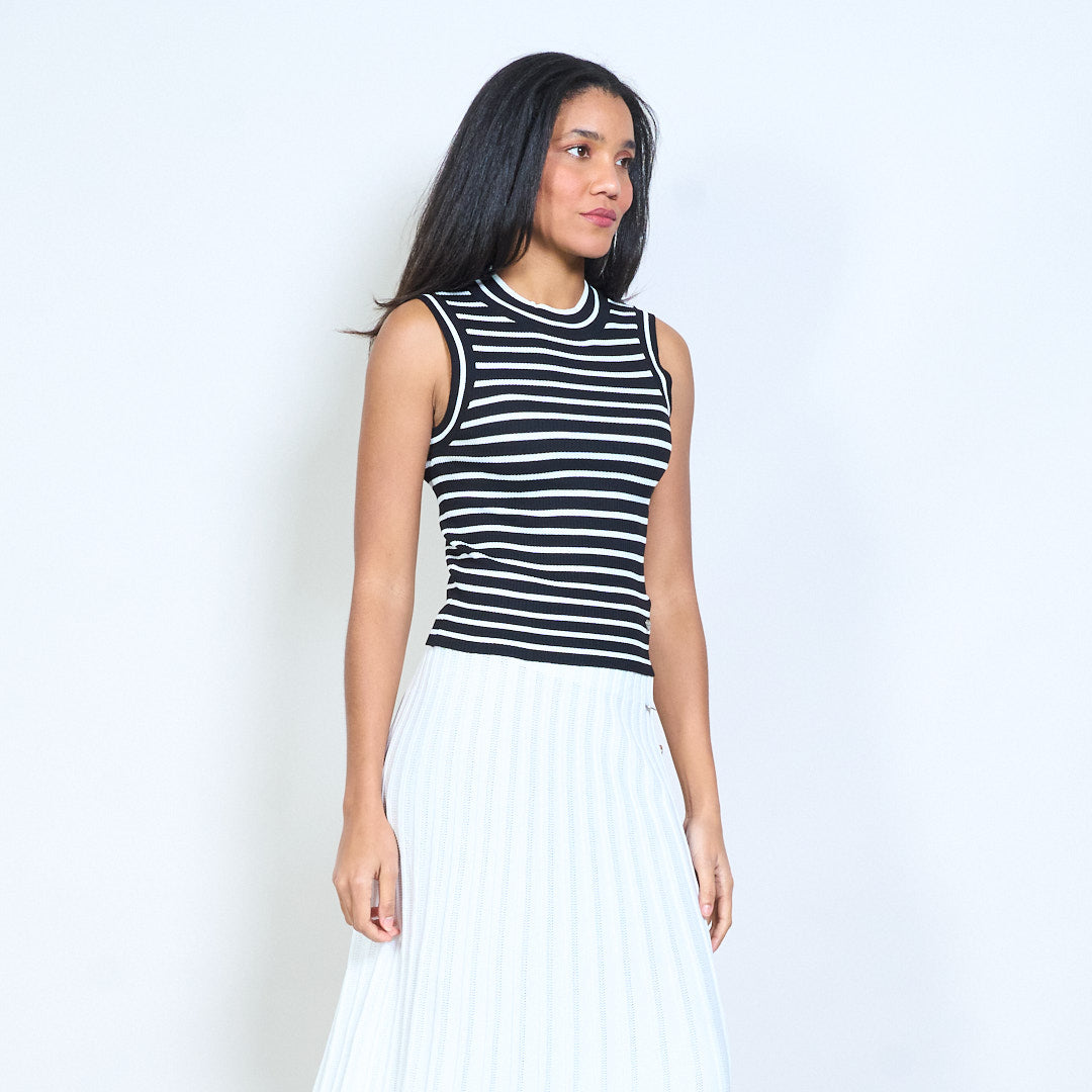 Barr cniotáilte iomaireach sleeveless striped le neckline bhabhta mórdhíola