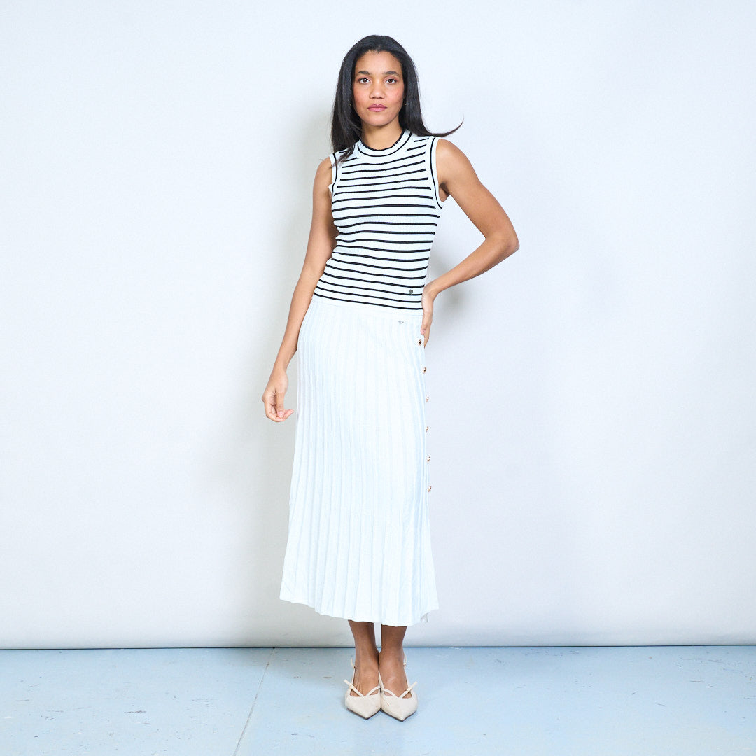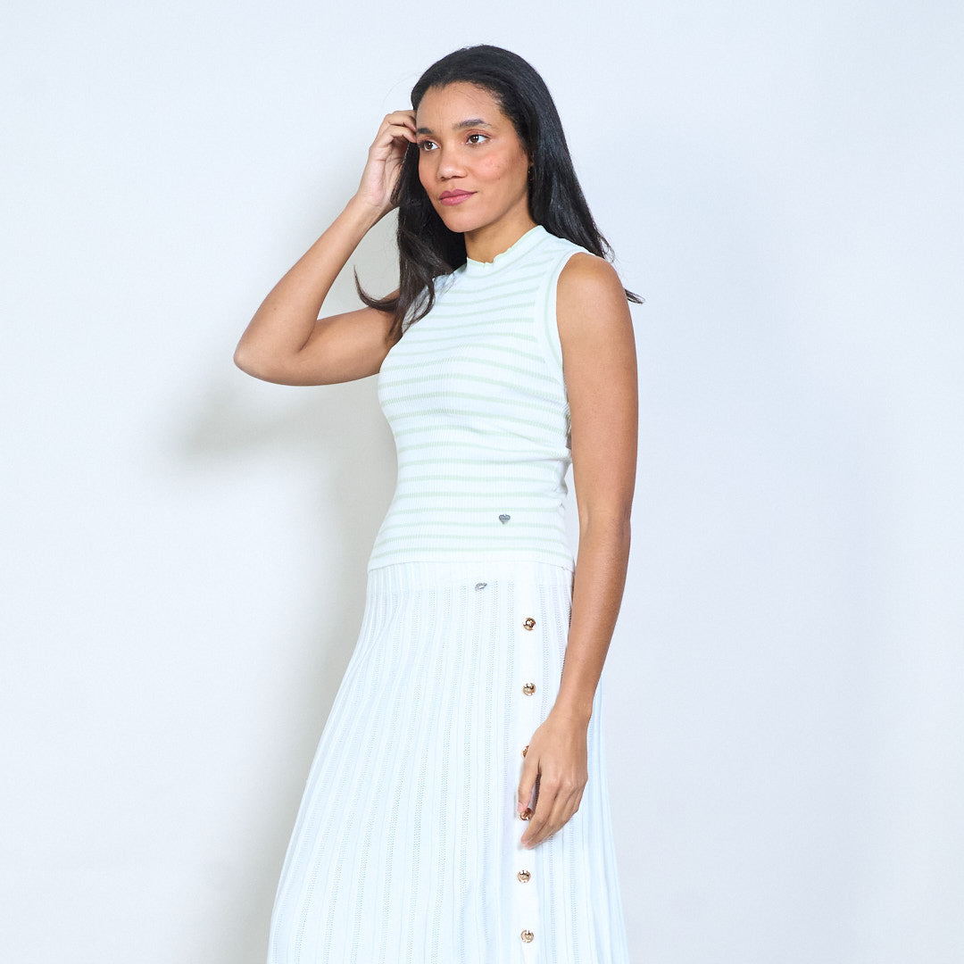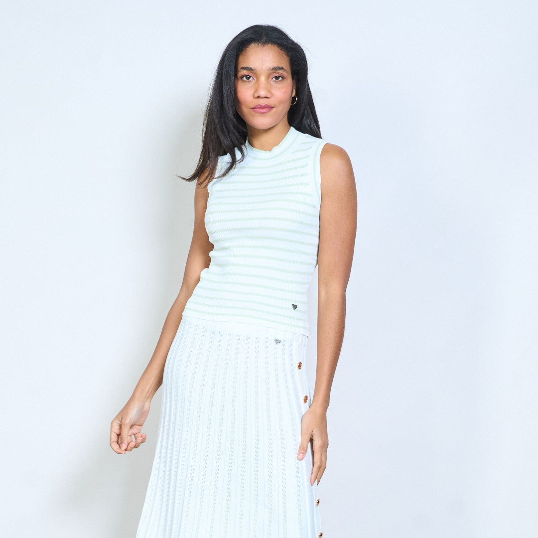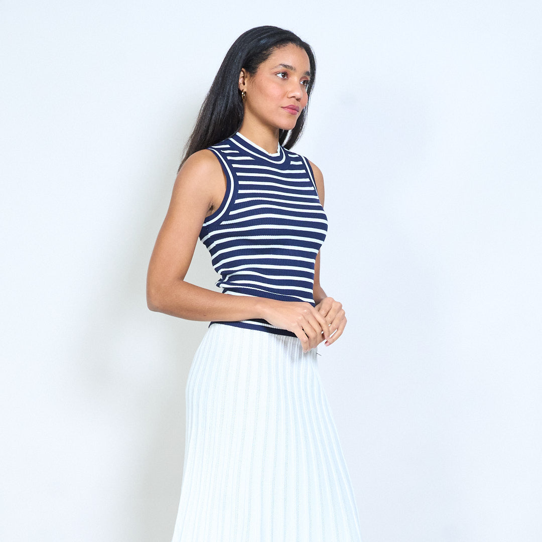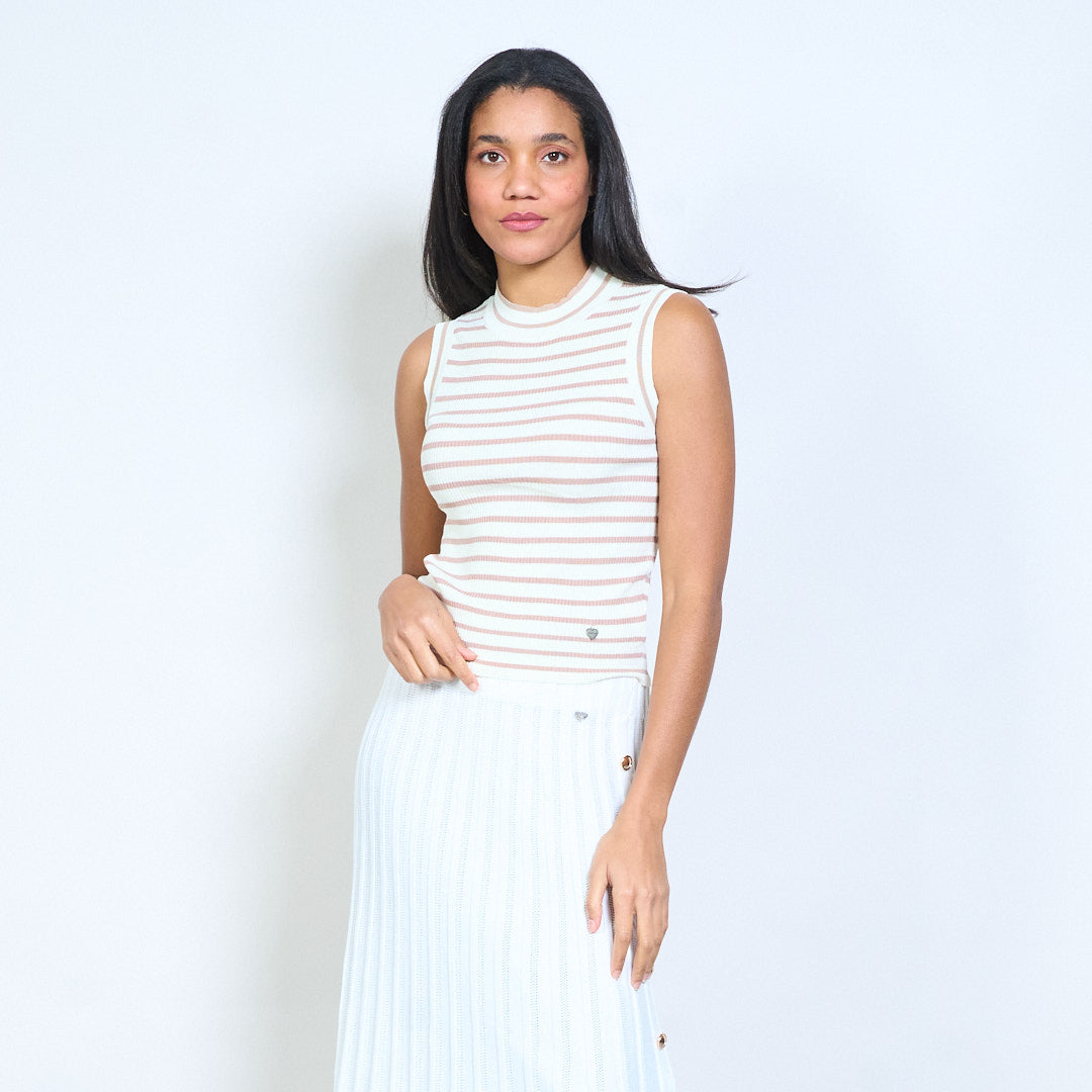 Barr cniotáilte iomaireach sleeveless striped le neckline bhabhta mórdhíola