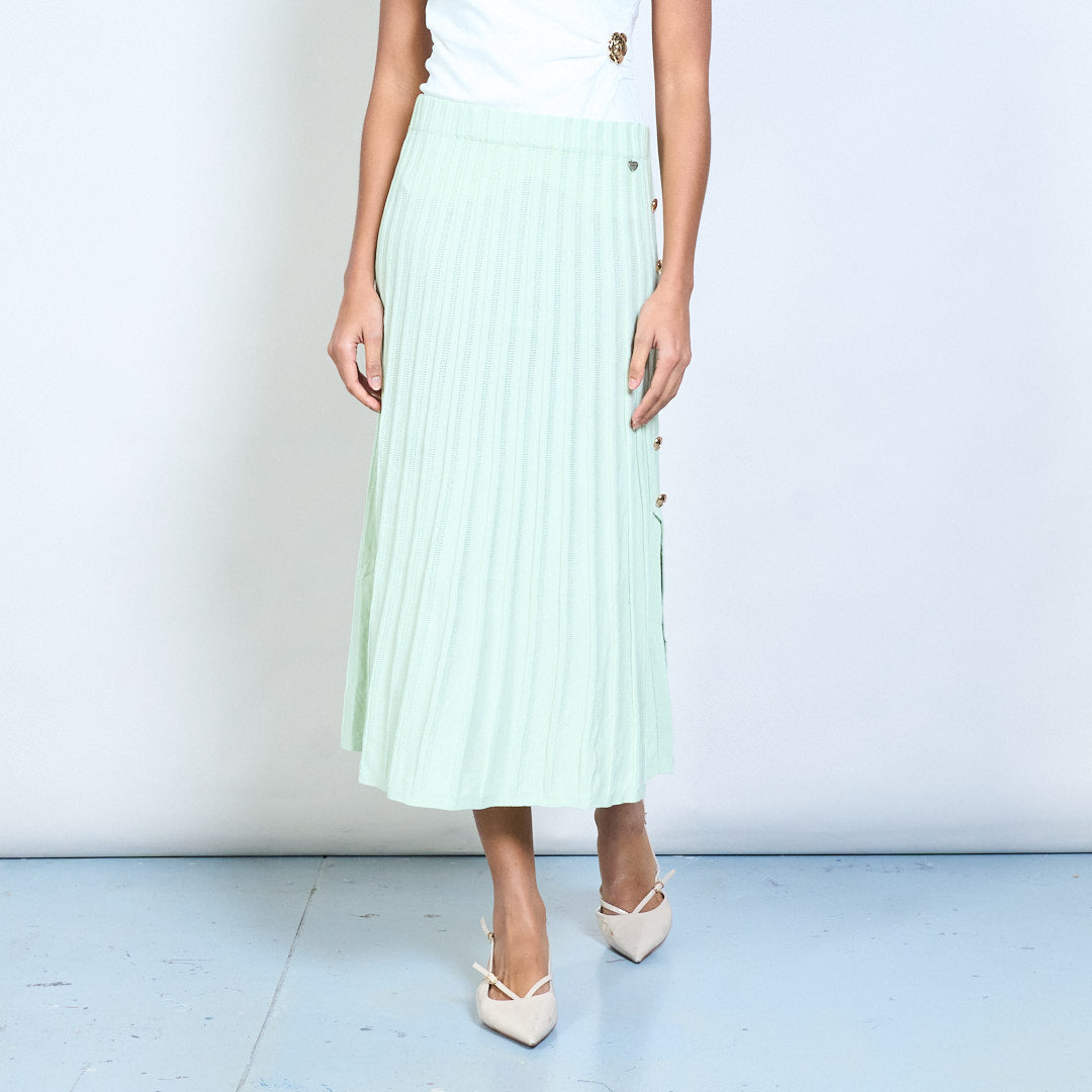 Sciorta midi cniotáilte iomaireach pleated le cnaipe taobh mionsonraí mórdhíola