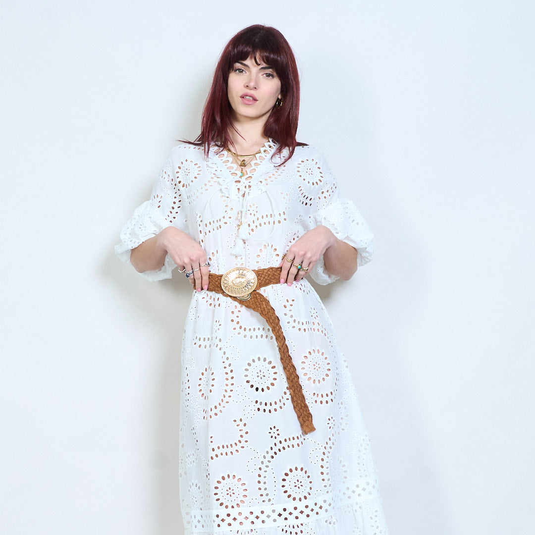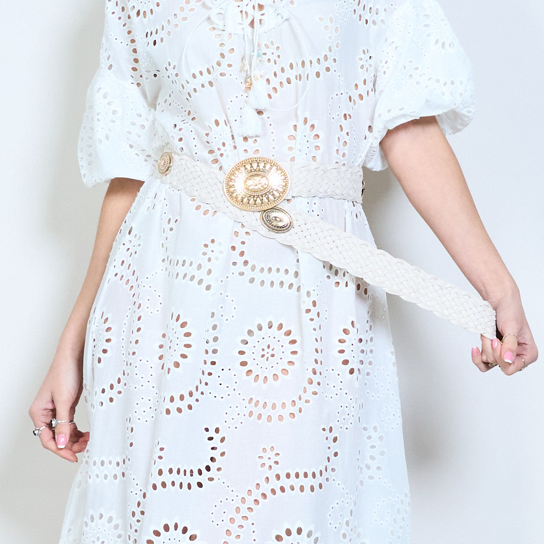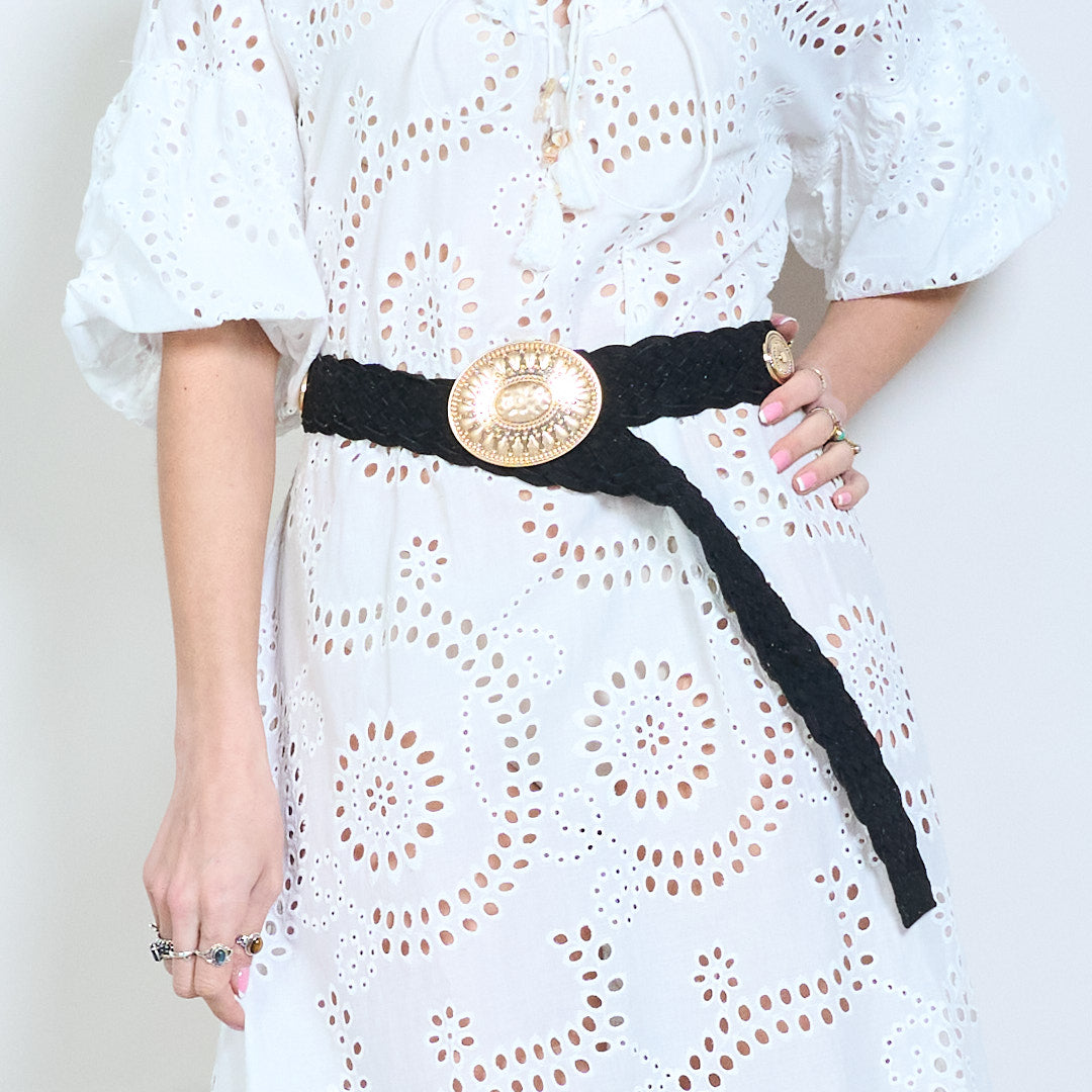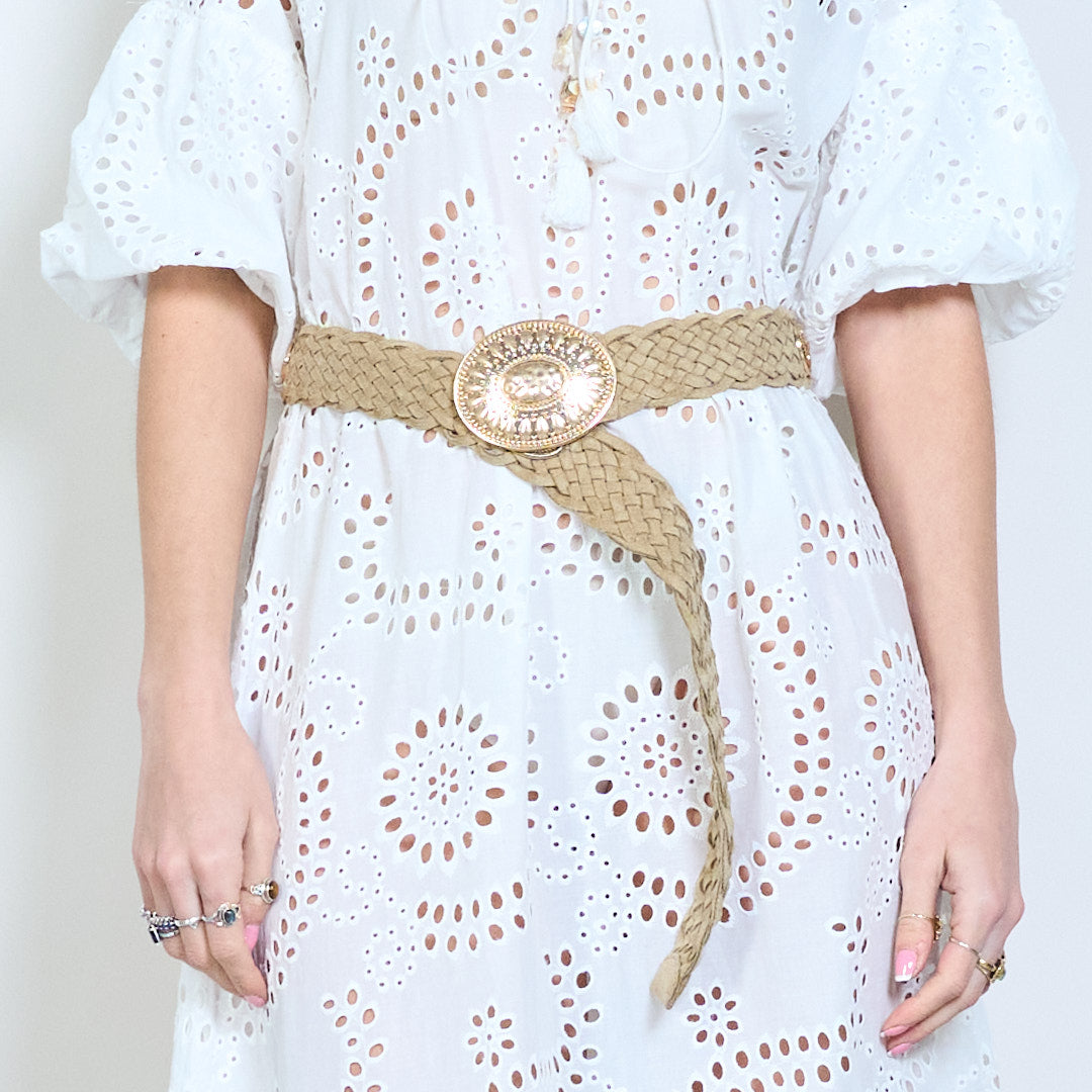 Crios leathair braidáilte le búcla babhta maisiúil mórdhíola