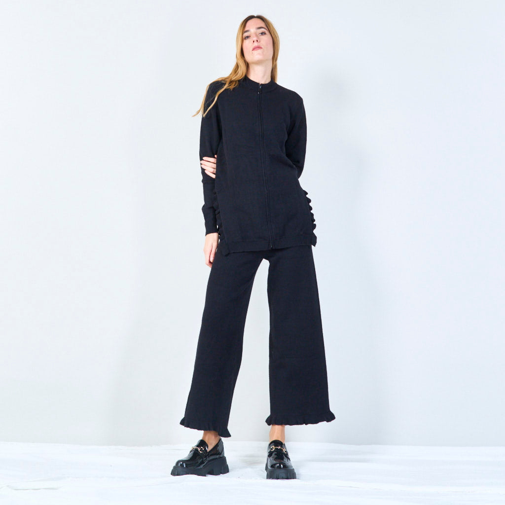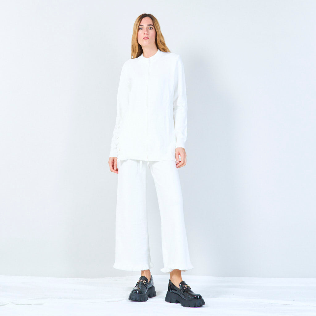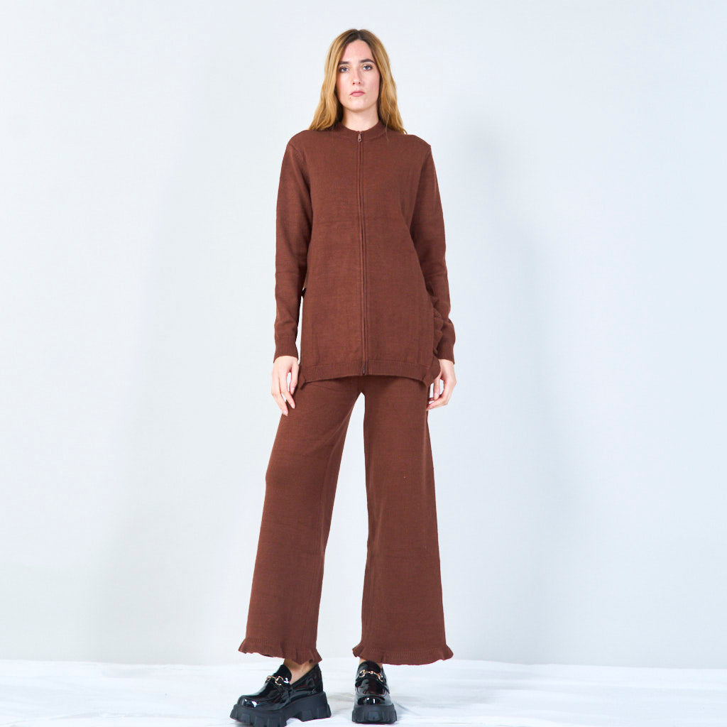 Socraigh cardigan zip-up agus bríste cniotáilte mórdhíola