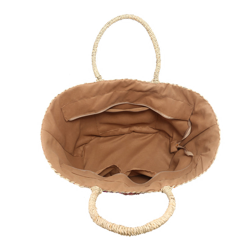 - Mála tuí fite ina bhfuil bláthanna agus féileacáin trópaiceacha trópaiceacha bríomhara lámhdhéanta