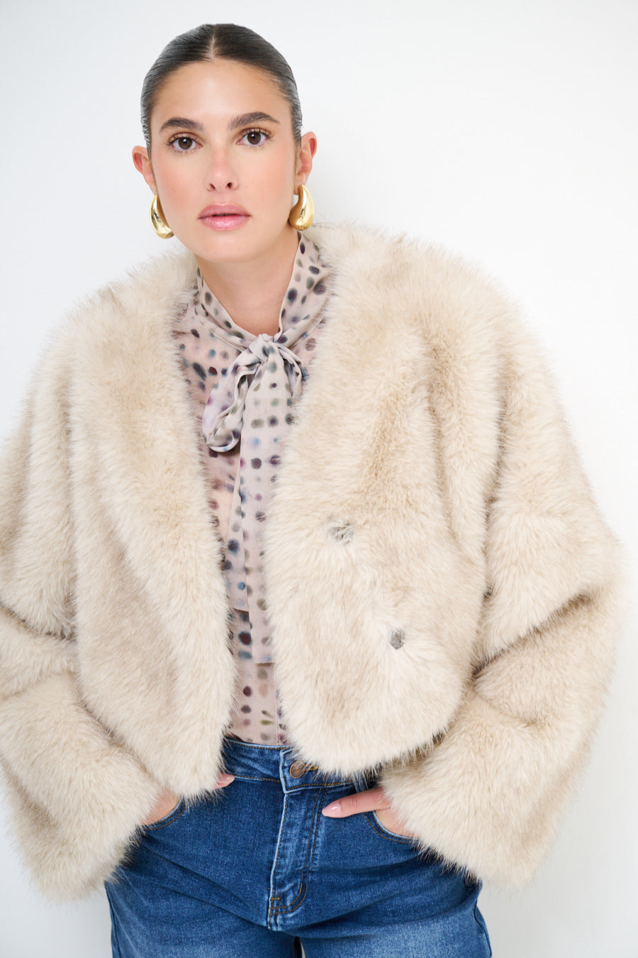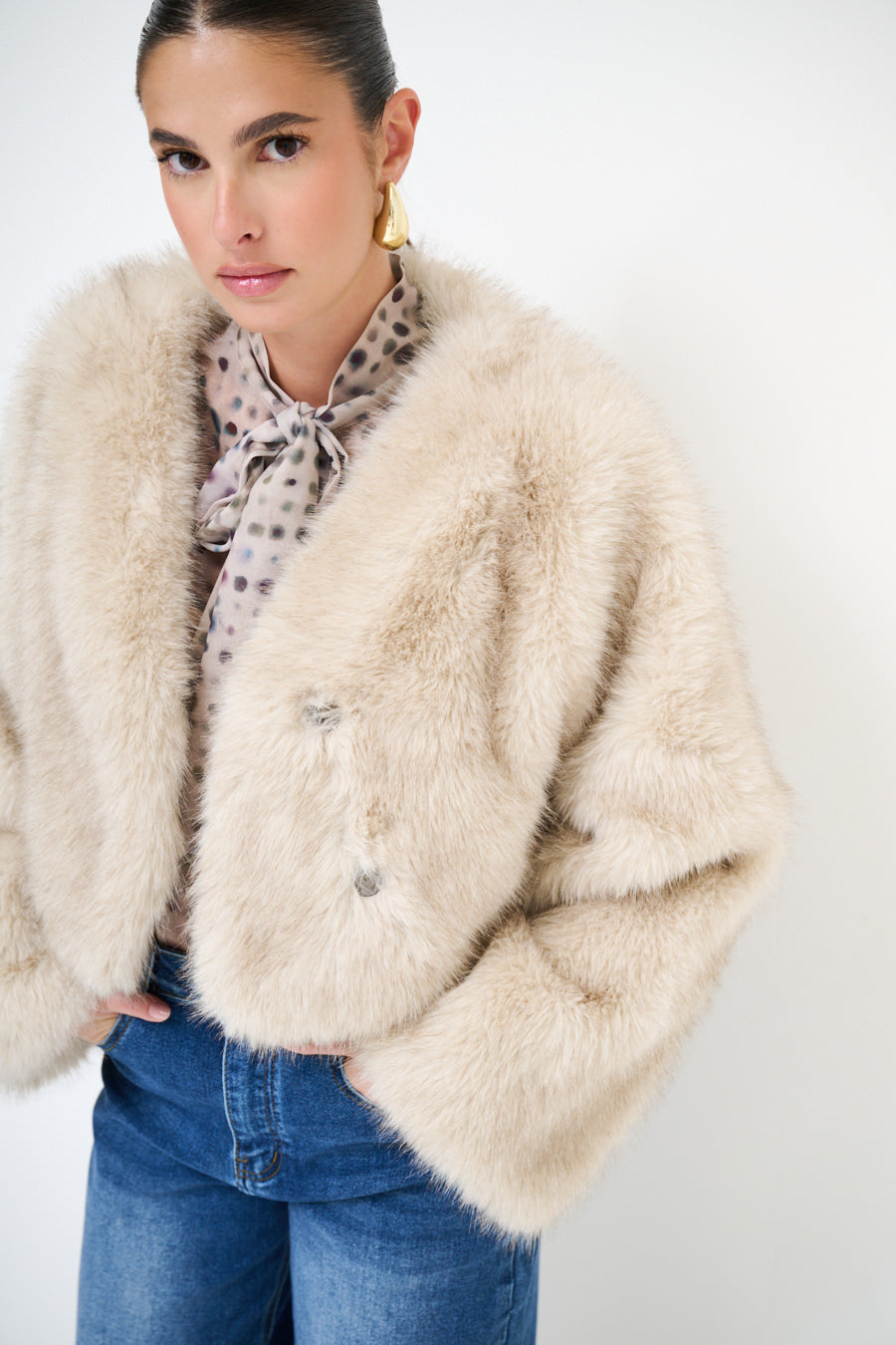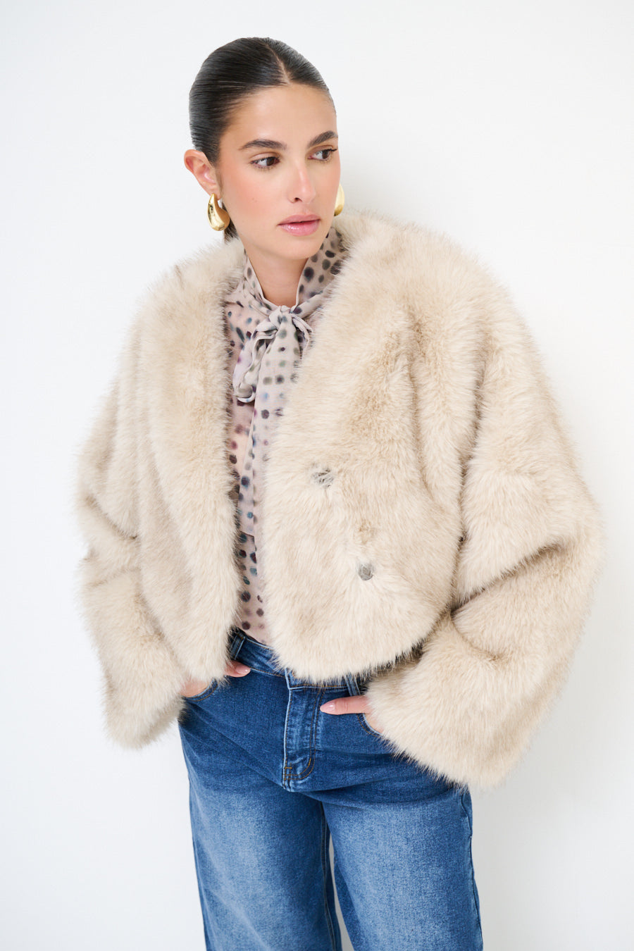 Seaicéad fionnaidh faux cropped le sleeves fada mórdhíola