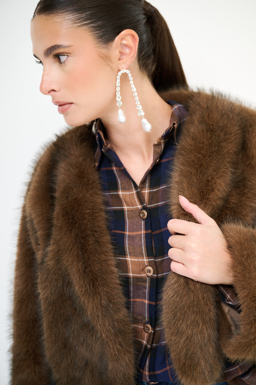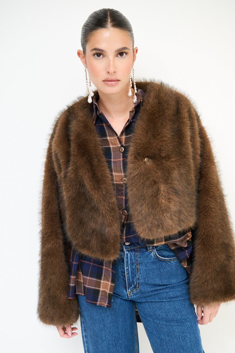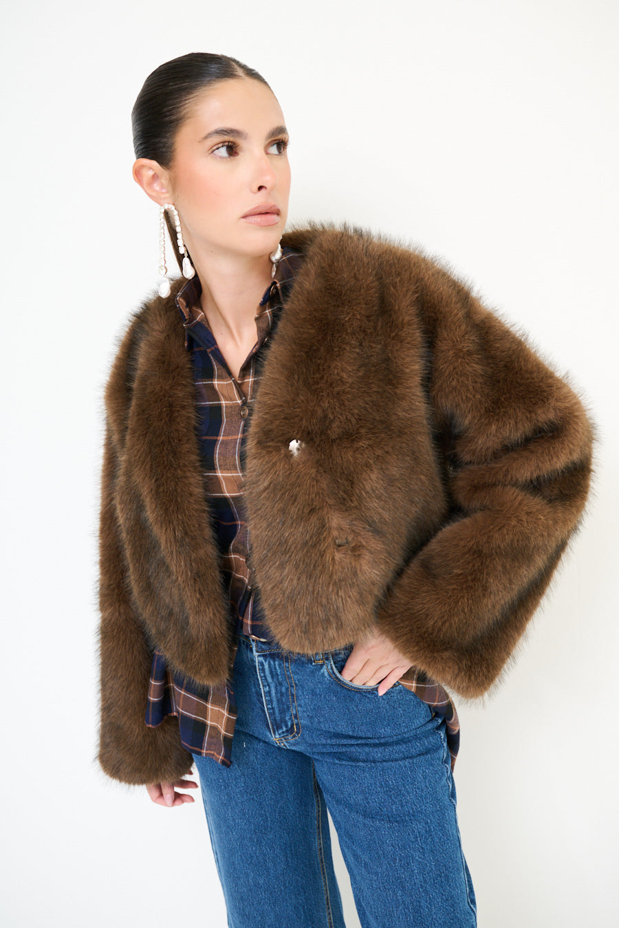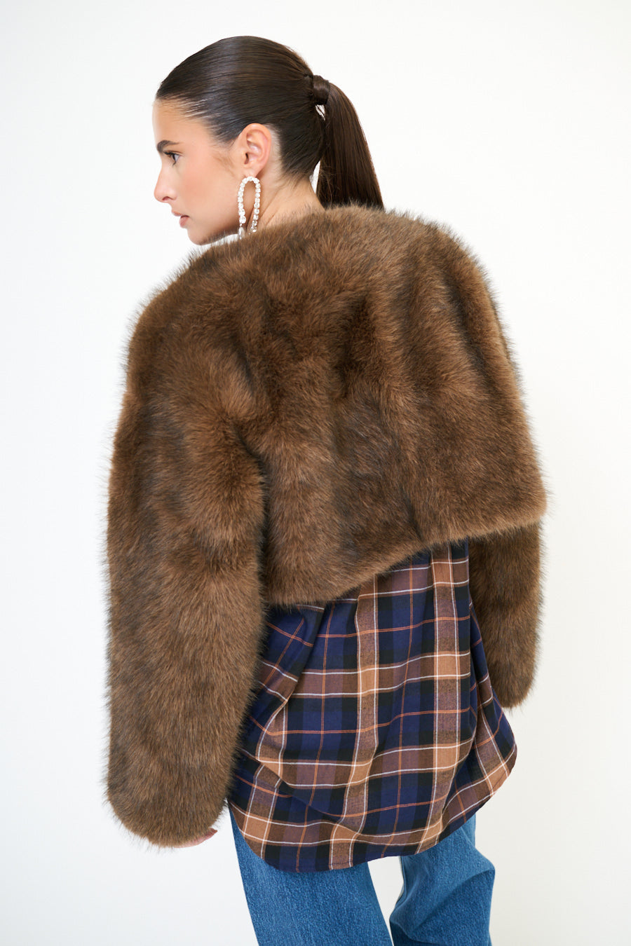 Seaicéad fionnaidh faux cropped le sleeves fada mórdhíola