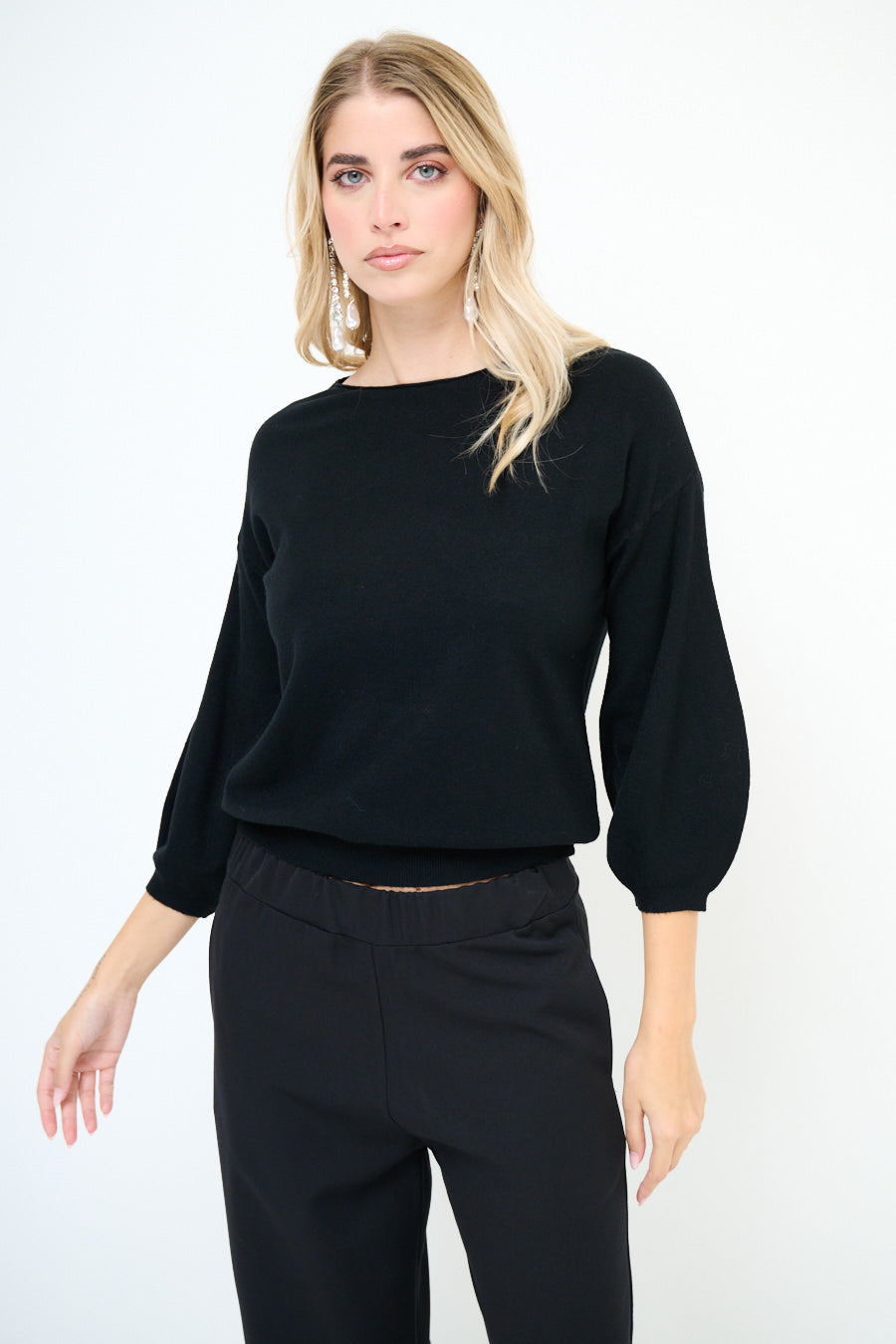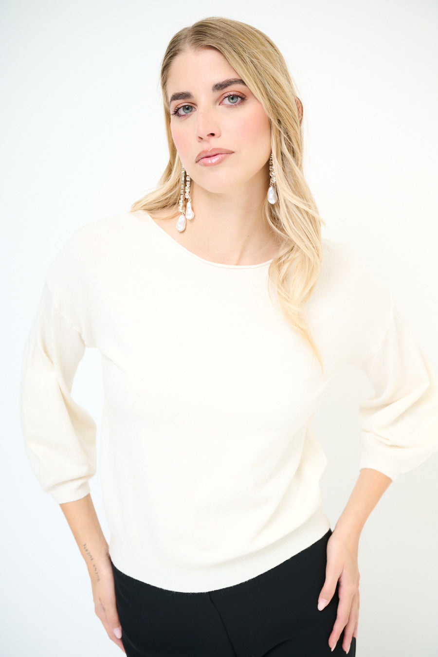- Geansaí galánta le neckline bád leathan le haghaidh cuma scagtha