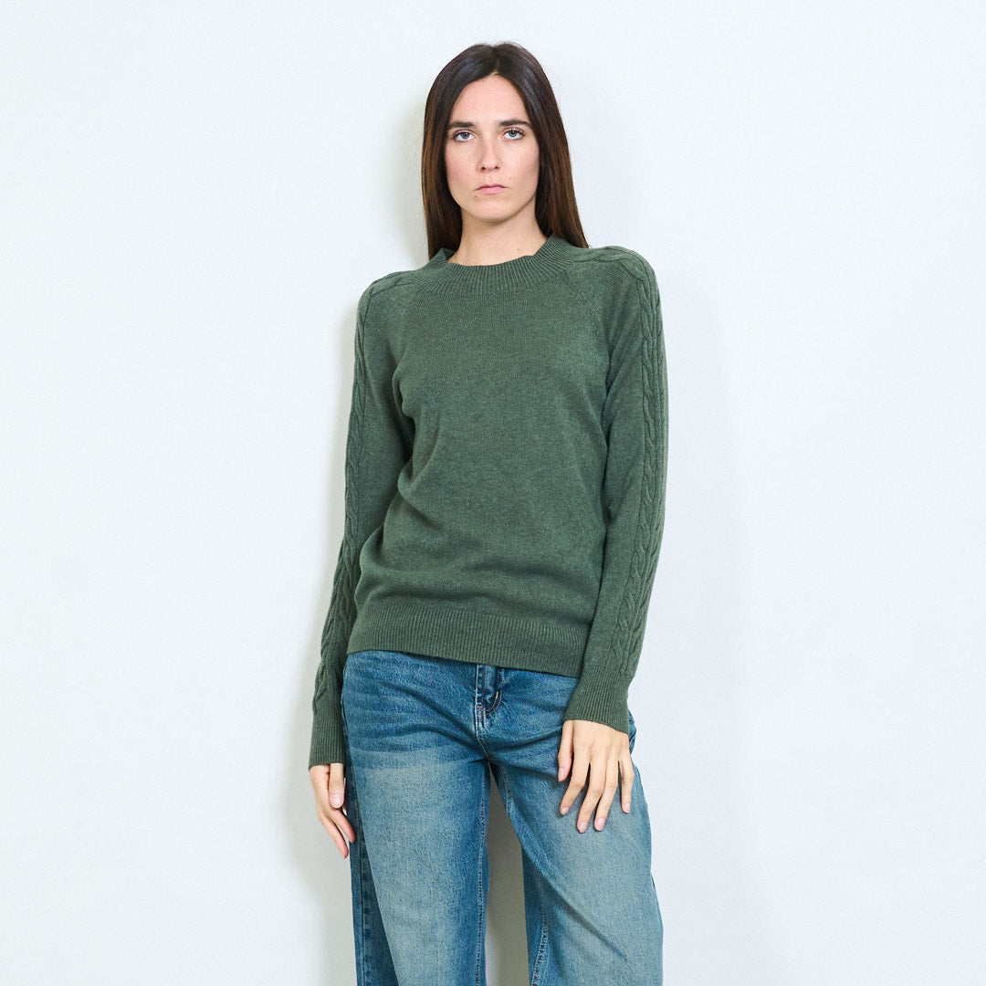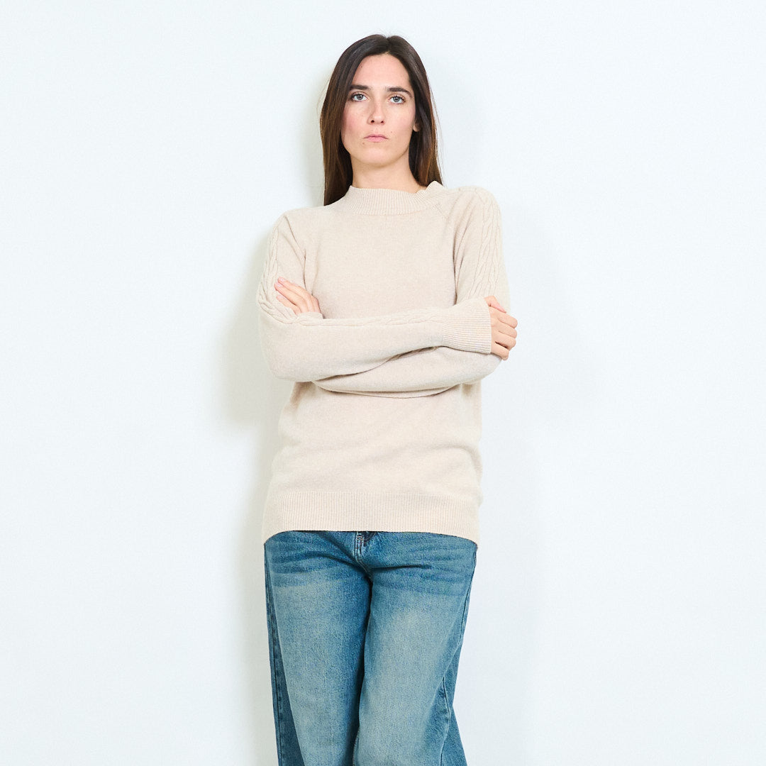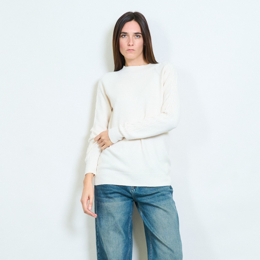 Geansaí Crewneck le Mionsonraí Sleeve Cniotála Cábla Mórdhíola