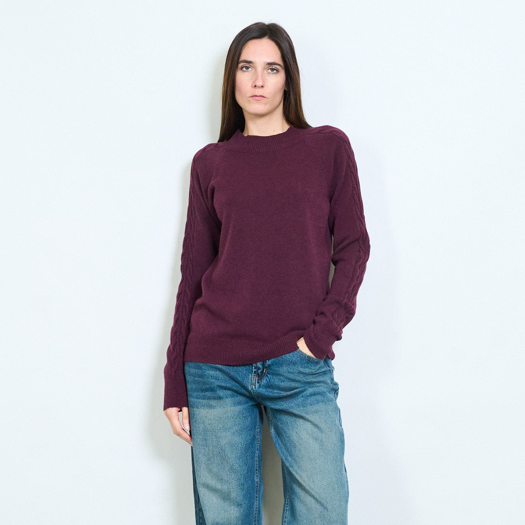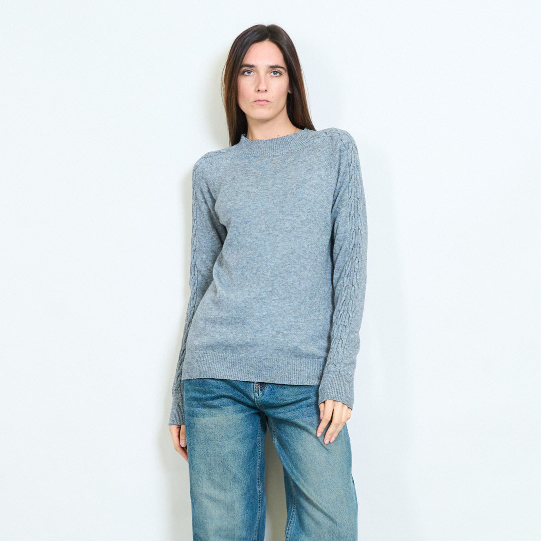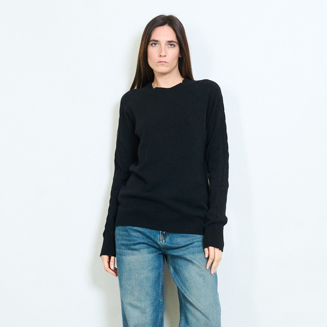 Geansaí Crewneck le Mionsonraí Sleeve Cniotála Cábla Mórdhíola