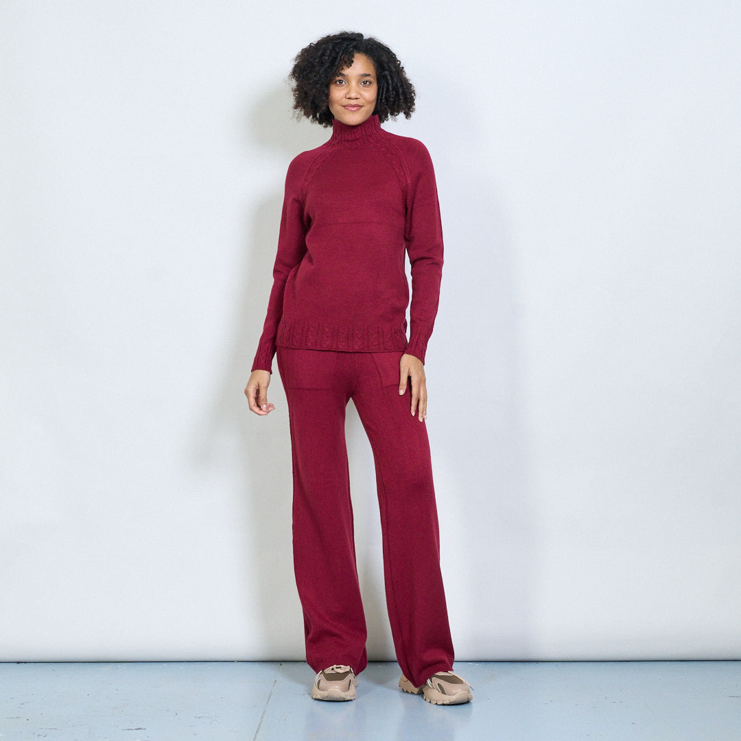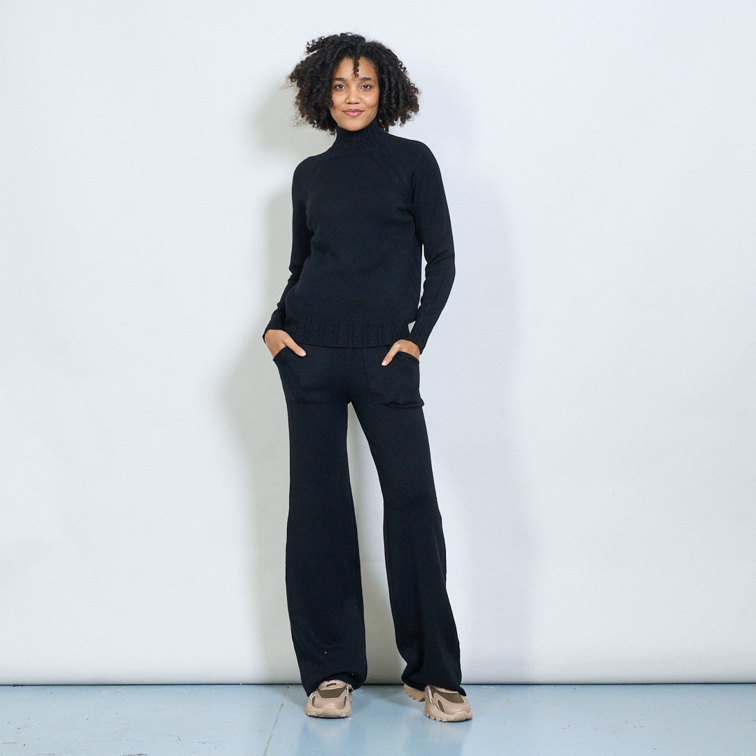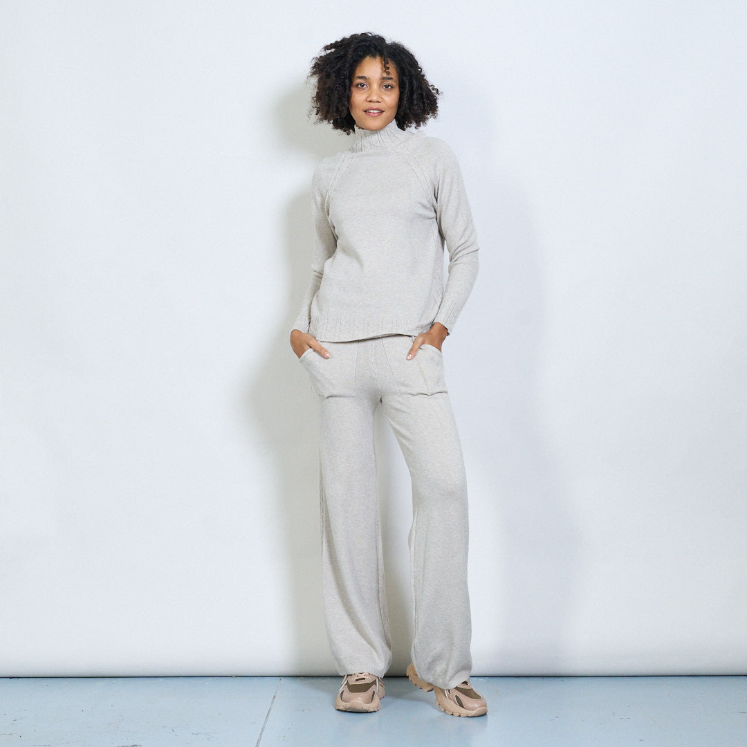 - Socraigh cniotáilte comhordaithe le geansaí agus pants sleamhnán fada