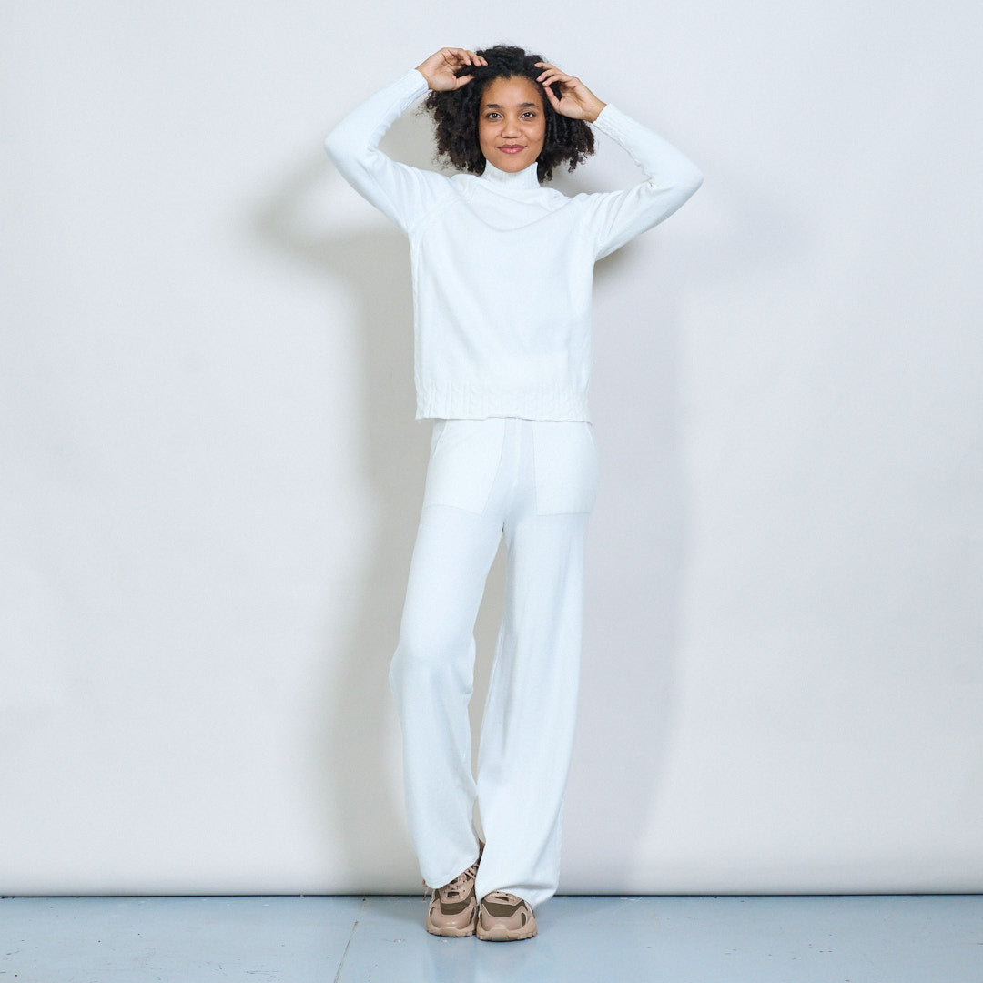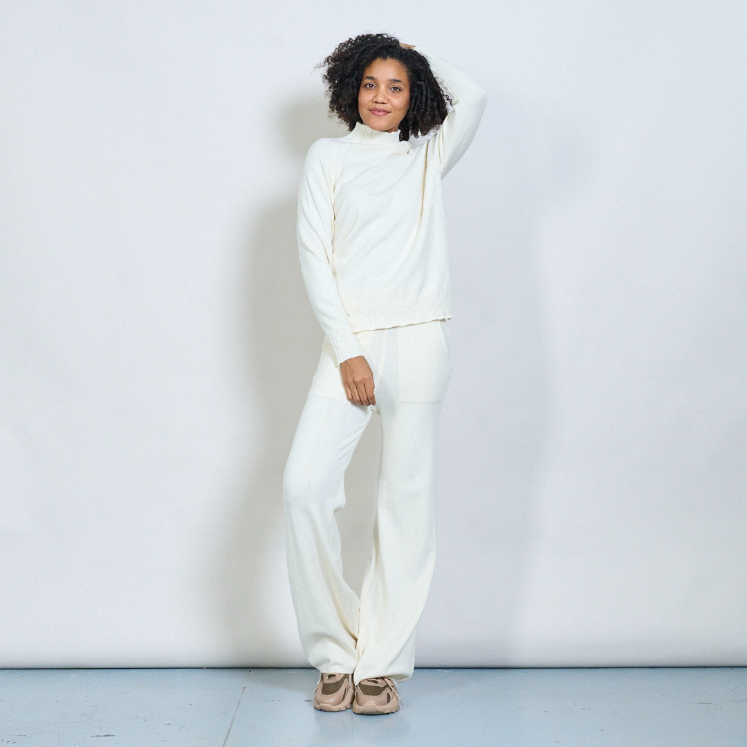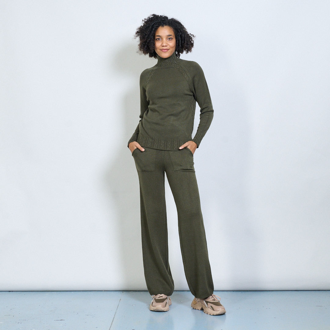 - Socraigh cniotáilte comhordaithe le geansaí agus pants sleamhnán fada