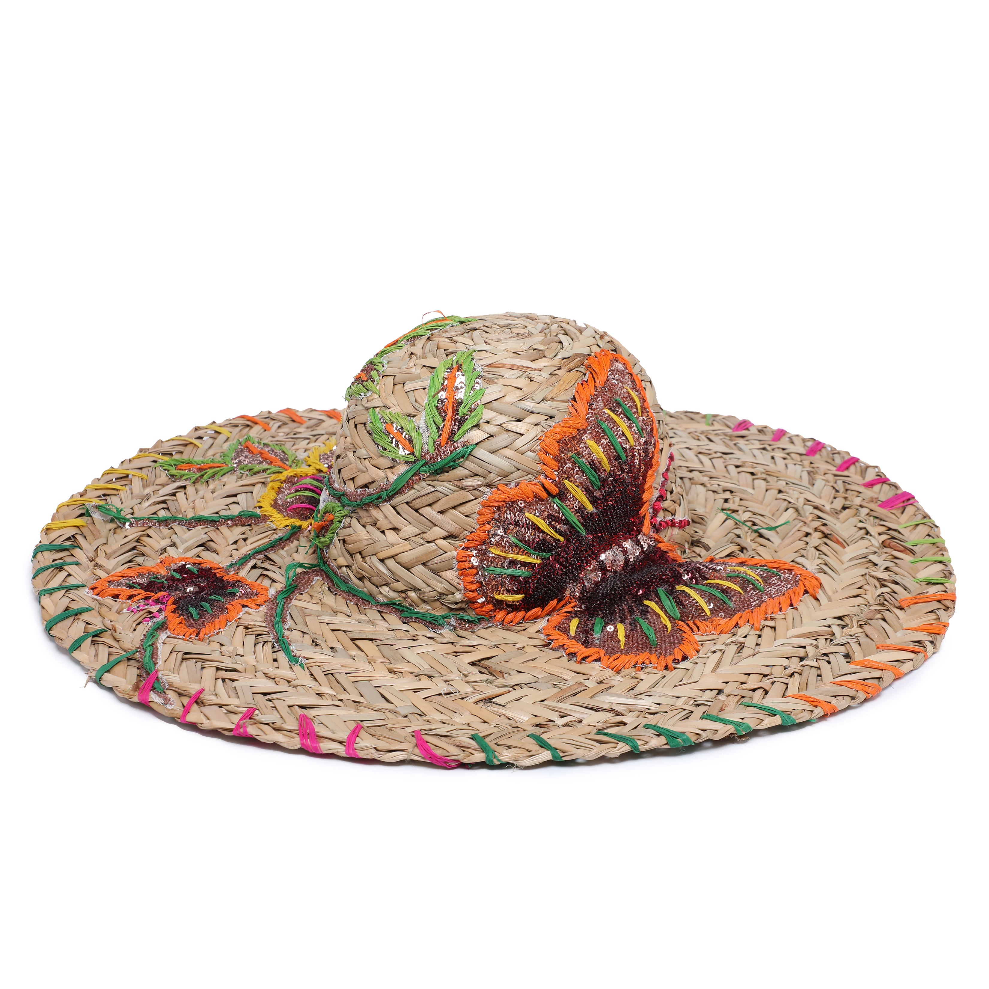 Hata samhraidh raffia braided le ciumhais amh mórdhíola