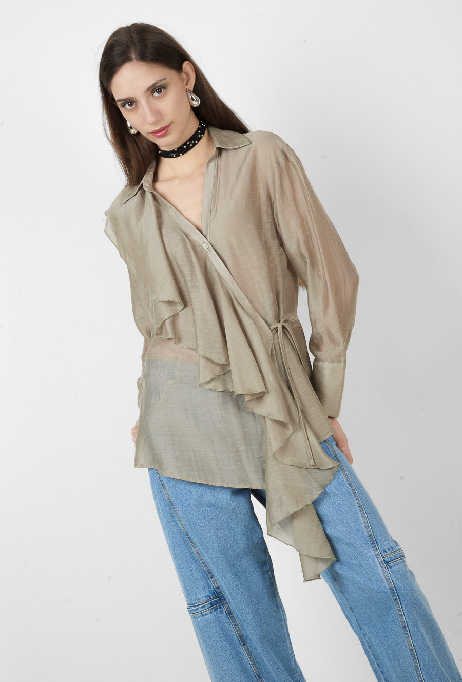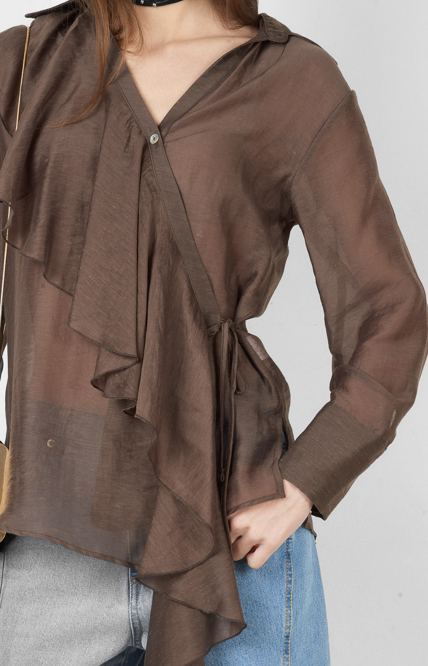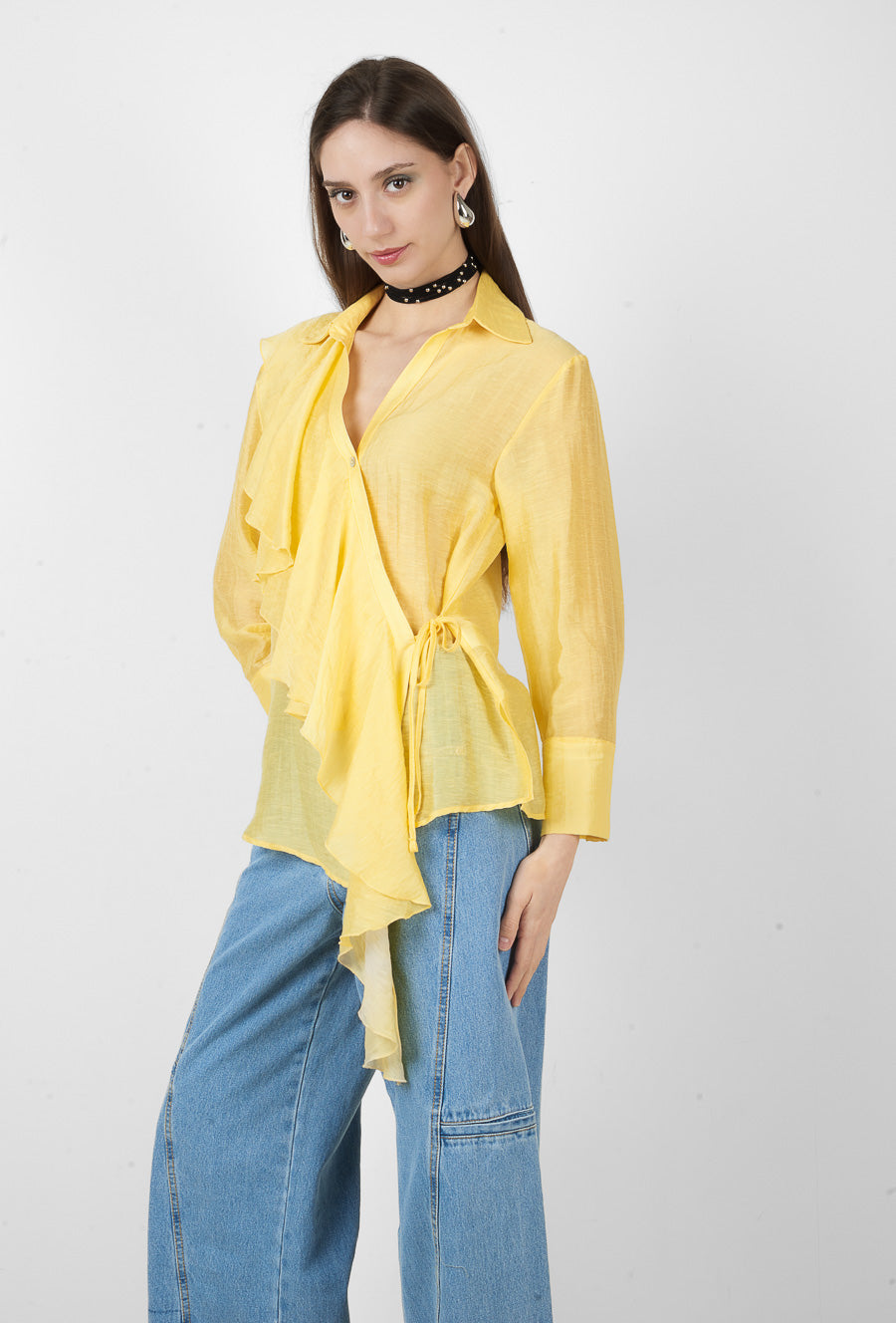 Blús fillte fórsa le mionsonraí ruffle mórdhíola