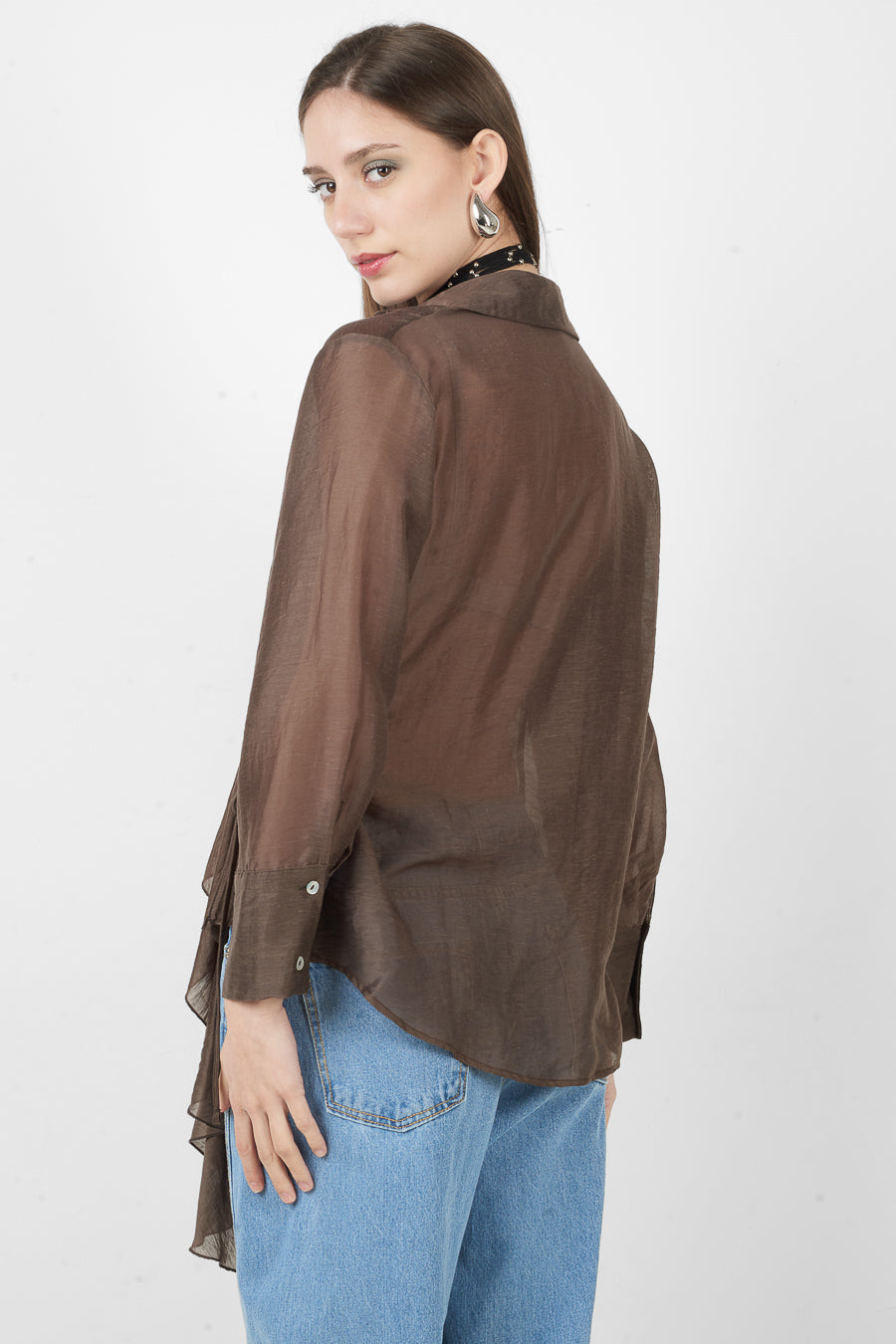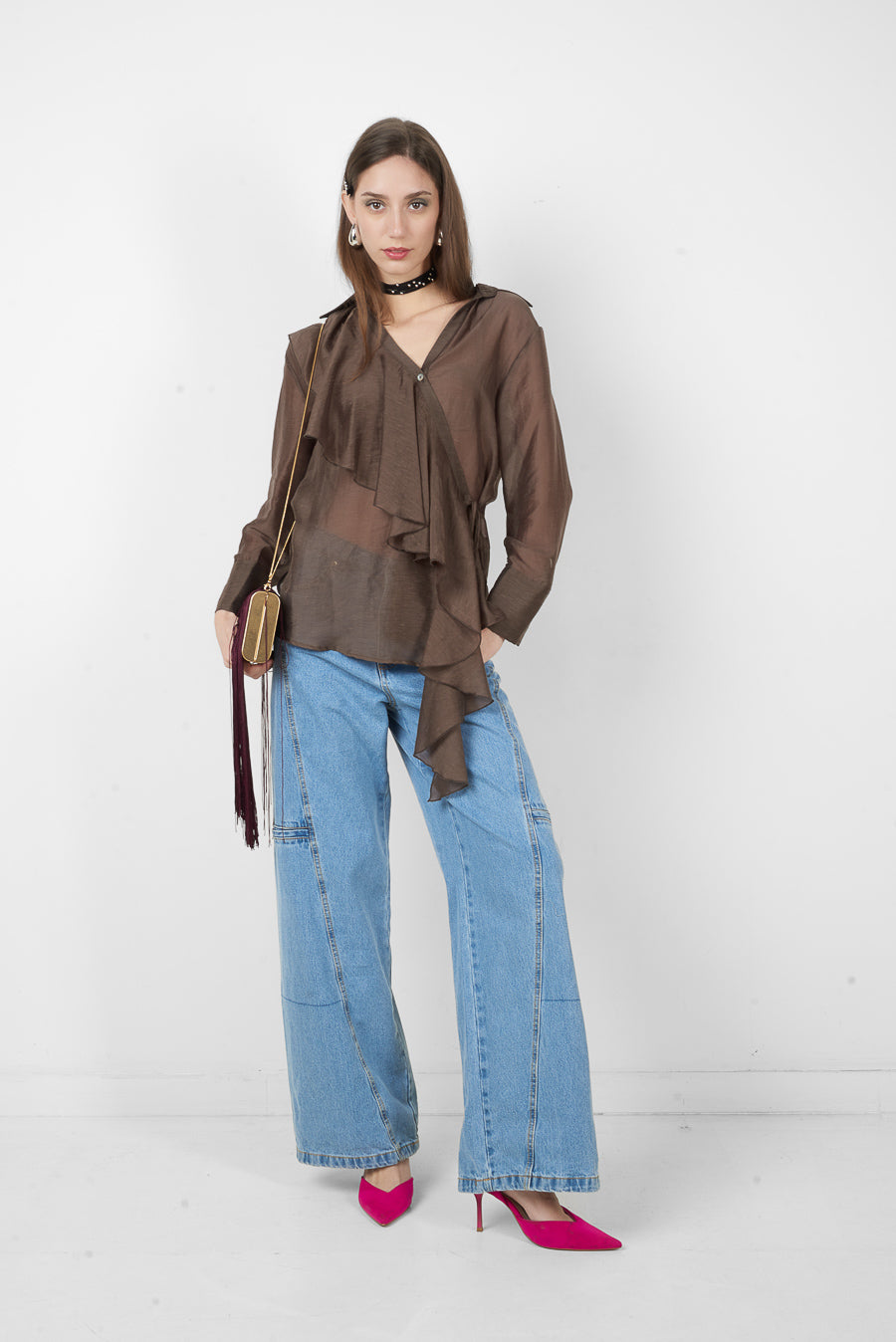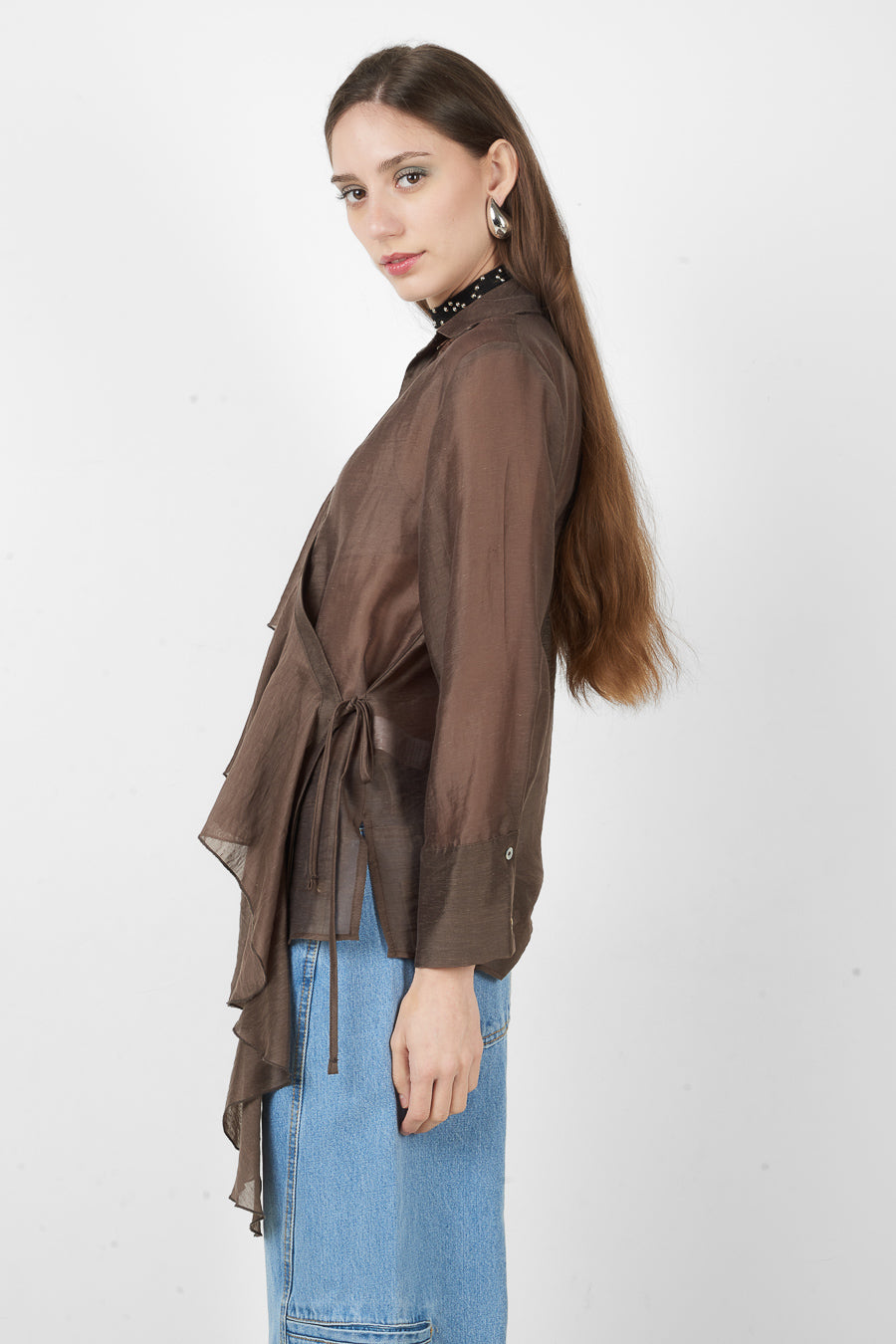 Blús fillte fórsa le mionsonraí ruffle mórdhíola