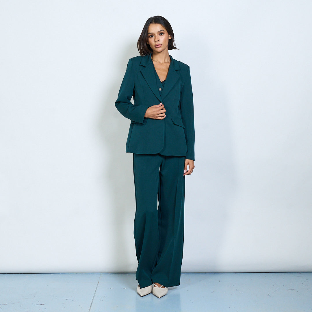 - Blazer clasaiceach lapel le dúnadh cnaipe aon-breasted