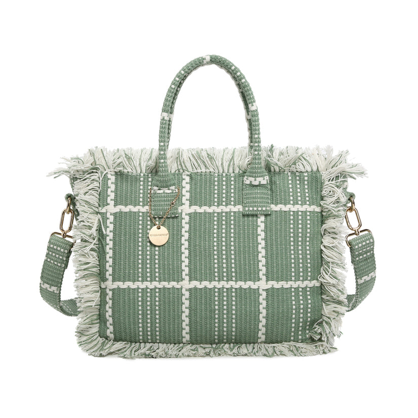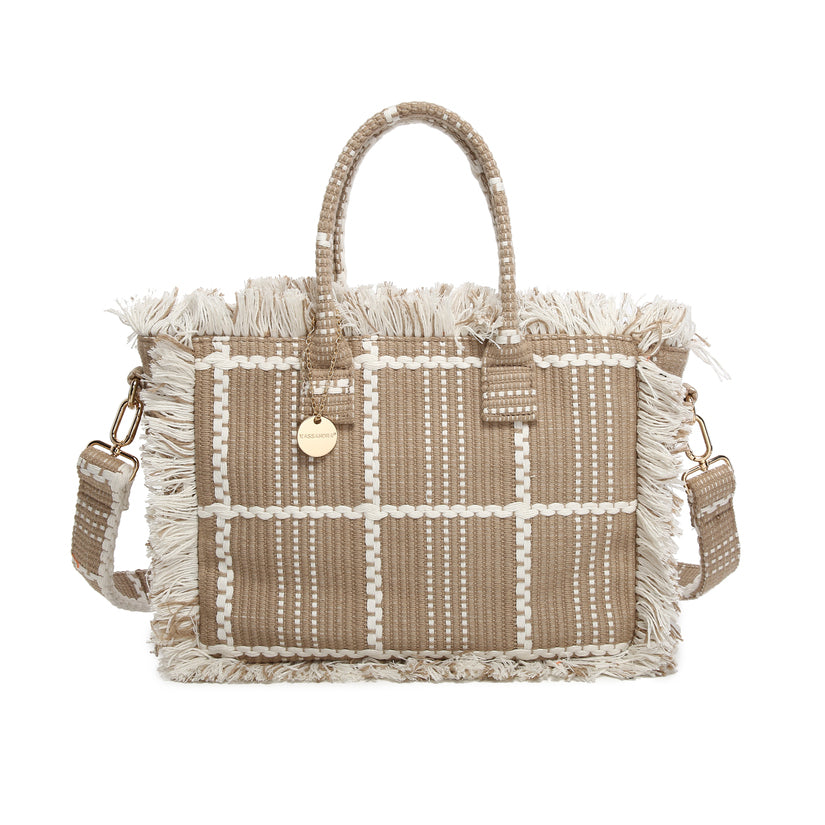 Mála Tote Greille Neodrach Fite le himill Fringe agus Strap Crossbody Mórdhíola