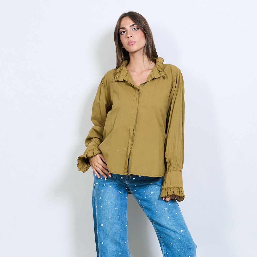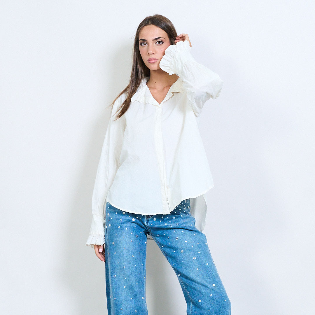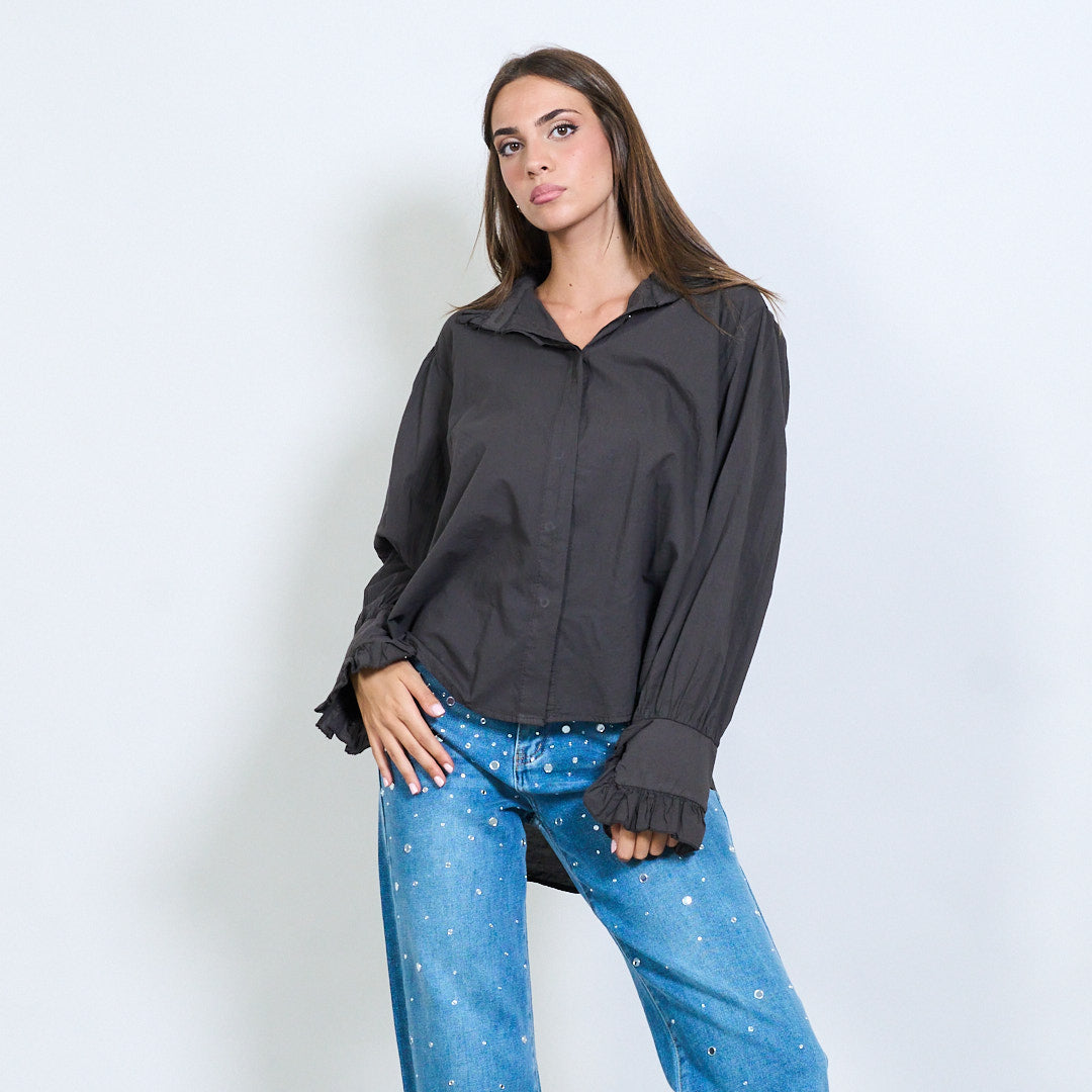 - Sleeves fada le cufaí ruffled ag cur toirt leis