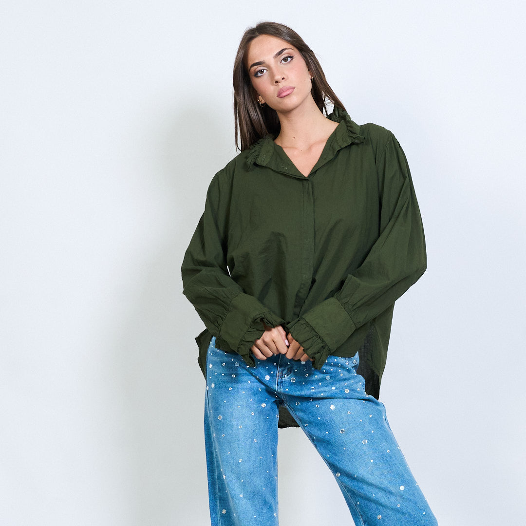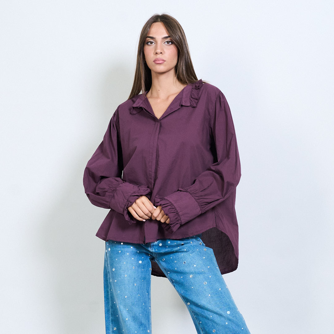 Blús cnaipe Baile Átha Troim ard -mhuineál mórdhíola