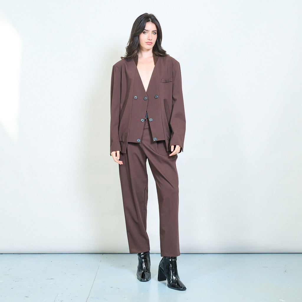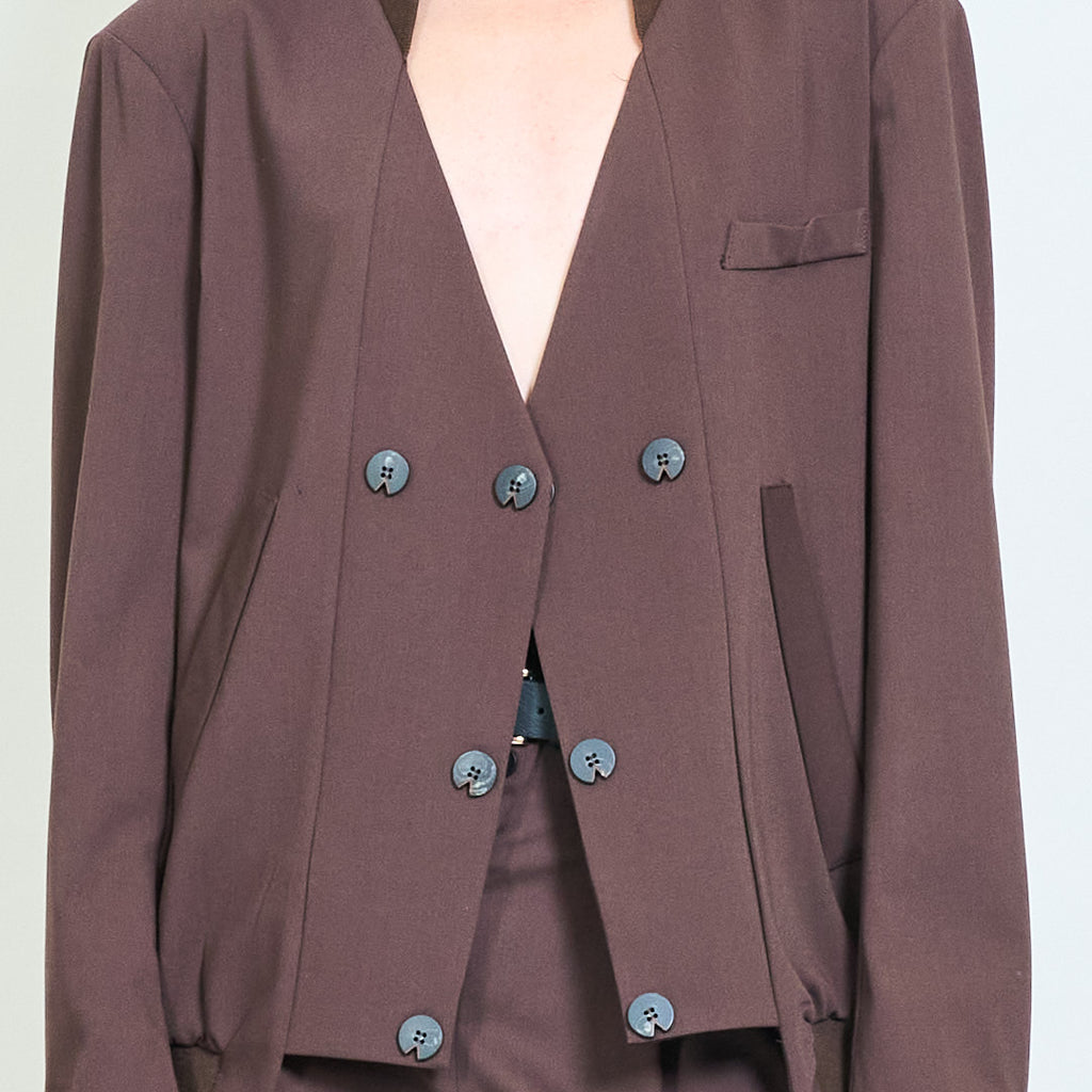 Blazer buamadóir dúbailte le mórdhíola collar ribín