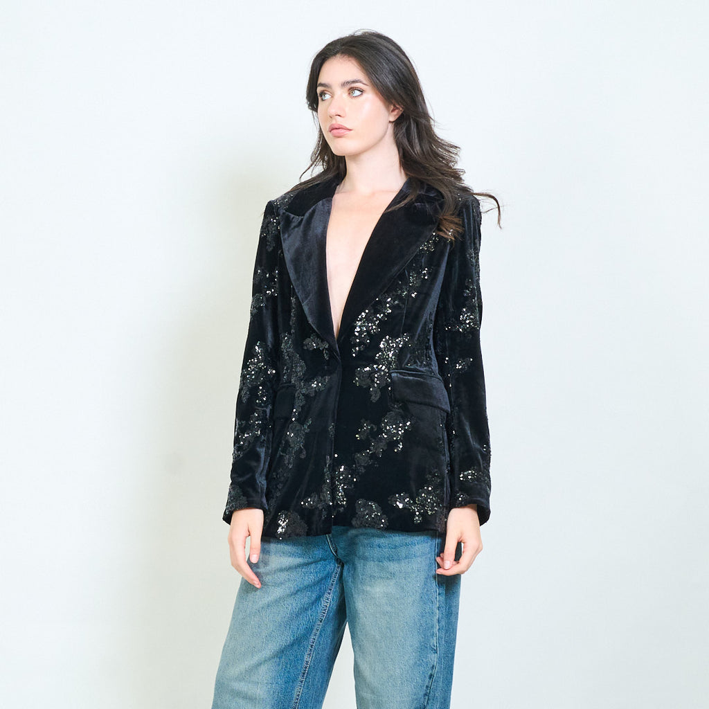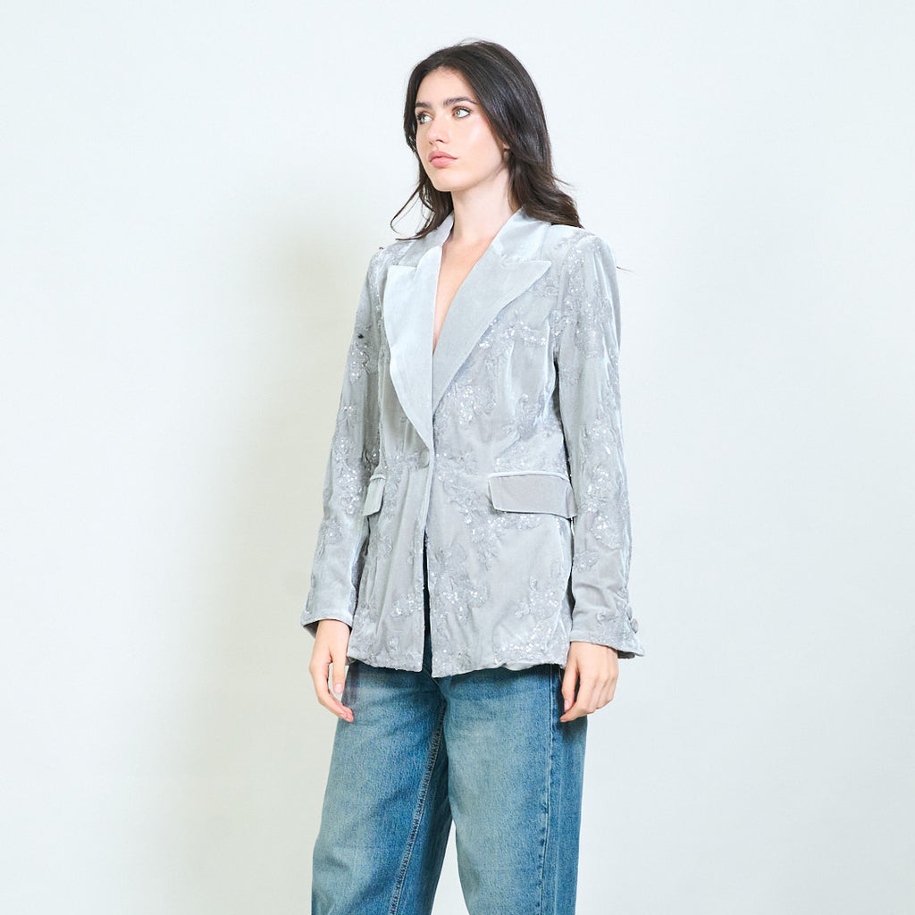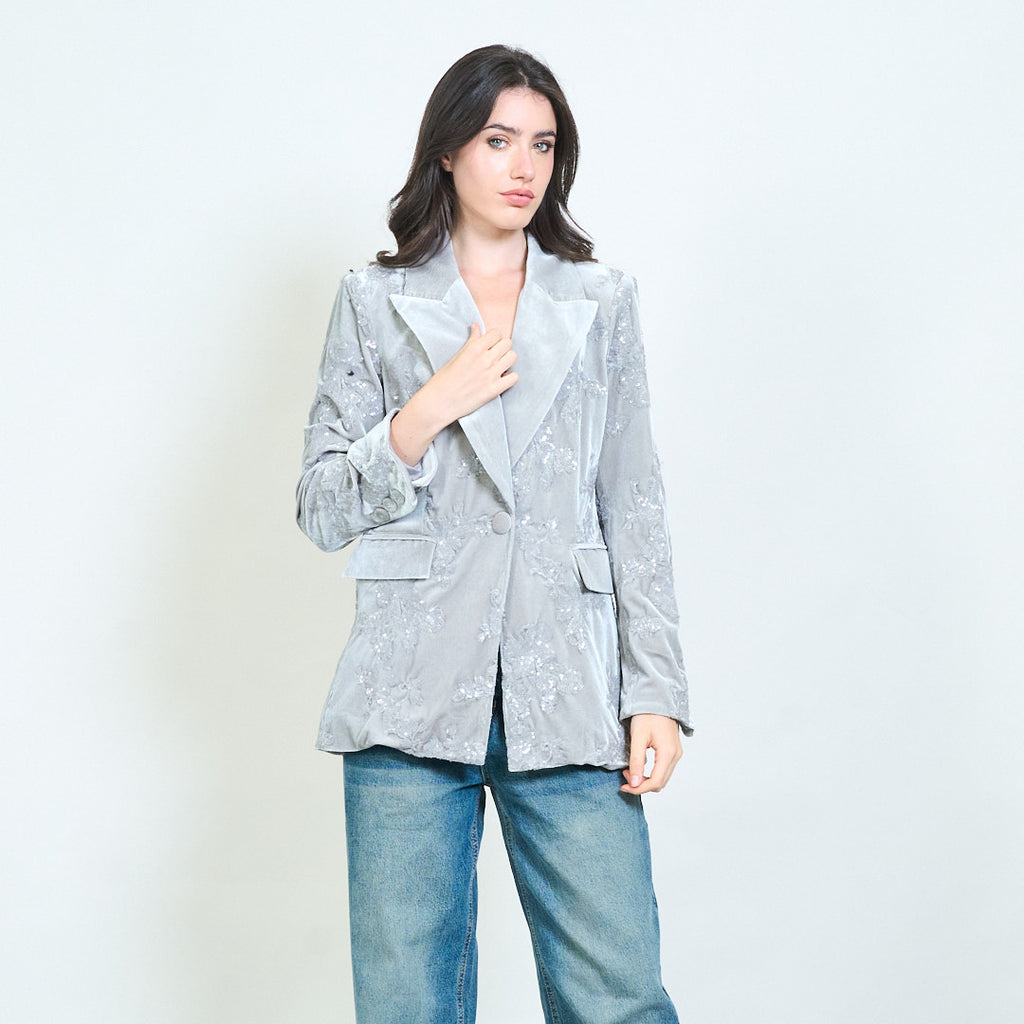 Blazer veilbhit le mórdhíola bróidnéireachta sequin bláthanna