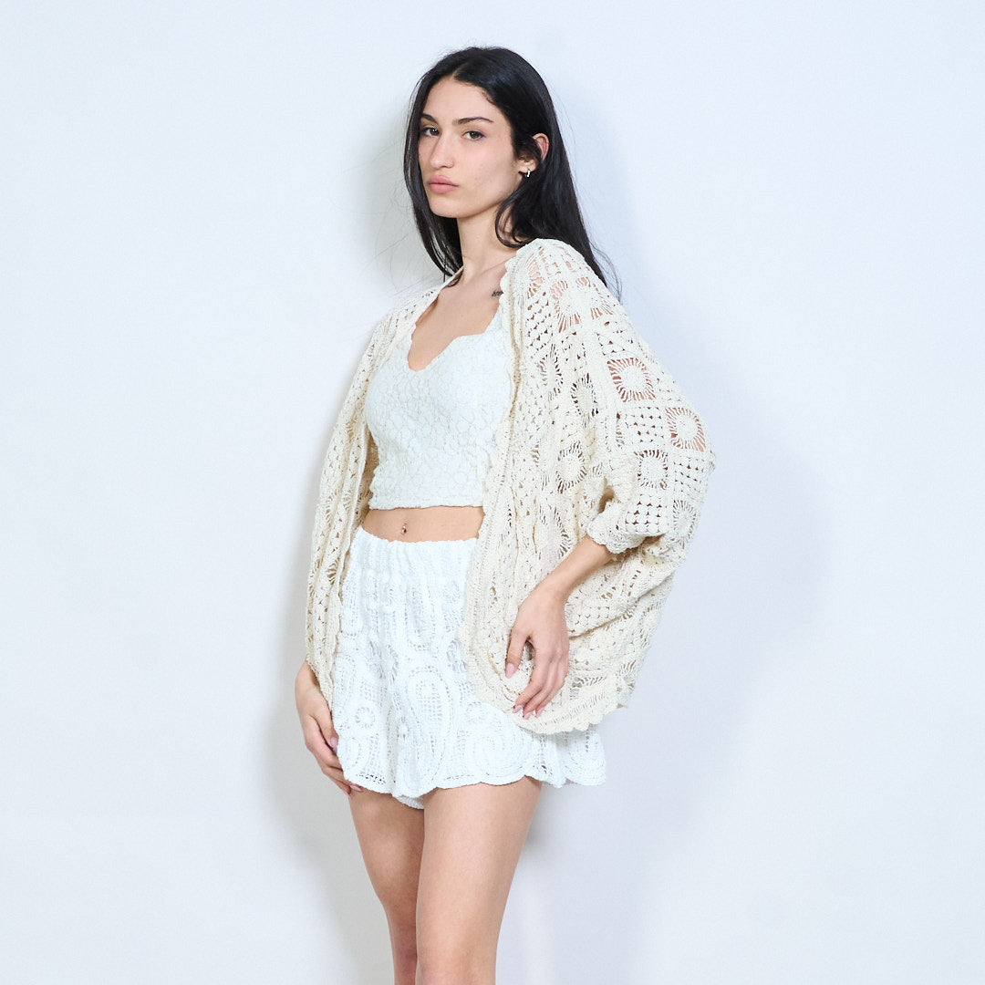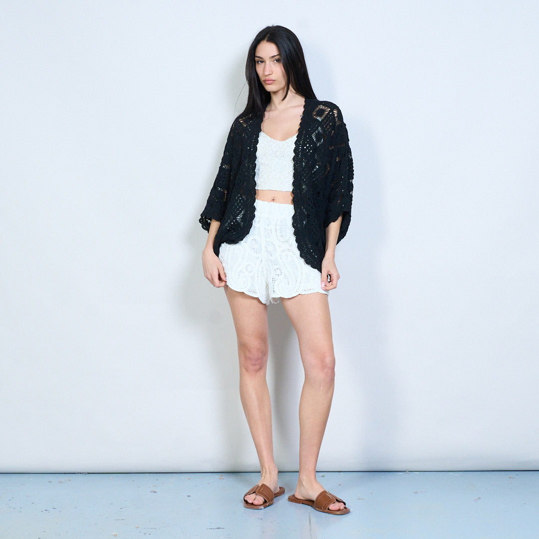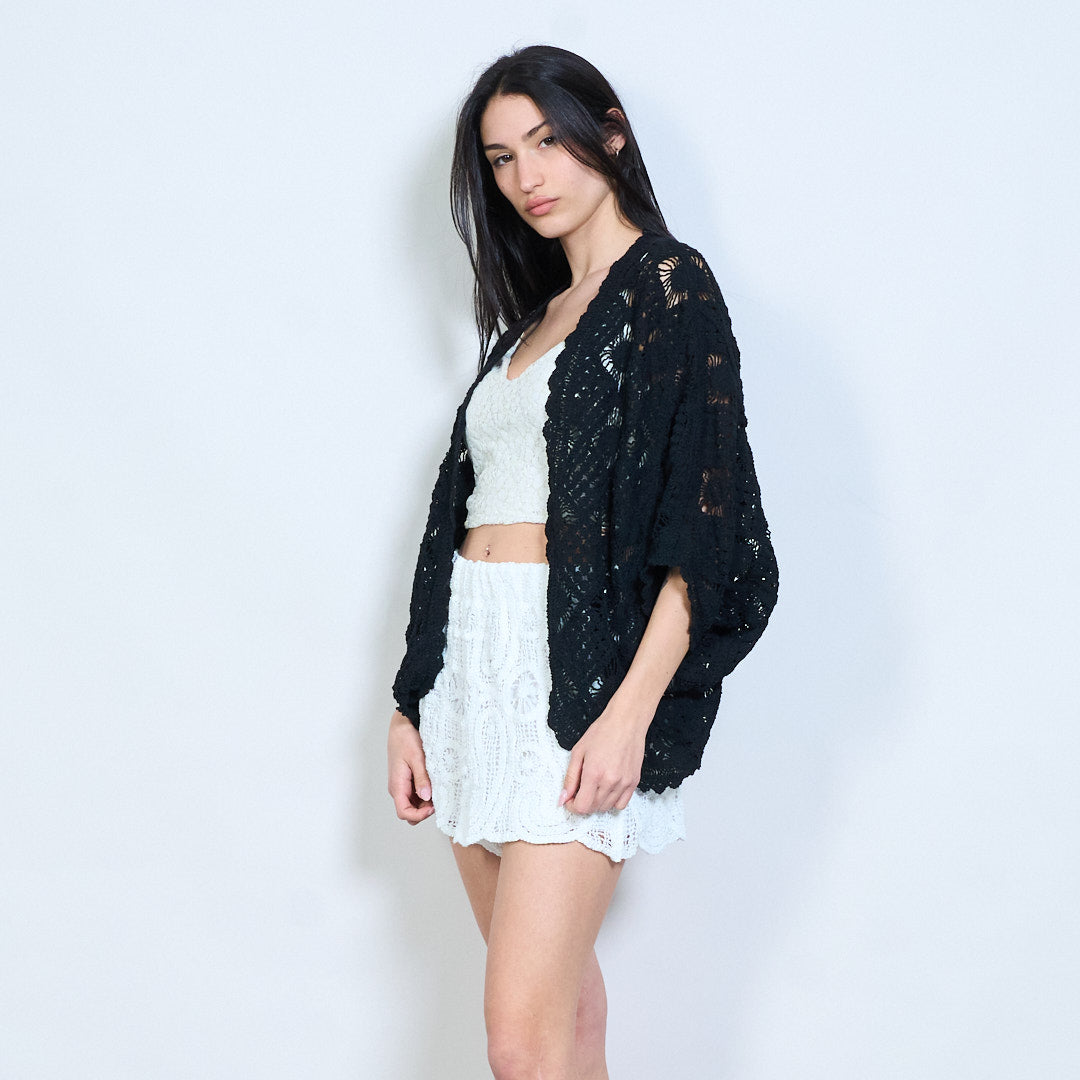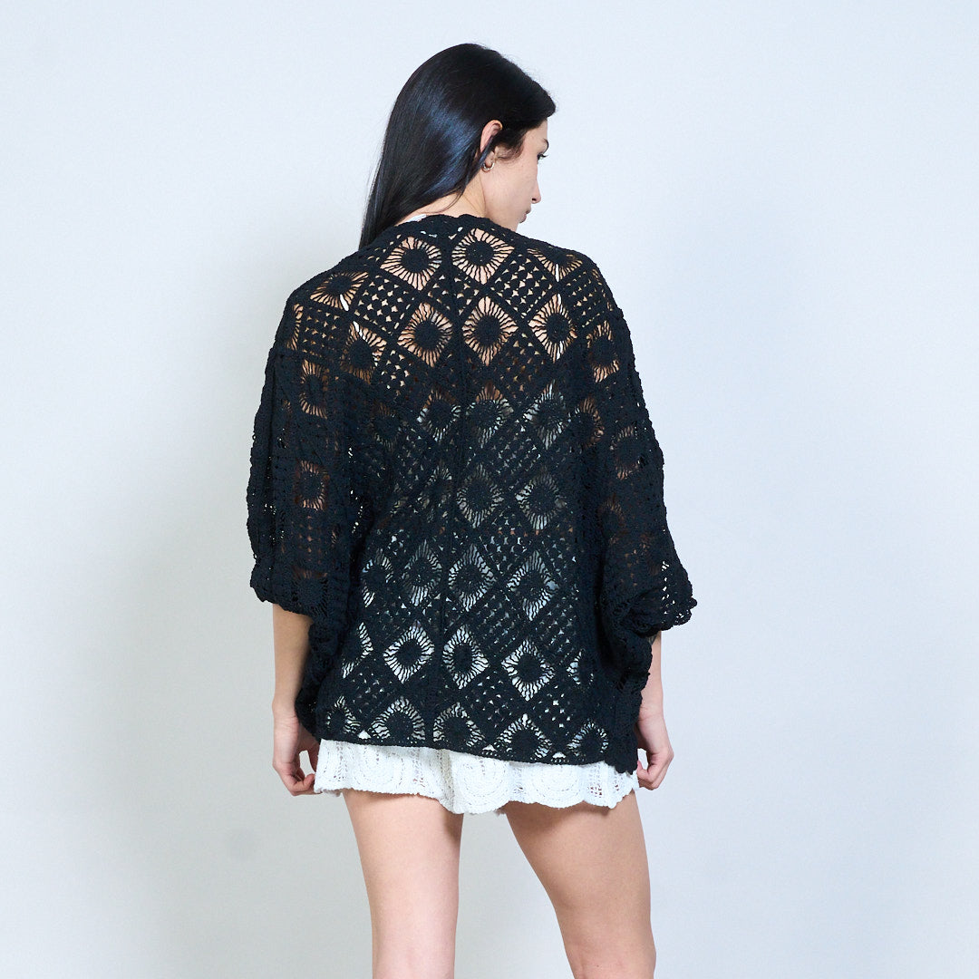 Crochet Floral tosaigh oscailte scaoilte oiriúnach kimono cardigan mórdhíola