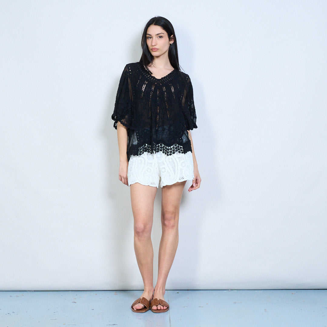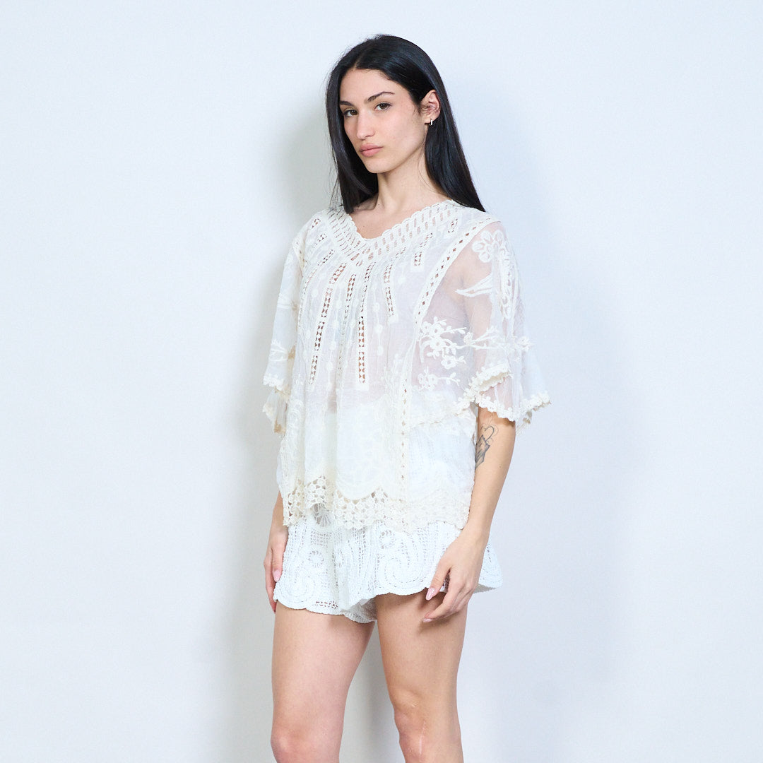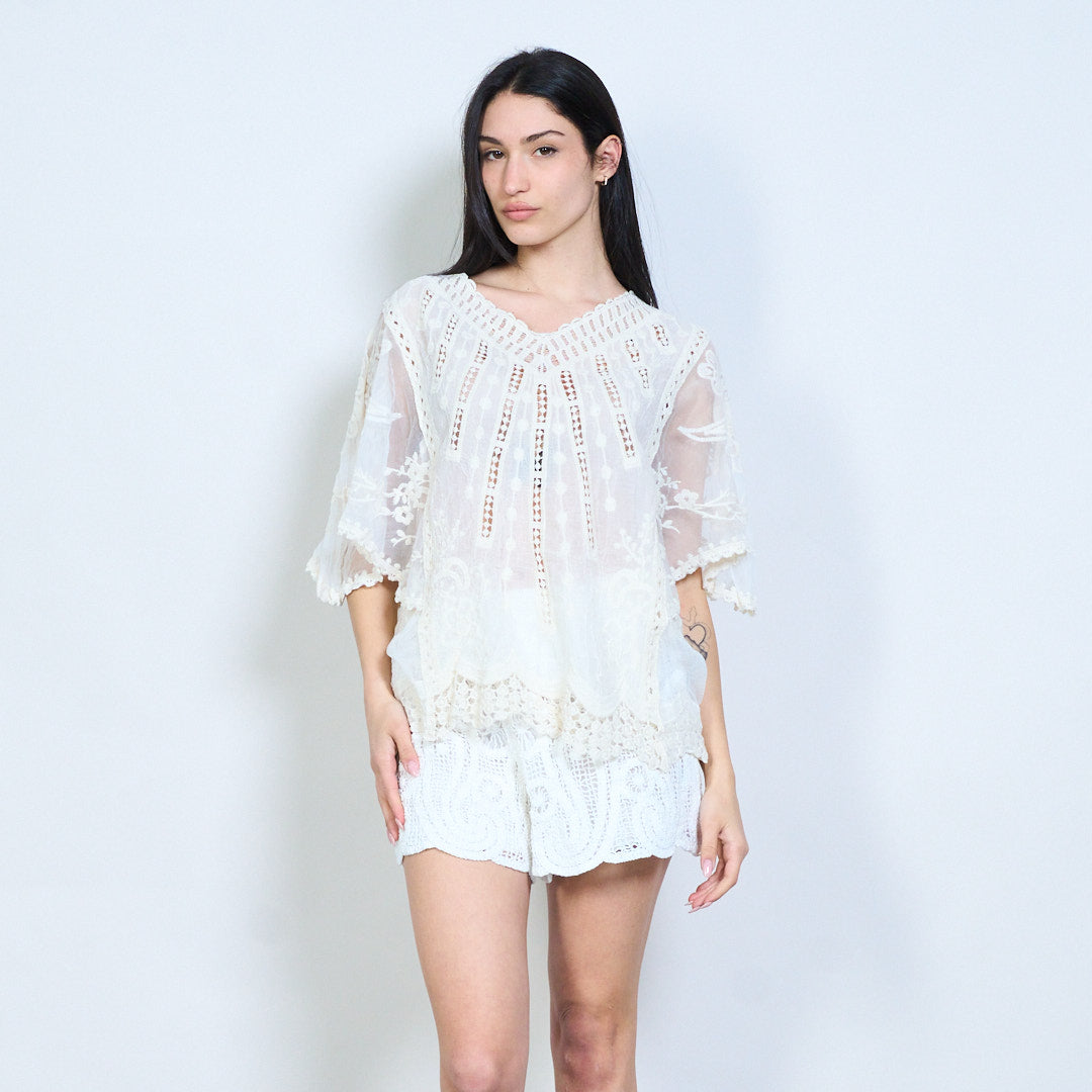 Lása uigeachta bróidnithe scaoilte oiriúnach blús gearr sleeve mórdhíola