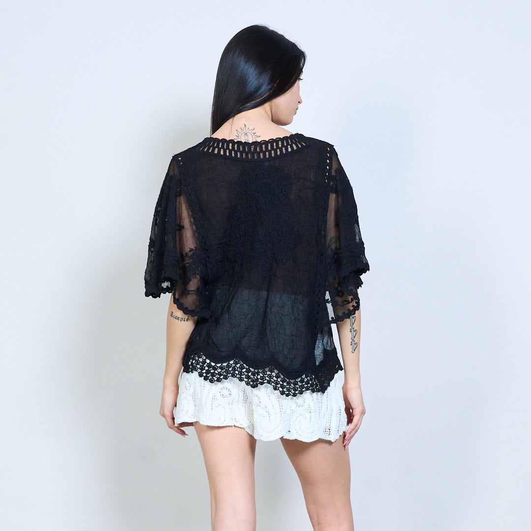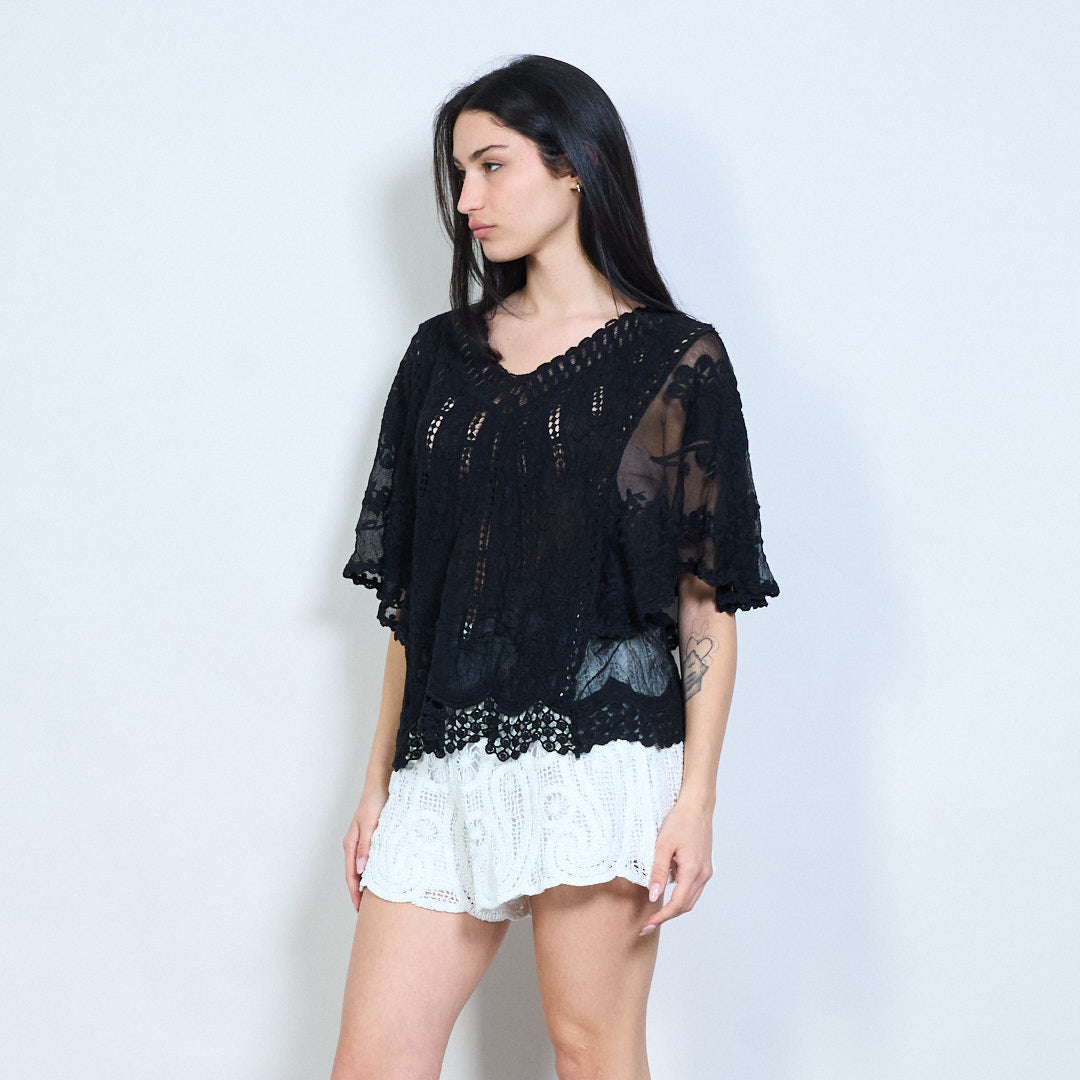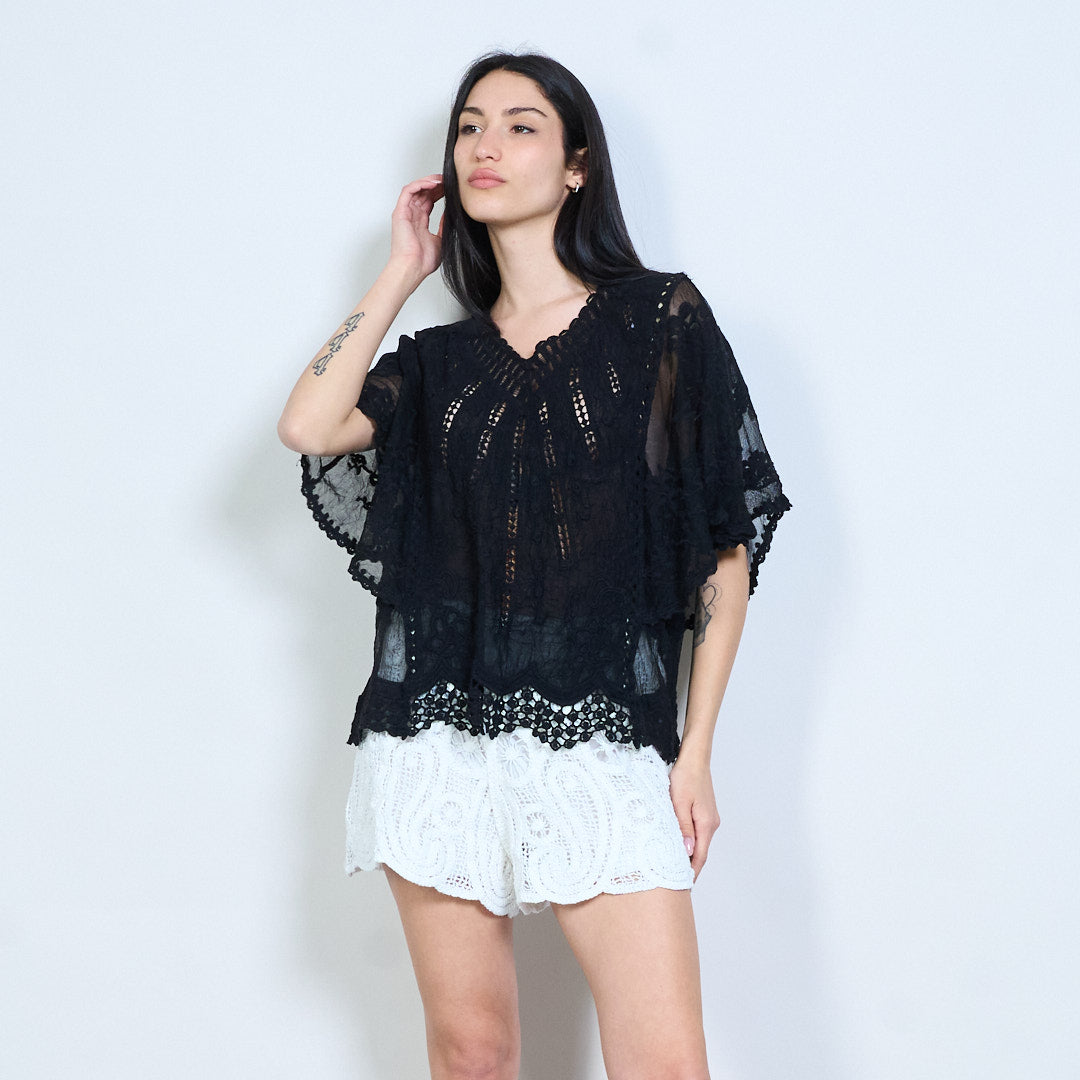Lása uigeachta bróidnithe scaoilte oiriúnach blús gearr sleeve mórdhíola