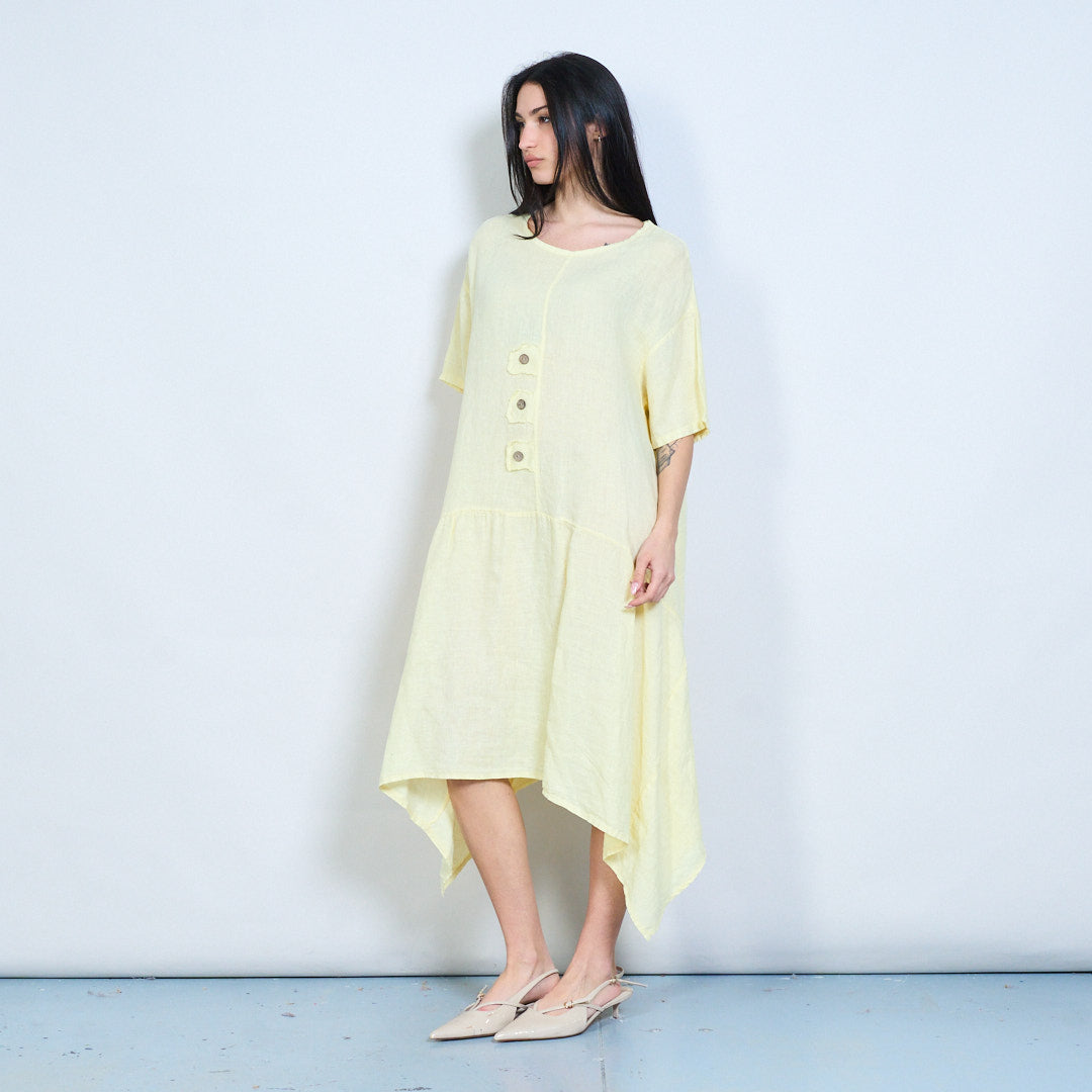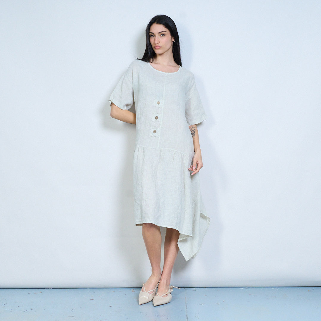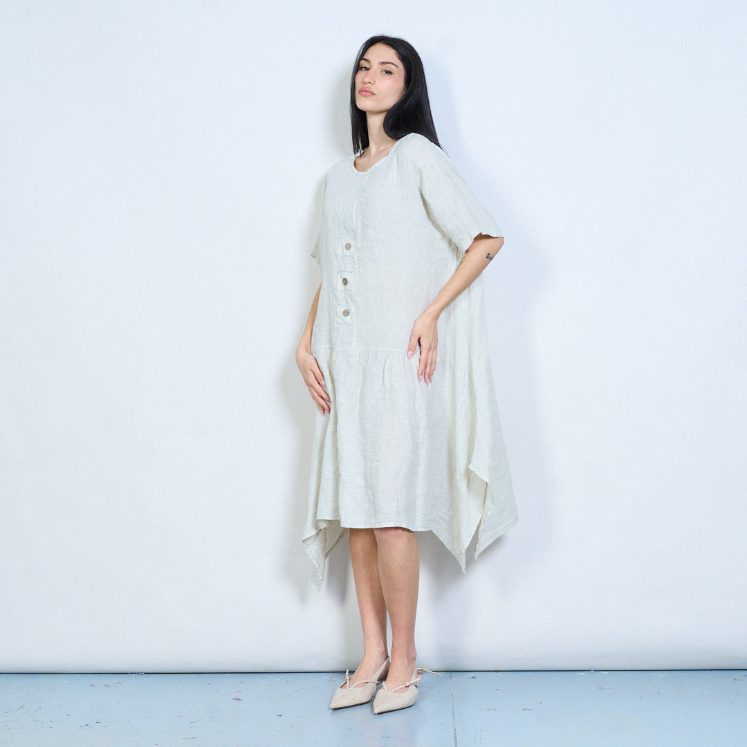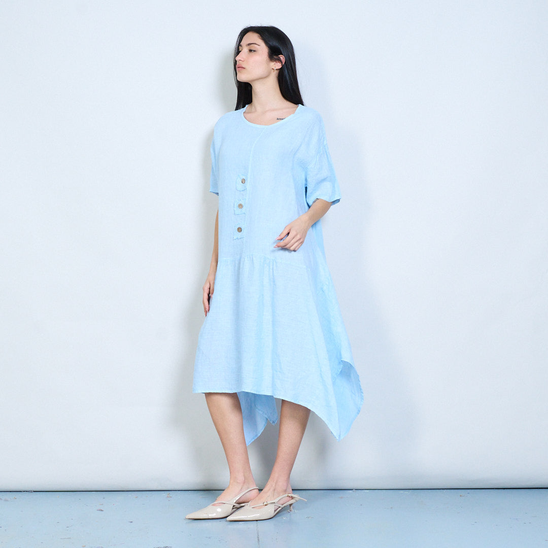 Mionsonraí cnaipe íosta scaoilte oiriúnach gúna midi gearr sleeve mórdhíola