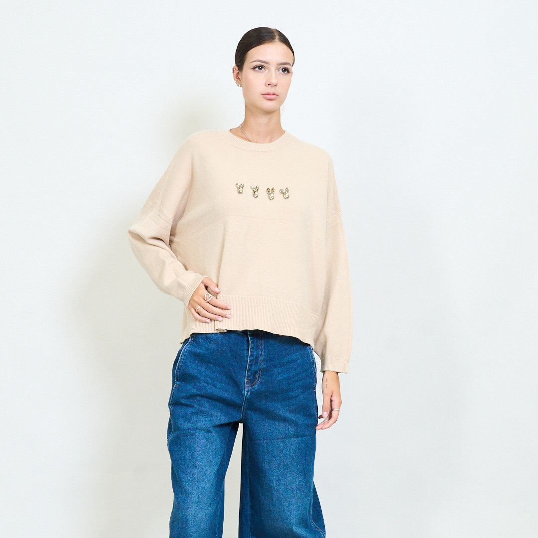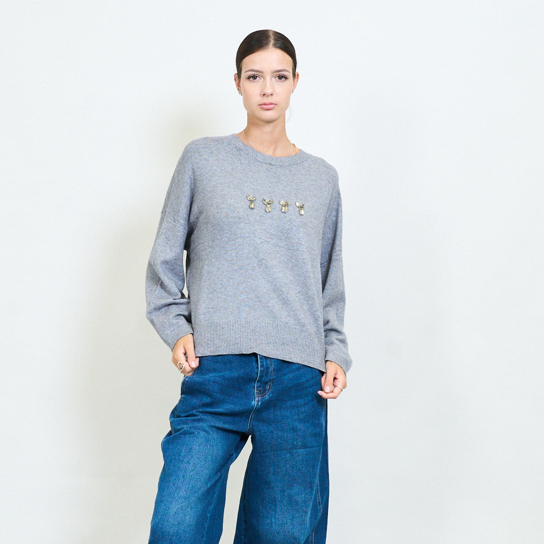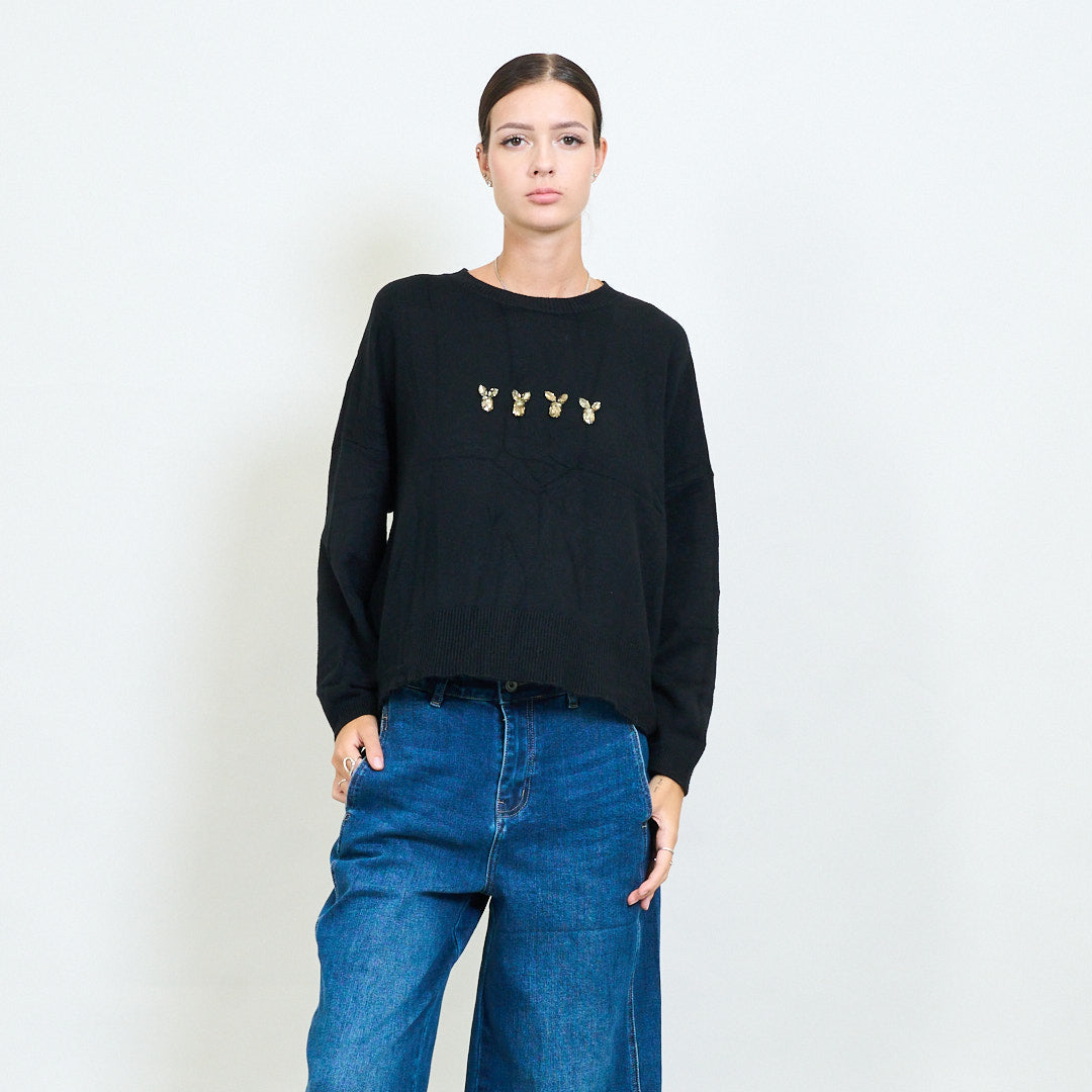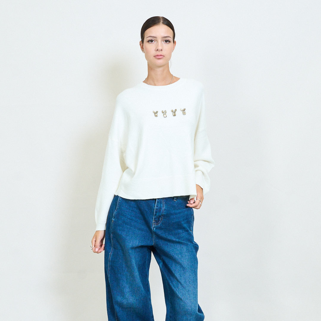 Sonraí Bunny Embellished Geansaí Cniotáilte Móire Mórdhíola