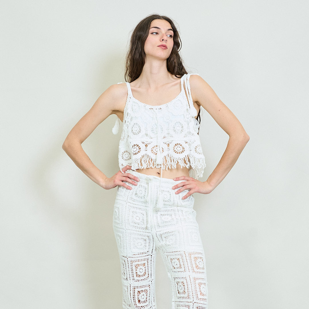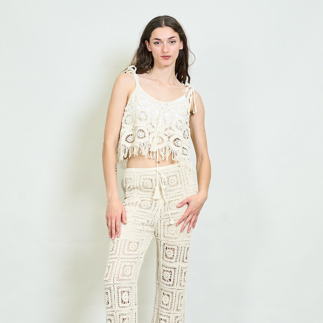 Cróise Cróise Floral Lámhcheardaithe Tie-Strap Fringe Hem Barr Barr Mórdhíola Mórdhíola