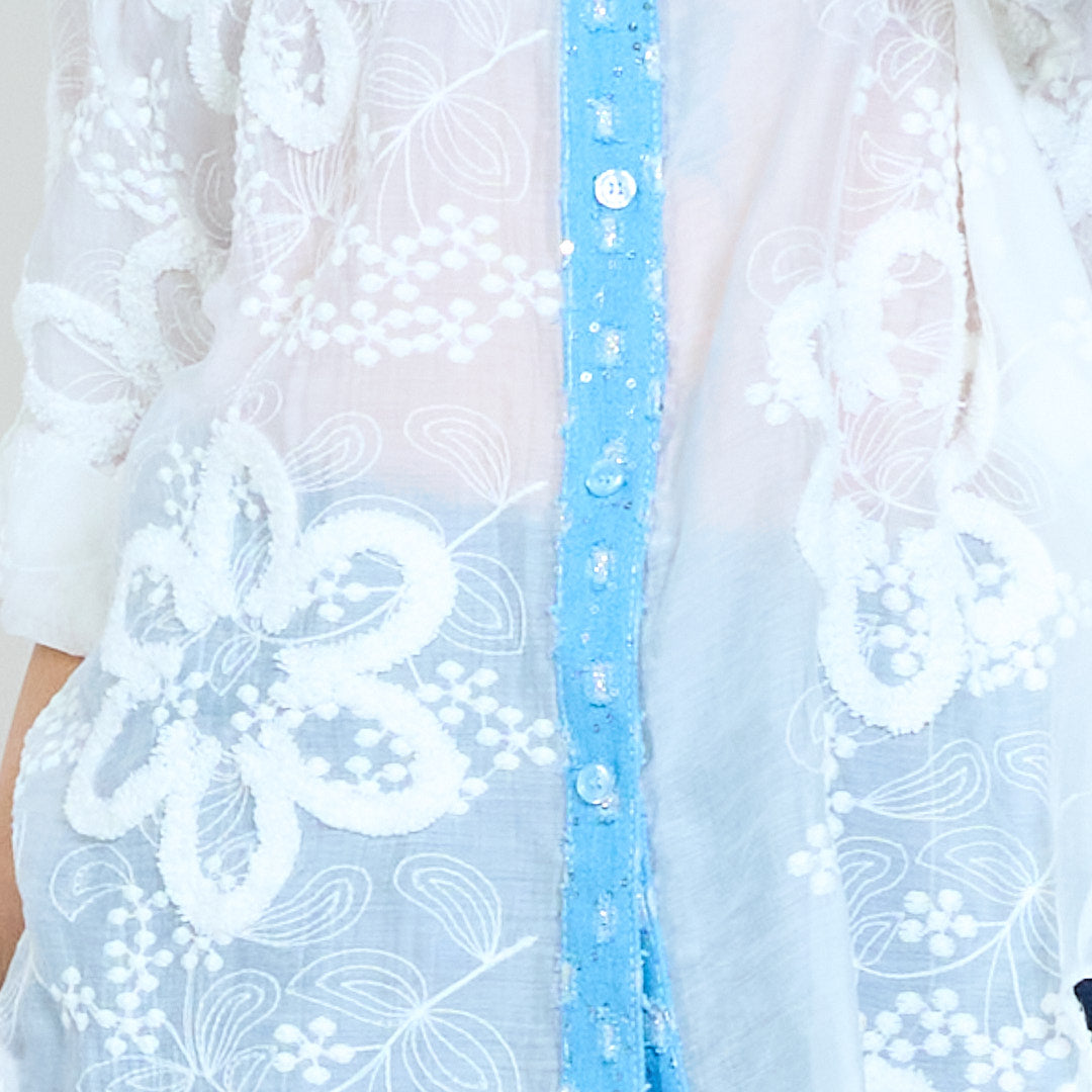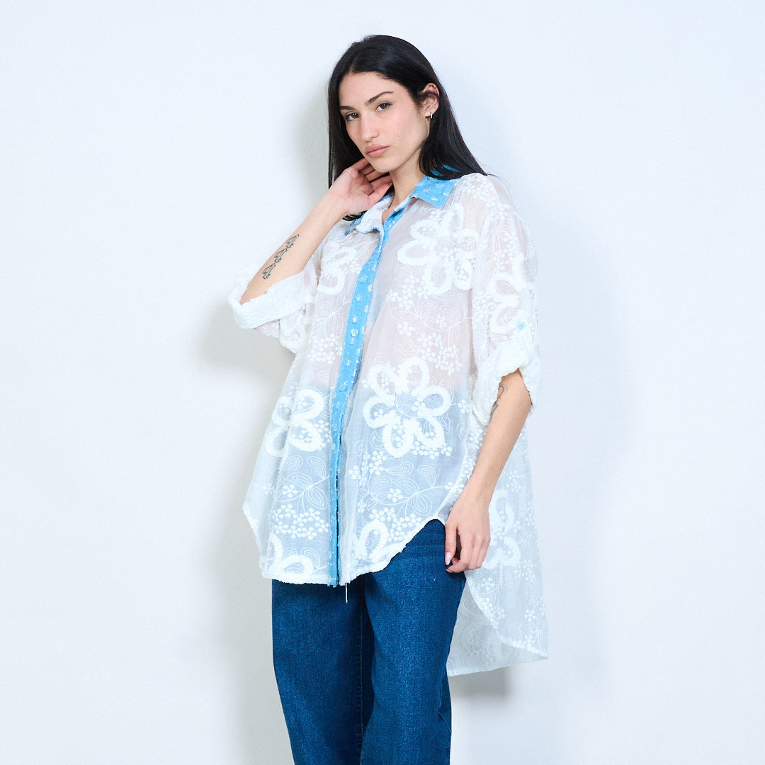 Blús mórdhíola codarsnachta codarsnachta bróidnithe bláthanna uigeacha blús suaimhneach tosaigh