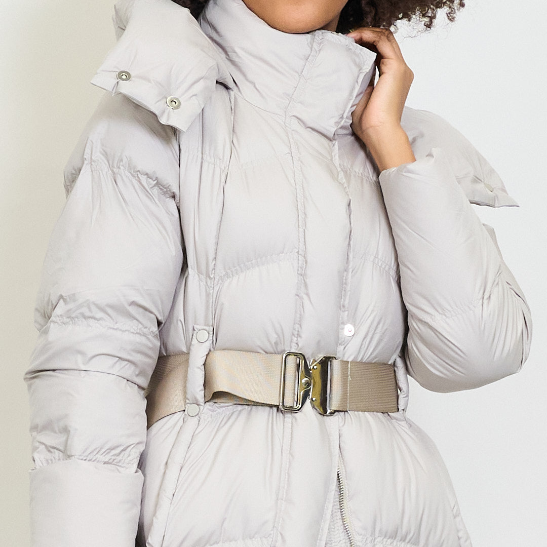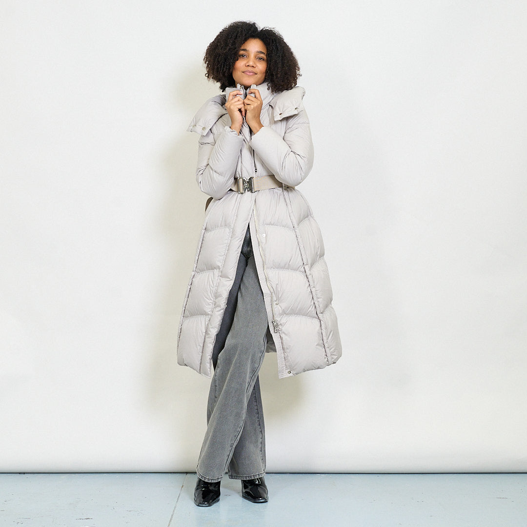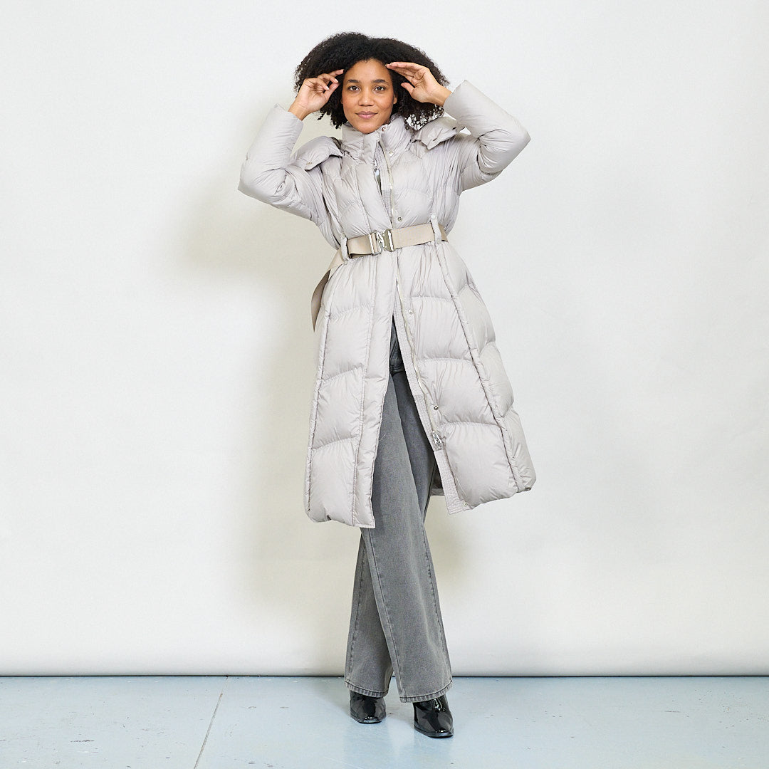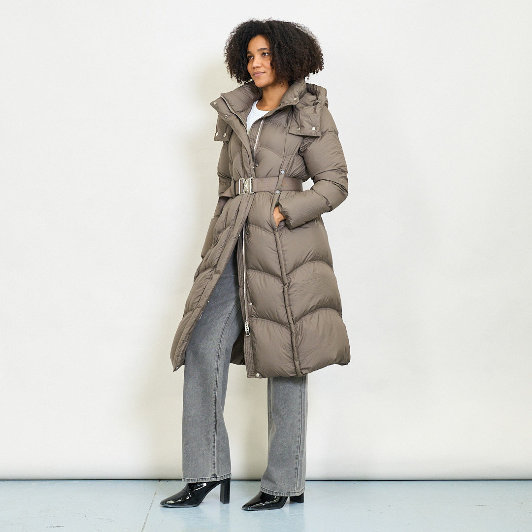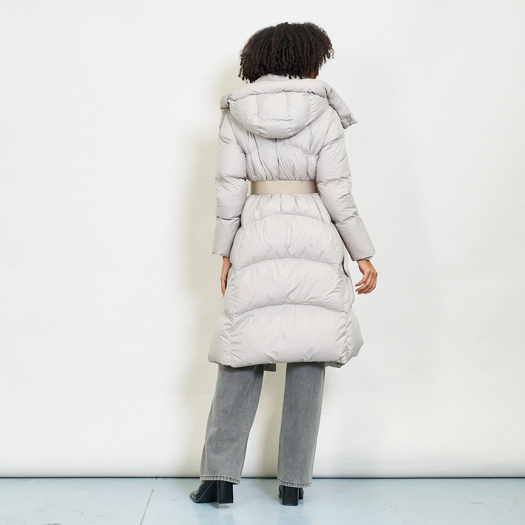 - Cóta Puffer Fada le Dearadh a spreag an fóntais