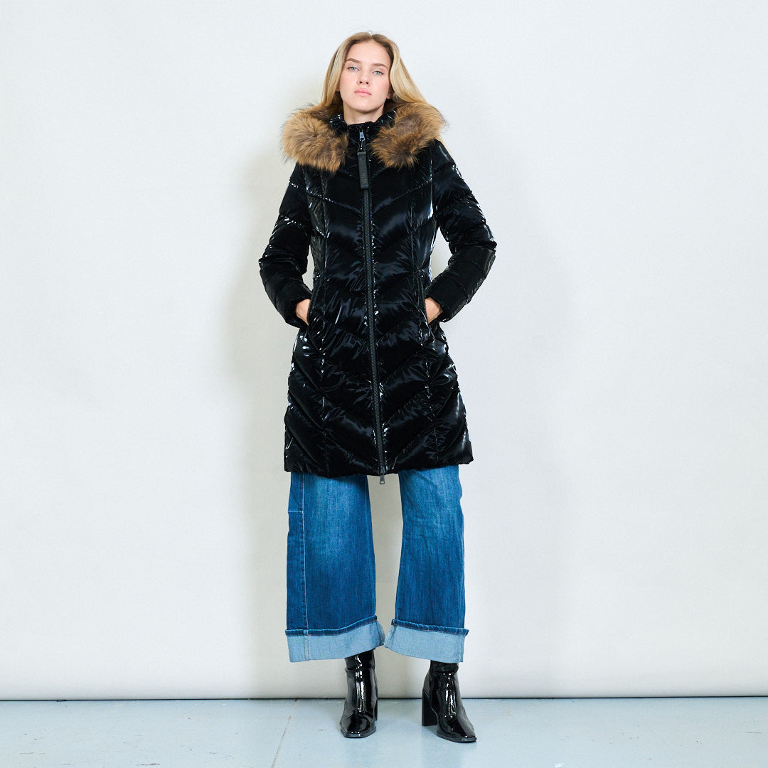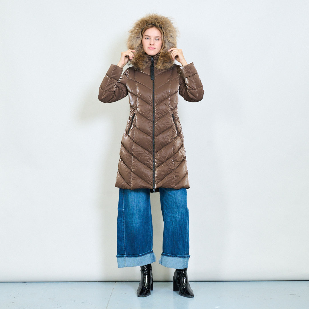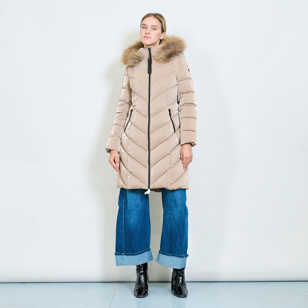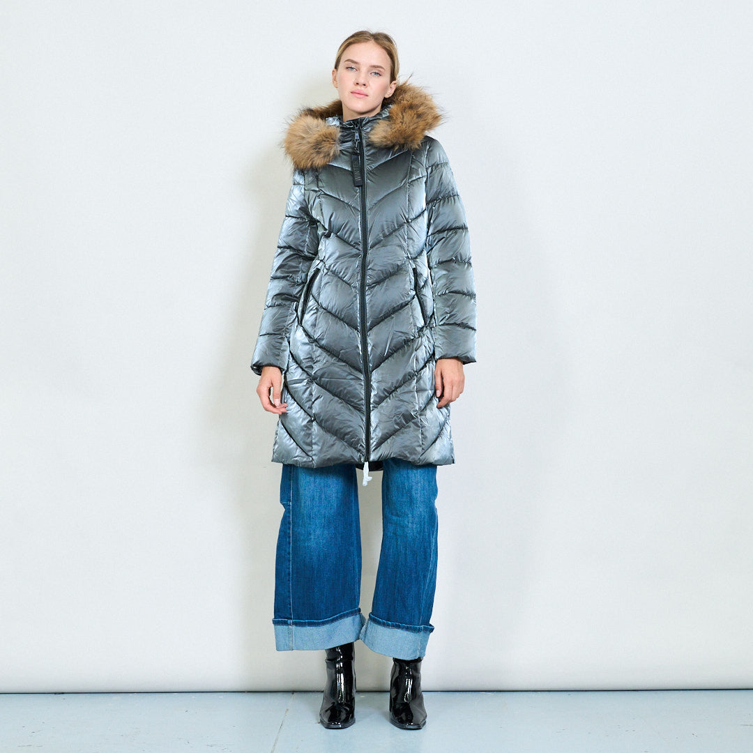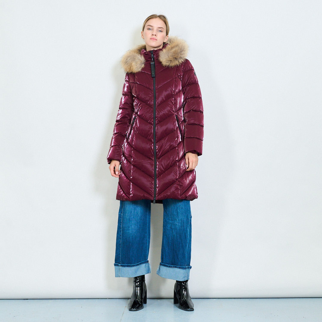 Cóta cuilteáilte lár-fhad le Baile Átha Troim Hood Fur Faux agus codarsnacht Zip Wholesale
